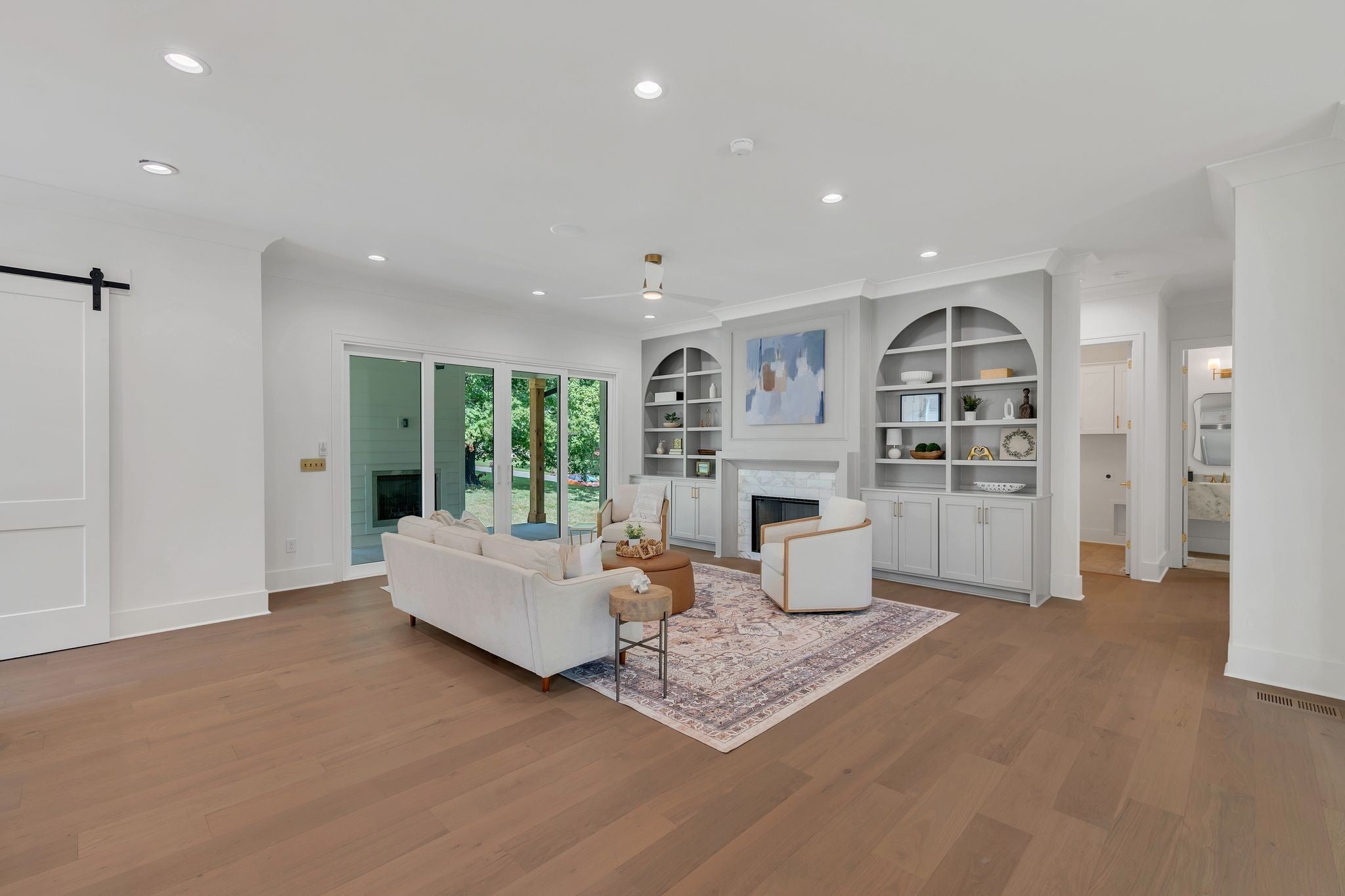 Welcome to 5441 Wakefield Drive — A Nashville new construction in the sought-after Crieve Hall neighborhood. This thoughtfully designed residence blends modern luxury with everyday functionality, featuring an open-concept floor plan, tall ceilings, and designer finishes throughout. The heart of the home is the gourmet kitchen, outfitted with quartz countertops, premium appliances, a dedicated ice maker, and two dishwashers for added convenience. Enjoy cozy evenings by the indoor gas fireplace or entertain guests on the covered patio, complete with a second outdoor fireplace. An irrigation system keeps the professionally landscaped yard green and low-maintenance. The spacious primary suite includes a spa-inspired bathroom and walk-in closet. Additional highlights include hardwood floors, energy-efficient systems, and a second laundry room upstairs, Ceiling speakers in the bonus room wired for 5.1 audio, as well as ceiling speakers in all living areas including patio, a two-car garage, and generous storage throughout. Ideally located just minutes from Radnor Lake, Brentwood, and downtown, this move-in-ready home offers the best of modern living in a well-established neighborhood with no HOA.