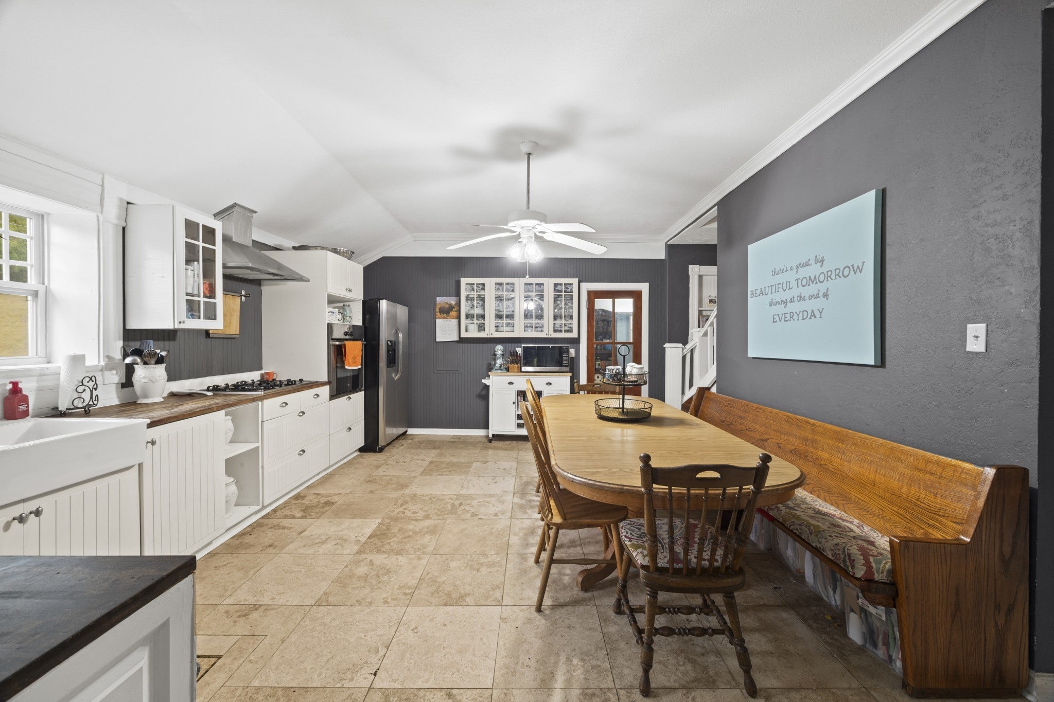 Stunning 4BR/3.5BA creek front home on 3.5 beautiful acres just minutes from downtown Waynesboro! This 3,475 sq ft property combines timeless charm with modern upgrades, offering both comfort and function. Step inside to find multiple living and dining spaces, a dedicated office, and two laundry rooms. Refinished oak hardwoods, cherry flooring upstairs, and travertine tile bring warmth and character throughout. The inviting living room features a cozy fireplace, while the kitchen is a true standout with a farm sink, butcher block counters, stainless appliances, pantry with shelving, and gas cooktop. The spacious primary suite includes custom oak cabinetry, a jetted tub, and a walk-in closet. Storage is abundant with three walk-in closets and a large walk-up attic with stair access. Built with quality in mind, this home features Hardie-plank siding, metal roof, low-E windows, and two HVAC systems for year-round comfort. Whole-house wiring with CAT-5 and RG-6 cabling plus built-in speakers add convenience and entertainment options. Enjoy peaceful mornings on the front porch, entertain on the back deck overlooking the property, or take in the natural beauty of the small pond. A barn and additional outbuildings offer space for hobbies, equipment, or livestock. Located in a quiet setting with a true country feel, yet high speed internet availability and only minutes to shopping, dining, and community events in Waynesboro. Zoned for Waynesboro schools and close to parks, creeks, and outdoor recreation. Whether you enjoy gardening, small-scale farming, or simply relaxing in nature, this property provides the space and freedom you’ve been looking for. Don’t miss this rare opportunity to own a spacious home with acreage in Wayne County — combining modern comforts, thoughtful upgrades, and the lifestyle of Tennessee country living!
