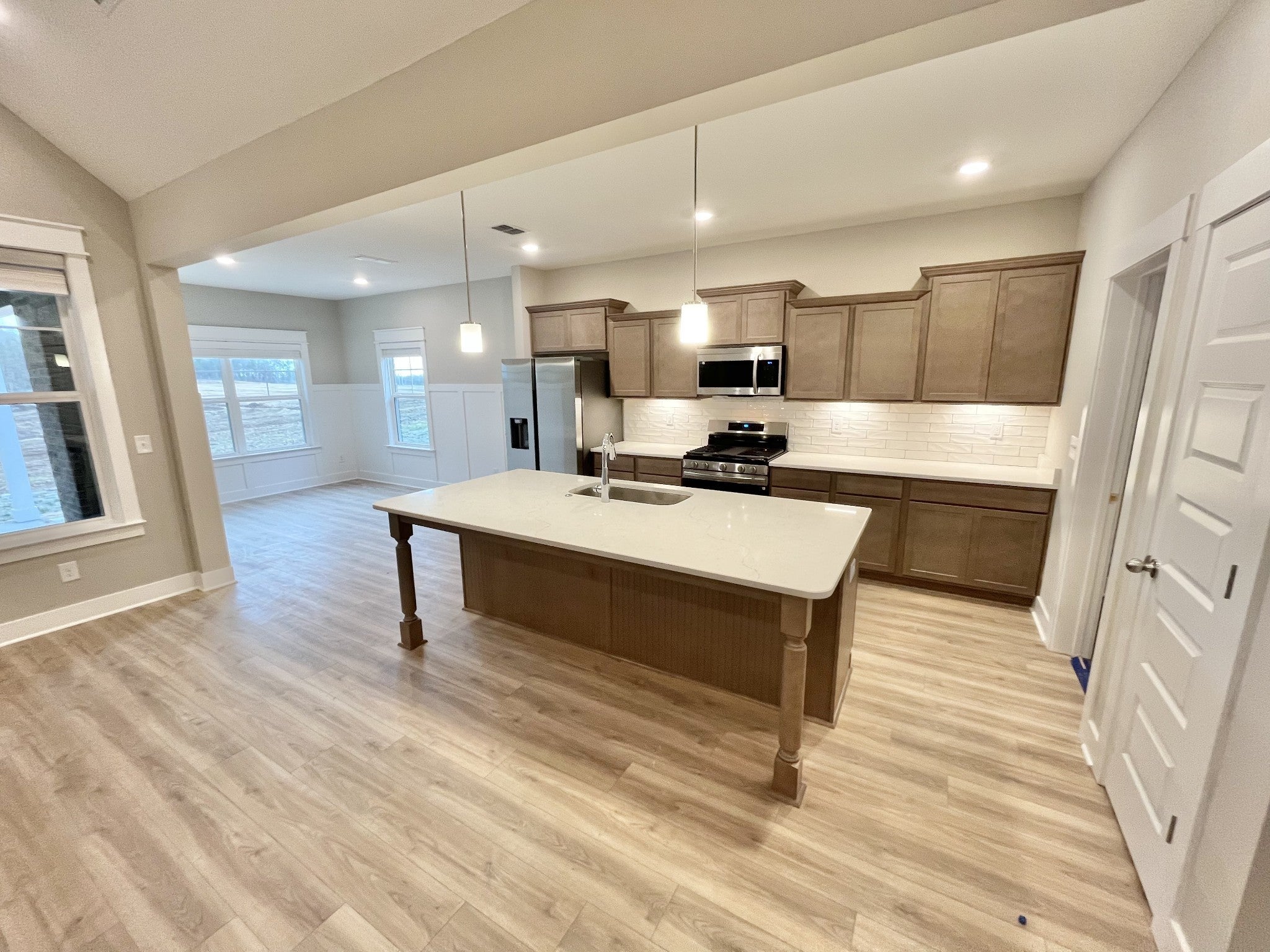 Plan ( 2151 Elevation GHI) SOLD all stock photos. Large corner premium lot Side entry garage! Premium front elevation in Full brick with stone accents. , Wonderful covered back porch with fireplace. Three bedrooms down, nice bonus room with door and closet. 3 full bathrooms! Our most requested floorplan year after year. Great room and covered back porch cathedral ceilings. Large island in quartz, Upgraded features of smooth ceilings, trey ceilings, insulated/painted garages, and full kitchen appliance package in stainless with gas cooktop. One level living with upstairs bonus/bath. 2151 plan. You can buy your new market home today with a $99 deposit and pay only $99 total for total closing costs! Ask about rate buy down .