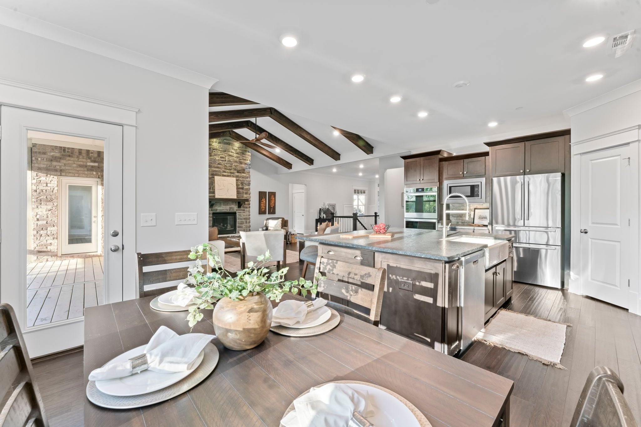 - Built-In Gas Oven, Double Oven, Cooktop, Dishwasher, Disposal, Dryer, Microwave, Refrigerator, Stainless Steel Appliance(s), Washer