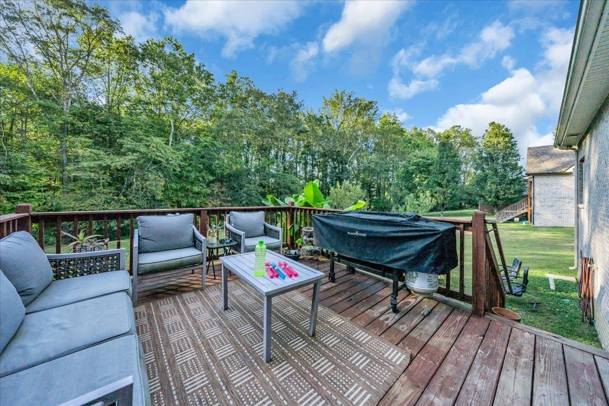 Welcome to this Stunning All-Brick 4 Br/3 Bath home with over 2600 Sq Ft of thoughtfully designed living space. Situated on a large tree-lined lot for Privacy, especially in the backyard. Welcoming you inside is an Open Floor Plan with large Living Room featuring high ceiling and beautiful wood floors. The Heart of the Home is the Kitchen and boasts an oversize Kitchen Island and space for a Gathering Table. 2 Bedrooms and 2 Full Baths are Downstairs. One of those is the spacious Owner's Suite with Walk-In Closet, Bath with Double Vanity, Tub, & Tile Shower. Upstairs are 2 Bedrooms and 1 Full Bath. A Versatile Bonus Room offers many options. Step out onto the Big Back Deck to enjoy a peaceful evening or a great space for entertaining. The deck overlooks a BIG backyard with space for gardening, entertaining, play area or great space for the family pets. Take a Look TODAY and you'll fall in Love!