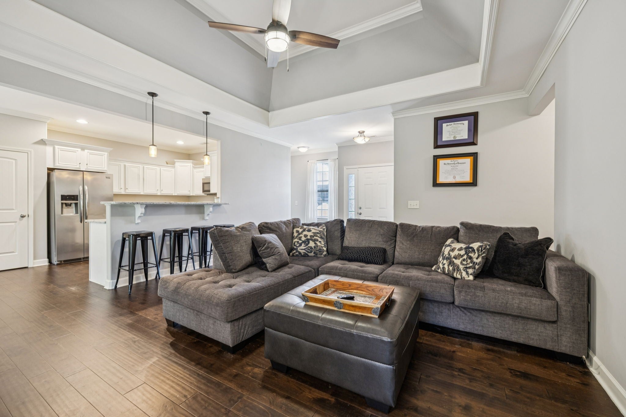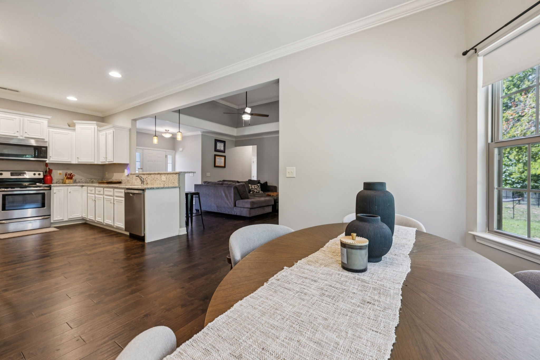 Welcome to 138 Timberland Dr, Columbia, TN! This charming 3-bedroom, 2-bath home offers 2,167 sq. ft. of comfortable living space with a thoughtful layout designed for convenience and entertaining. All bedrooms are located on the main level, while a spacious upstairs bonus room provides the perfect flex space for a home office, media room, or playroom. The open concept floorplan features a cozy fireplace in the living room and a kitchen that truly shines with stainless steel appliances, granite countertops, a peninsula with seating for four, and an extended dining area ideal for gatherings. All appliances remain—including stove, microwave, dishwasher, refrigerator, washer, and dryer—making this home move-in ready. Step outside to enjoy a covered back porch and extended patio overlooking a tree-lined backyard, offering both privacy and the soothing sounds of nature. Sitting on a generous .37-acre lot with an attached 2-car garage, this home blends modern convenience with outdoor enjoyment. Don’t miss the opportunity to make this Columbia gem your own!