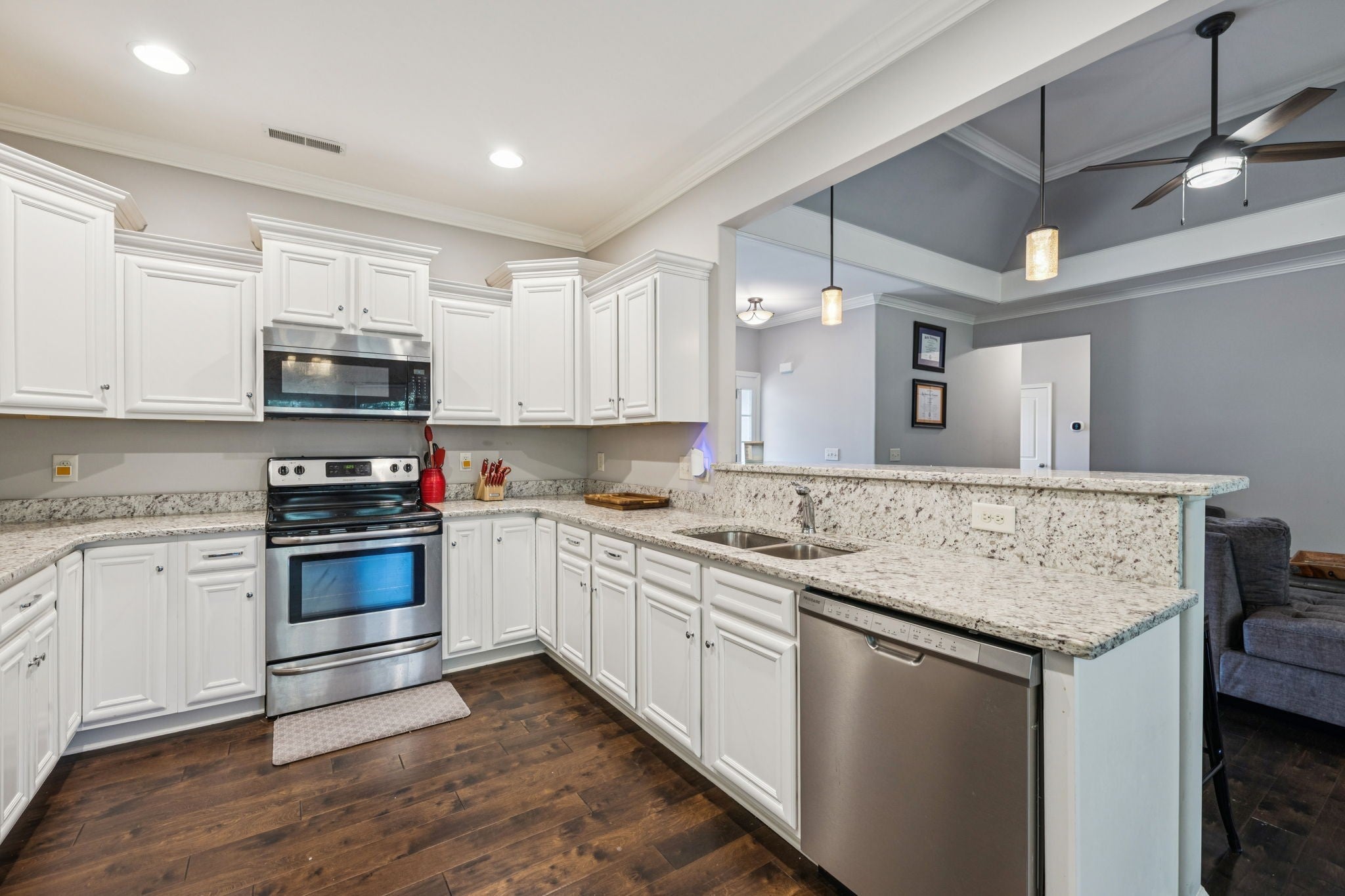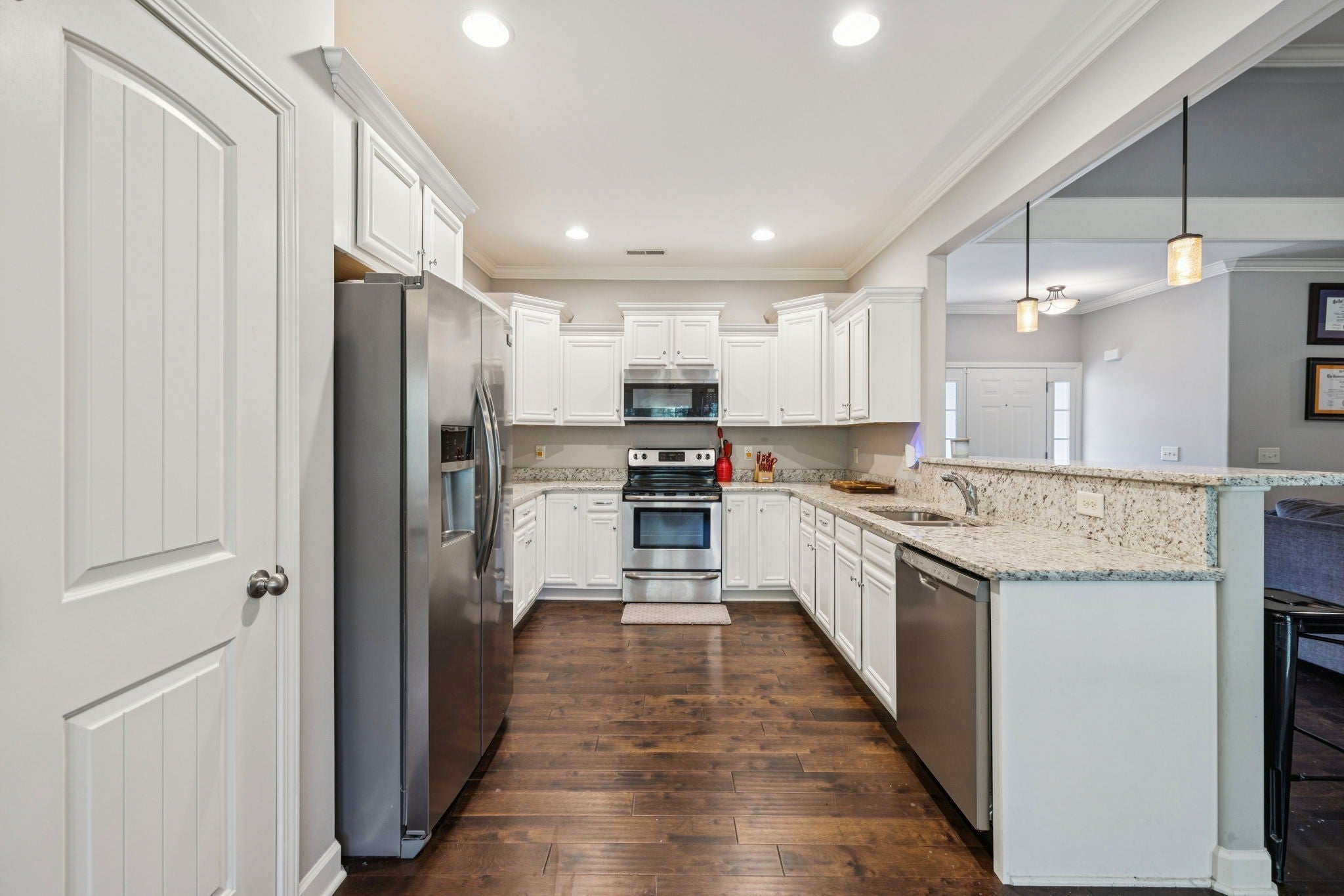 - Oven, Range, Dishwasher, Dryer, Microwave, Refrigerator, Stainless Steel Appliance(s), Washer