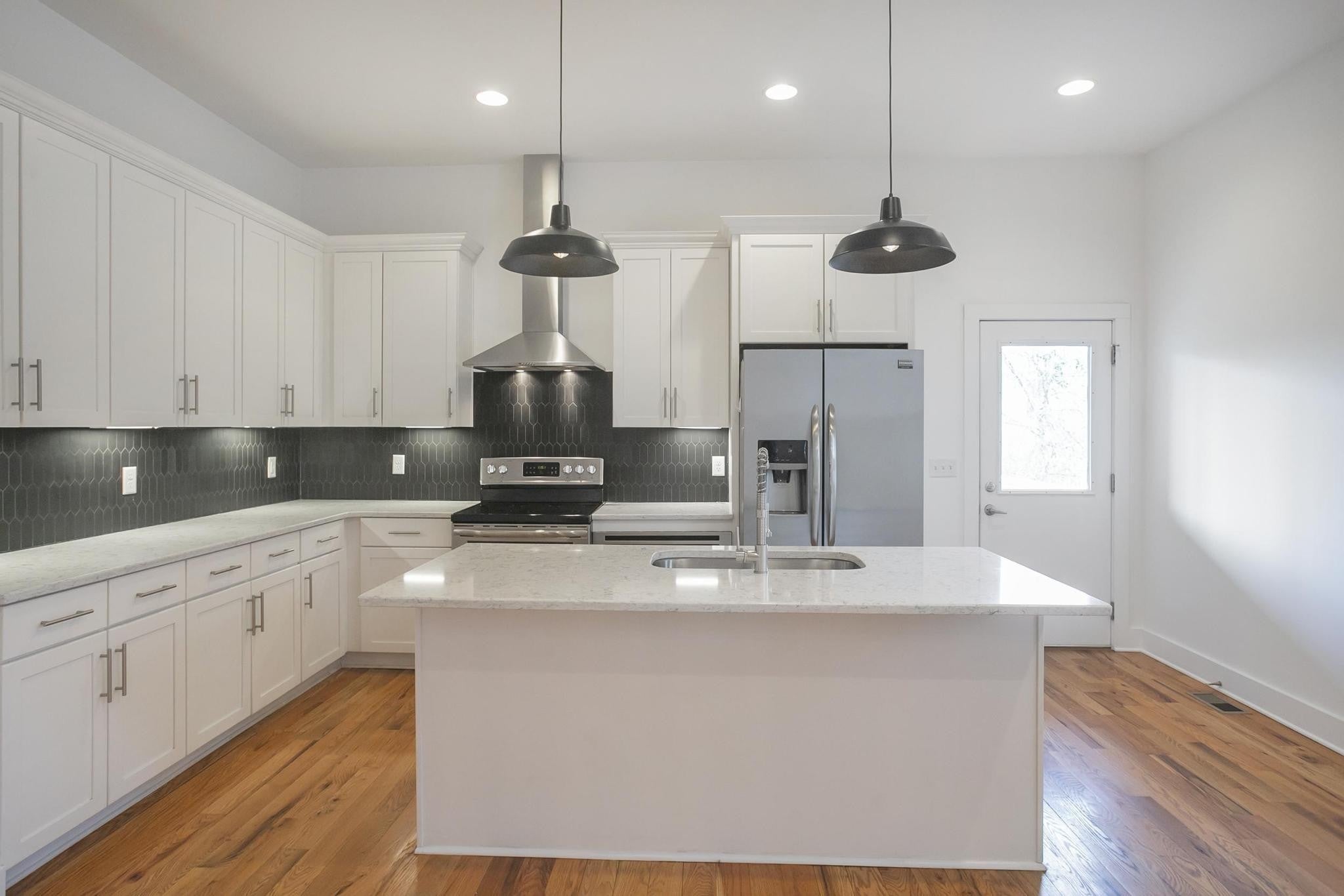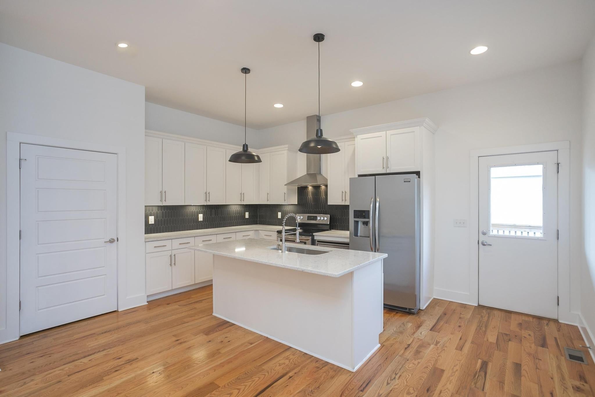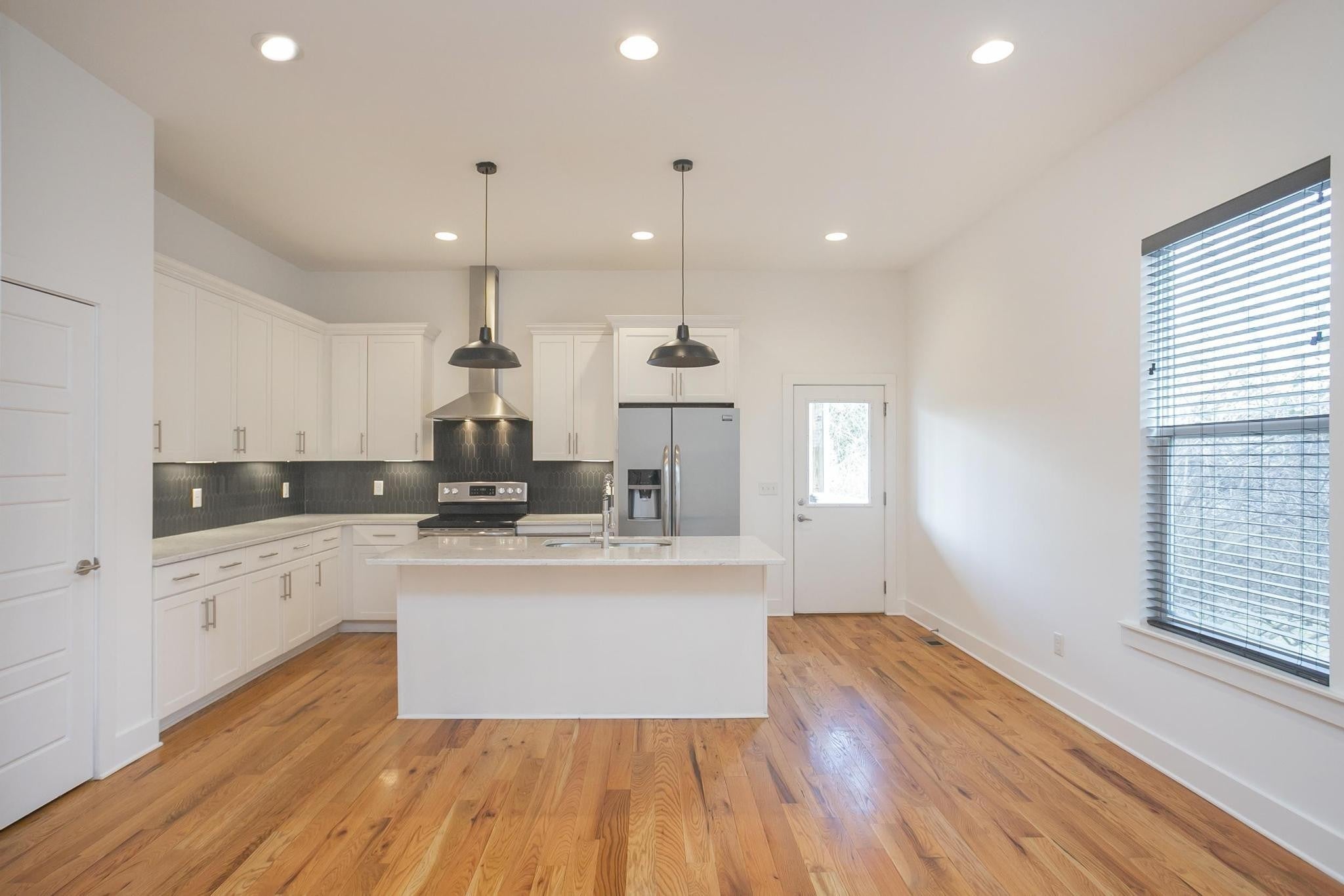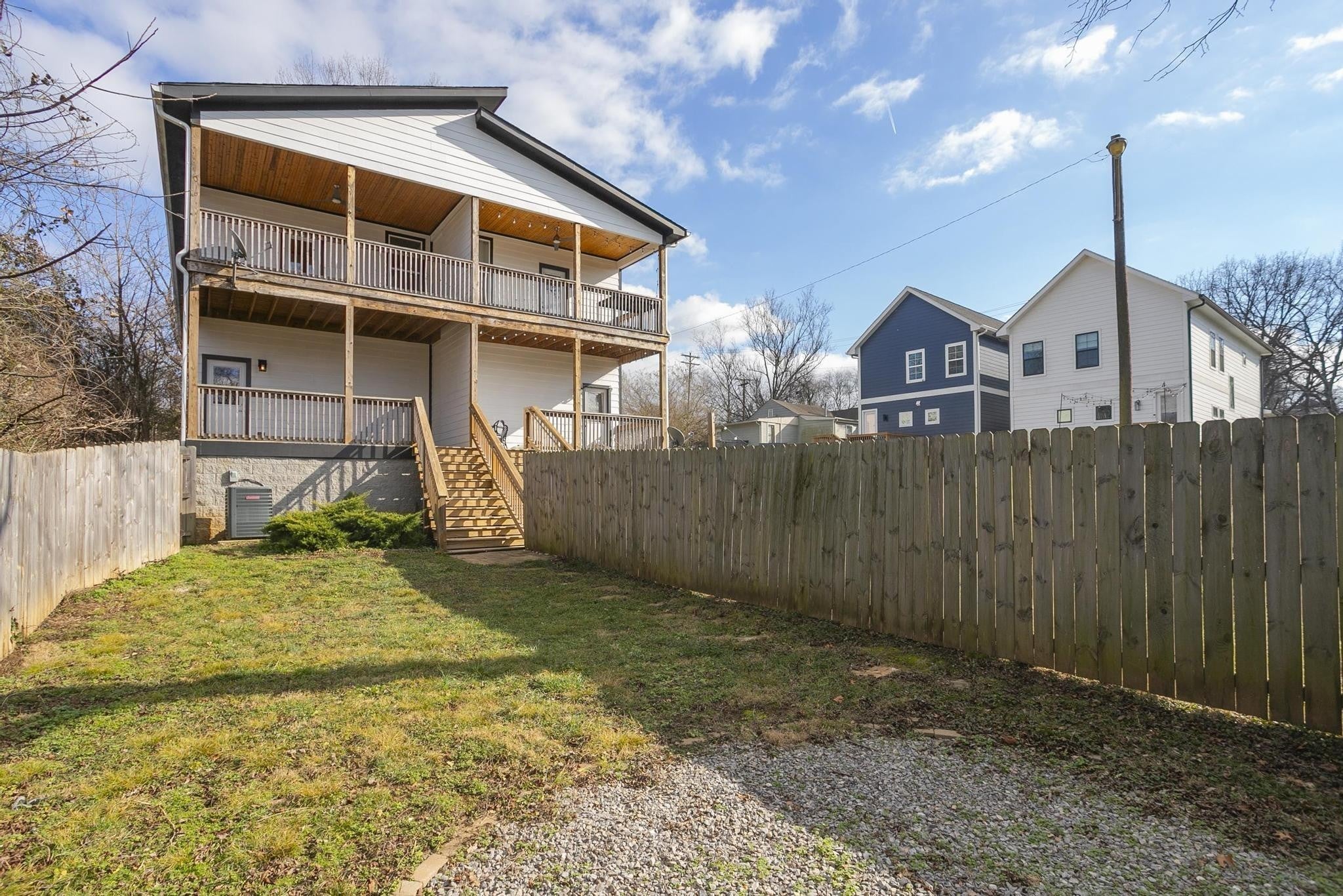 Step inside this move-in ready, sleek and modern 2017 build in the heart of East Nashville! This 3 bedroom, 2.5 bath home features and open living room/ dining/ kitchen layout with beautiful hardwood floors, nice contemporary finishes throughout and tons of natural light. Kitchen has quartz countertops, stainless appliances, and kitchen island that provides additional seating. Huge primary suite has vaulted ceilings, walk-in closet, bathroom with double vanities and oversized shower and separate private covered deck! Additional bedrooms also have walk-in closets. Separate laundry room and washer/ dryer remain! One car garage + parking pad provides plenty of parking for you and guests. Nice covered back deck is perfect for entertaining and overlooks a privacy fenced-in back yard. Don't miss this great price! VA loan is assumable by another veteran-- take advantage of this 3.375% interest rate!