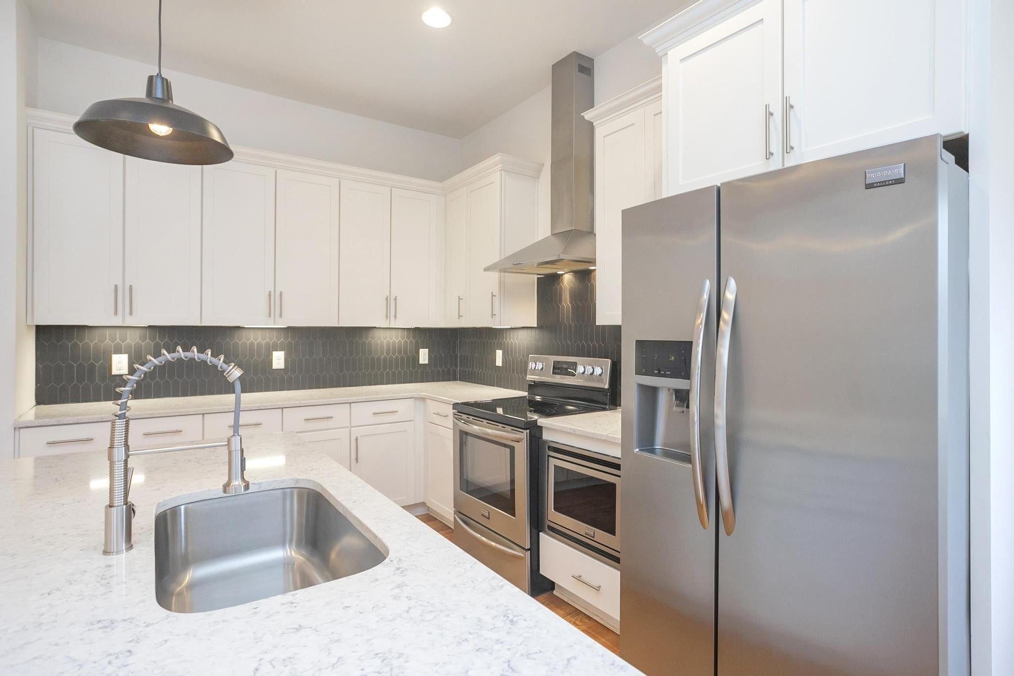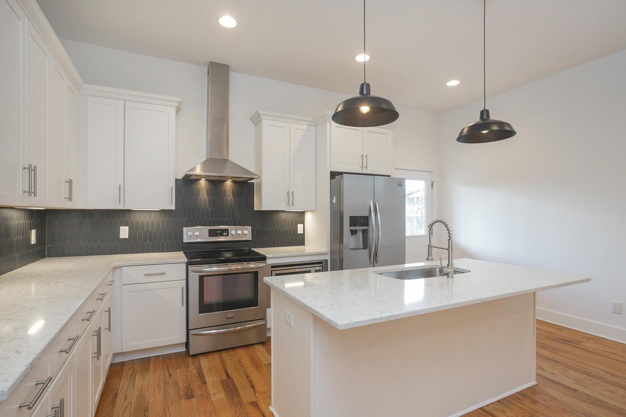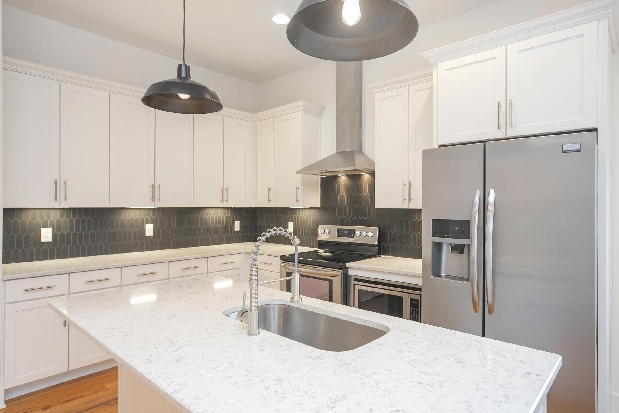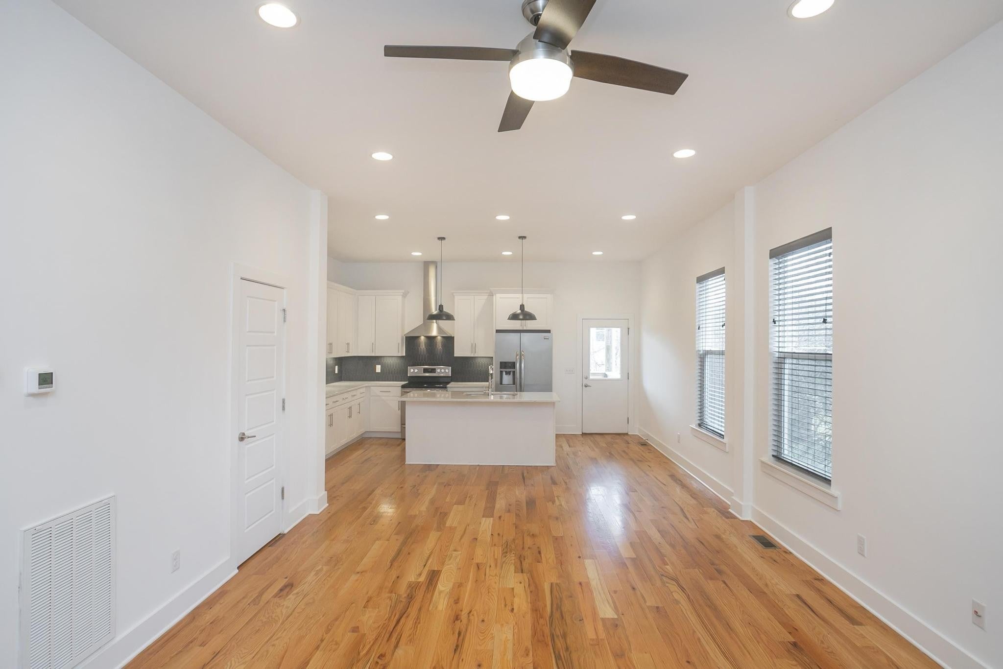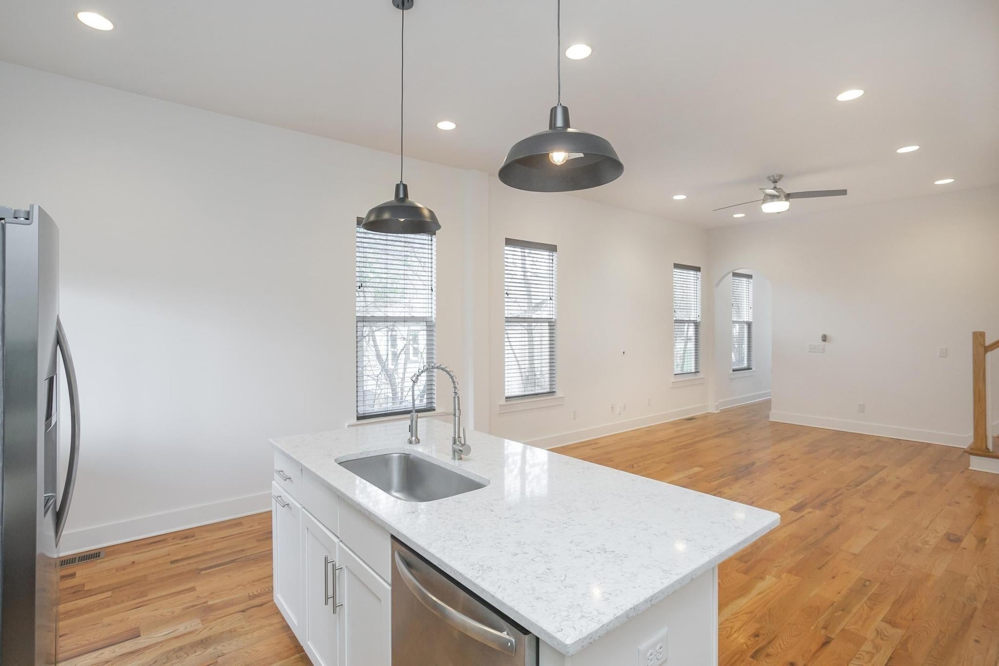 Step inside this move-in ready, sleek and modern 2017 build in the heart of East Nashville! This 3 bedroom, 2.5 bath home features and open living room/ dining/ kitchen layout with beautiful hardwood floors, nice contemporary finishes throughout and tons of natural light. Kitchen has quartz countertops, stainless appliances, and kitchen island that provides additional seating. Huge primary suite has vaulted ceilings, walk-in closet, bathroom with double vanities and oversized shower and separate private covered deck! Additional bedrooms also have walk-in closets. Separate laundry room and washer/ dryer remain! One car garage + parking pad provides plenty of parking for you and guests. Nice covered back deck is perfect for entertaining and overlooks a privacy fenced-in back yard. Don't miss this great price! VA loan is assumable by another veteran-- take advantage of this 3.375% interest rate!