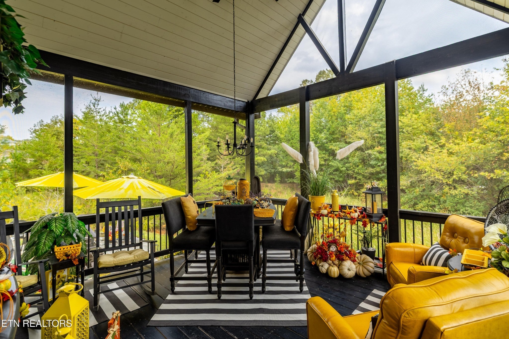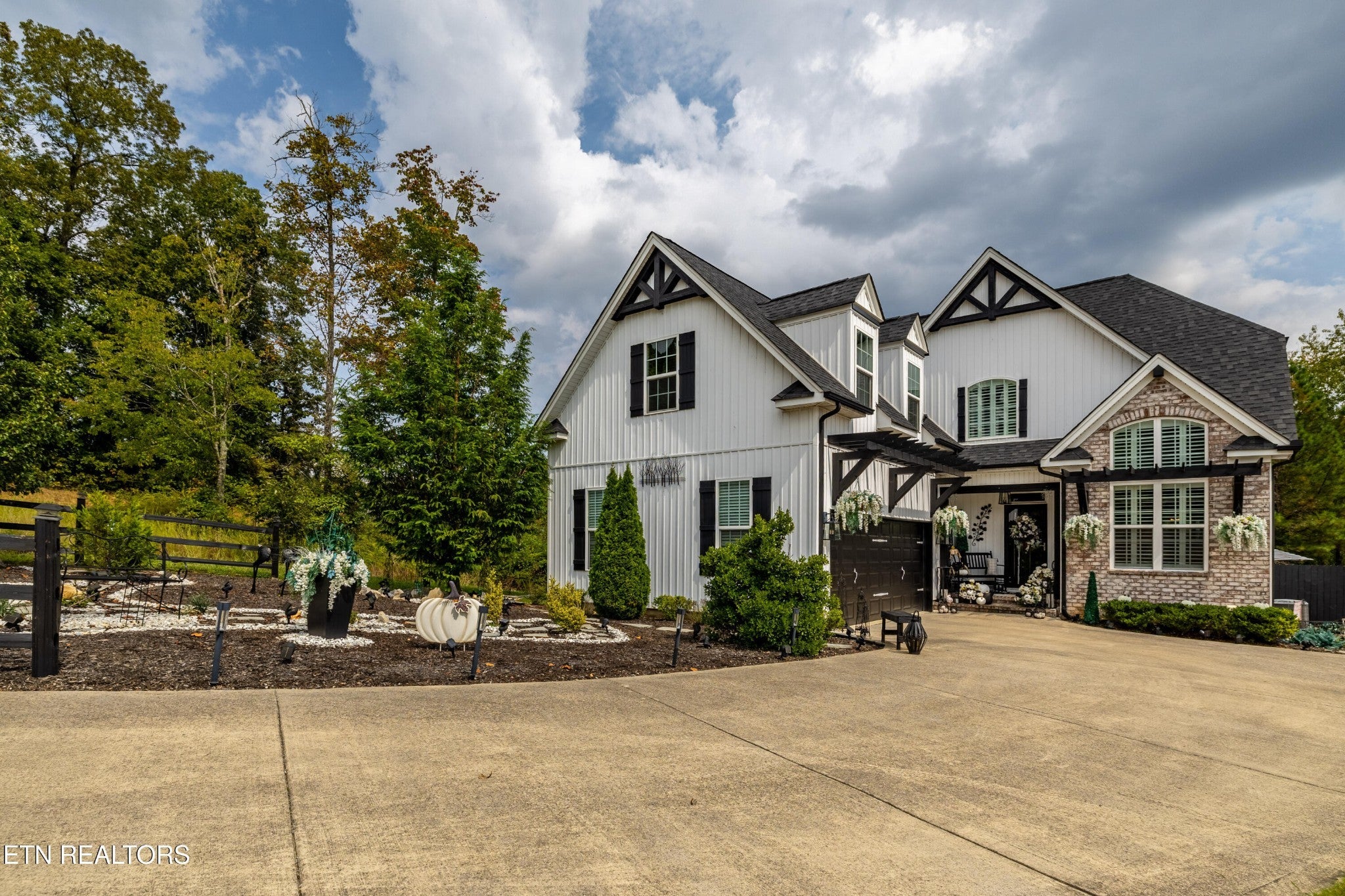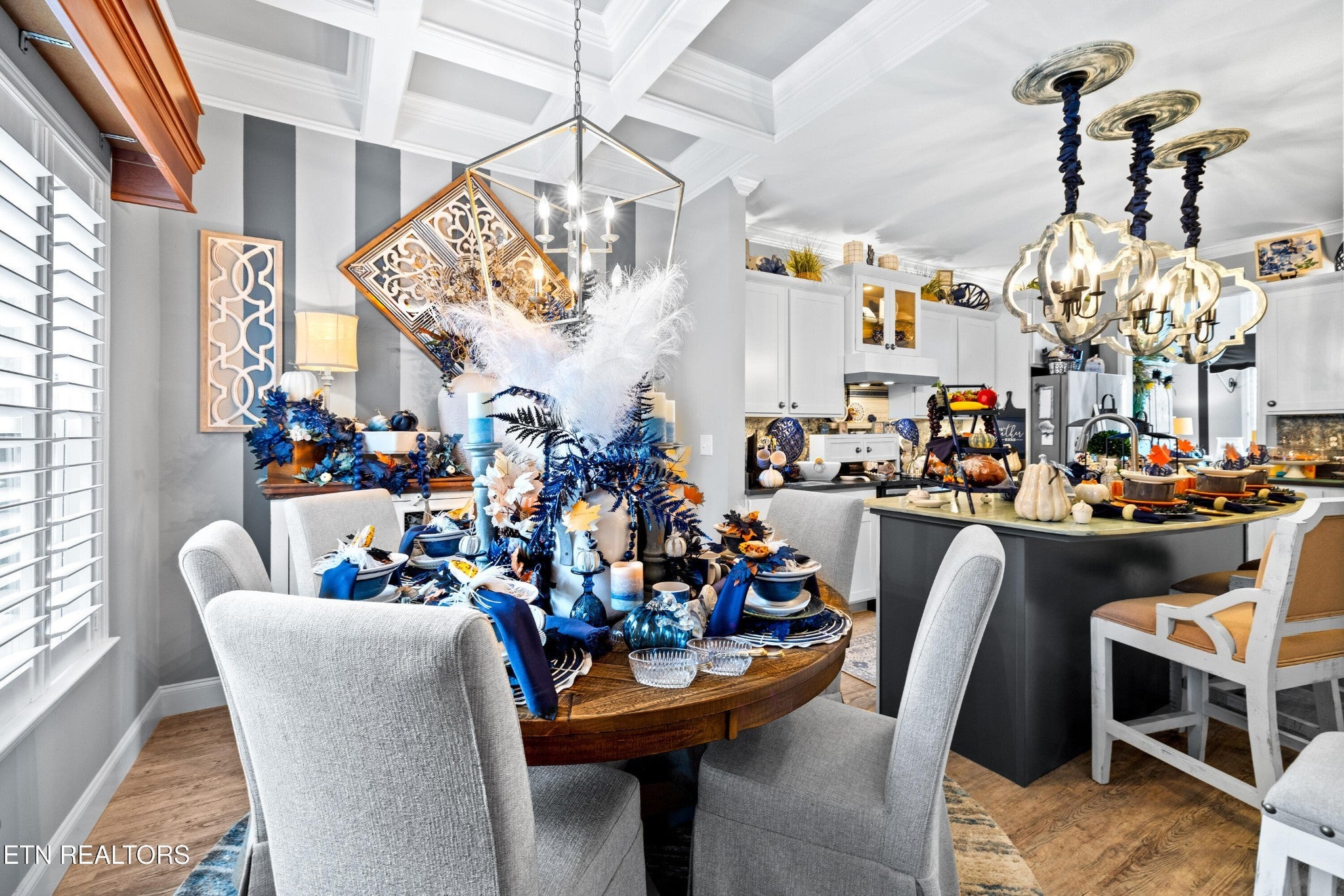 Welcome to this beautiful Lenoir City home, featuring thoughtfully designed finishes and plenty of living space. Inside you will find interior trim details that include crown molding, wainscoting, 5-panel molded doors, decorative beams in the living room and a coffered ceiling in the eat-in kitchen. The main-level primary suite features a grand trey ceiling with crown molding, a jetted tub, walk-in tile shower and walk-in closet. The kitchen is open to the living room with a large island, perfect for entertaining. Stainless steel appliances, including the refrigerator and wine fridge, complete the kitchen. Custom shutters and blinds accent every room including the garage. All bedrooms including the great room and bonus room have ceiling fans. Cable is hardwired in all rooms and the garage. The dining room can also serve as a sitting area or home office. Upstairs offers two additional bedrooms and one bath, plus a large bonus room with a walk-in closet, giving flexibility for guests or hobbies. Outdoor spaces include a screened deck overlooking the retention pond, where summer cattails create a beautiful natural backdrop. The screened deck features additional screening installed beneath the deck boards, plus a vaulted tongue-and-groove ceiling accented by a beam and ceiling fan. It is also pre-wired for cable, making it easy to enjoy TV outdoors. There are multiple flagstone patio areas in the backyard and around the retention pond which are perfect for relaxing and entertaining. Located at the end of the street and within city limits, this home combines comfort, style, and privacy. Buyer to verify all information including square footage.