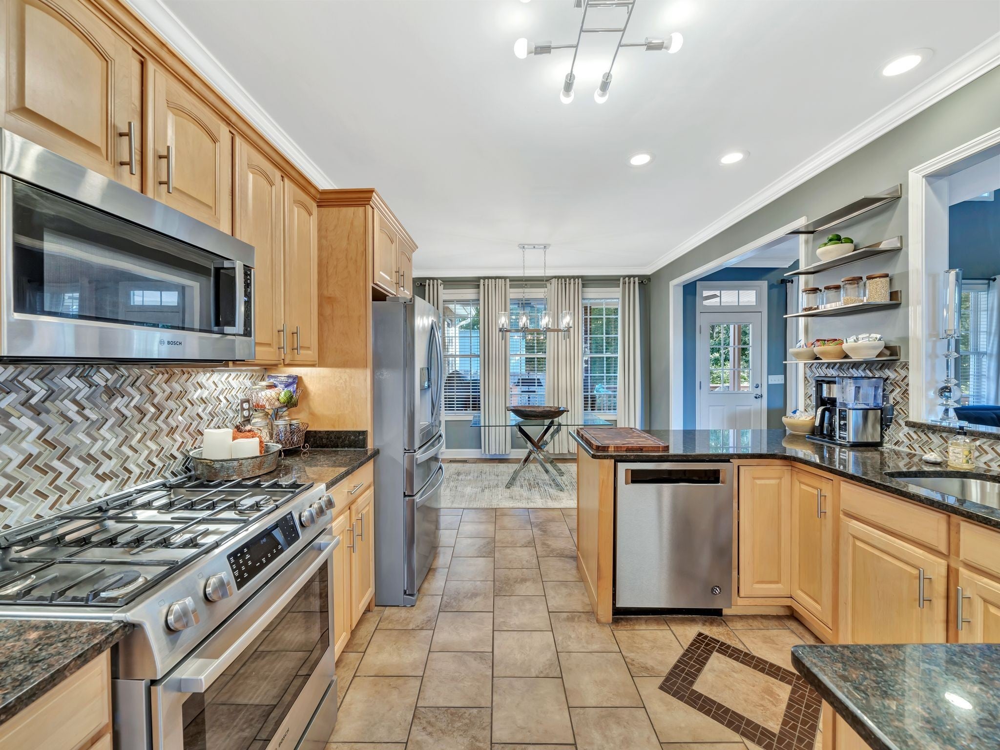 - Oven, Gas Range, Dishwasher, Microwave, Stainless Steel Appliance(s)