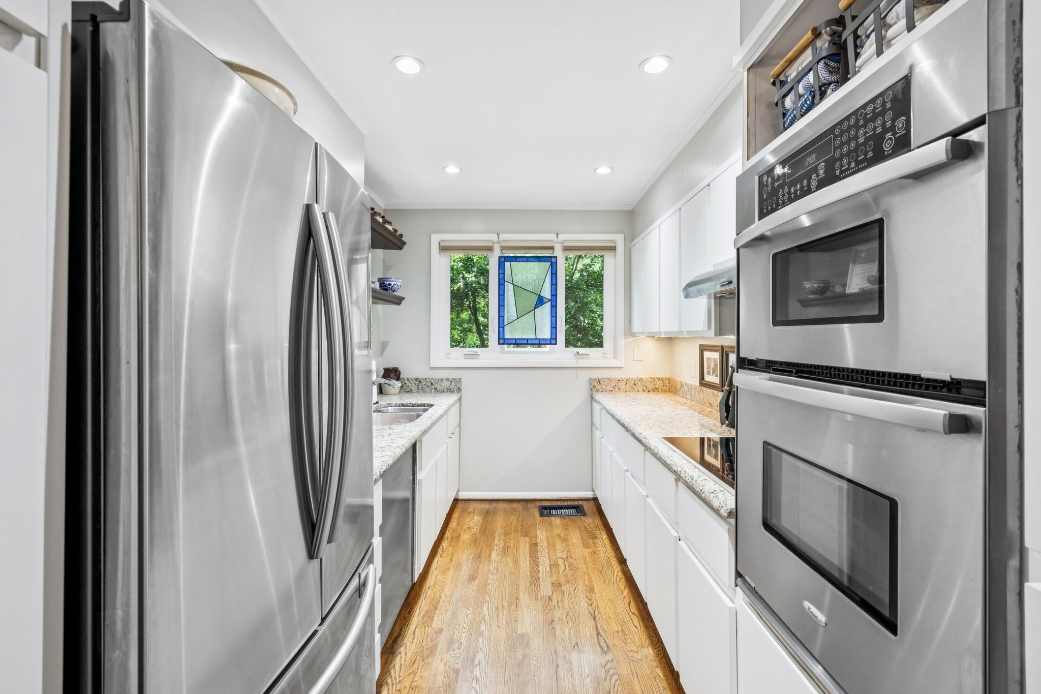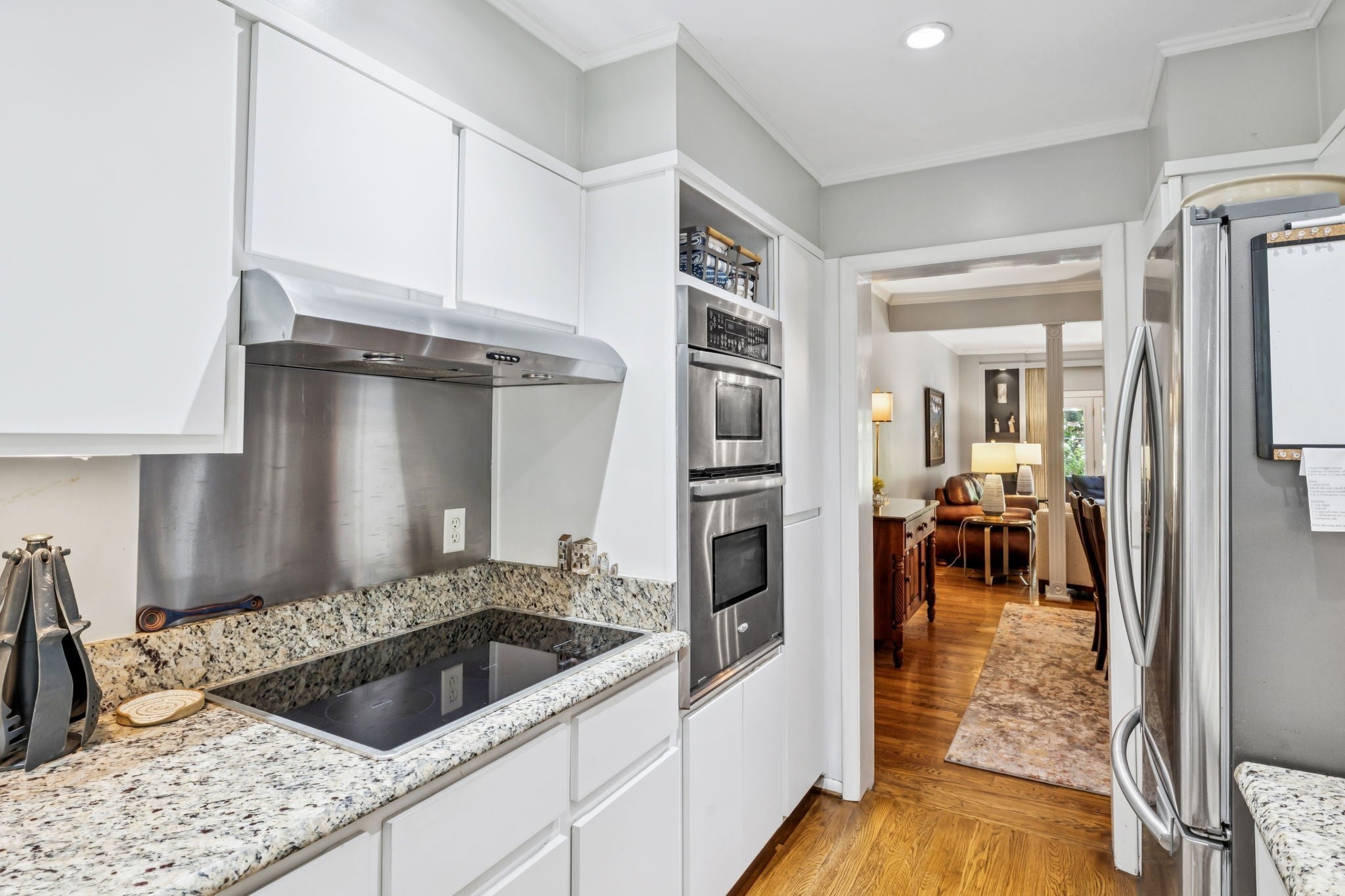 - Built-In Electric Oven, Cooktop, Dishwasher, Disposal, Dryer, Microwave, Refrigerator, Stainless Steel Appliance(s), Washer