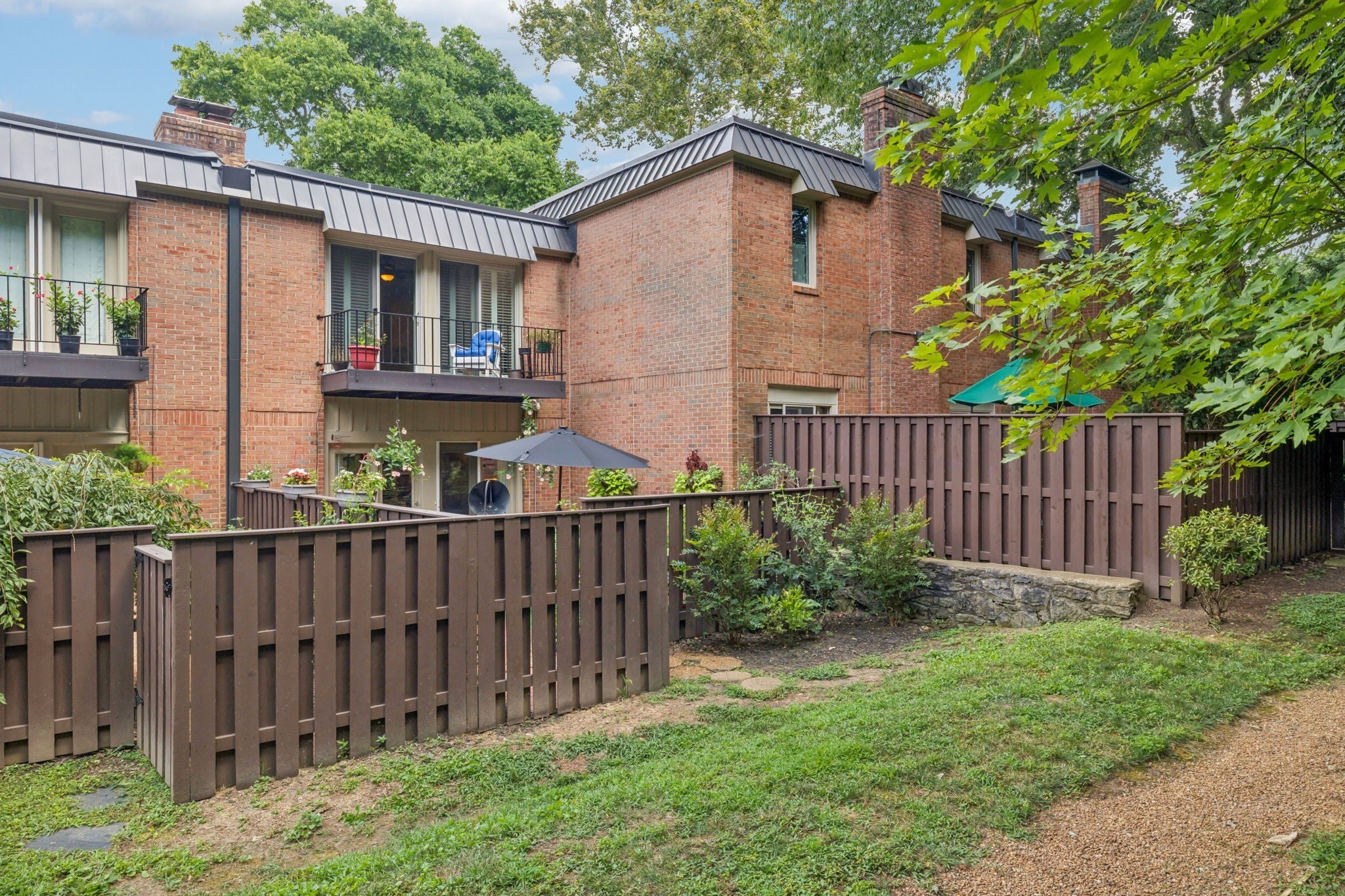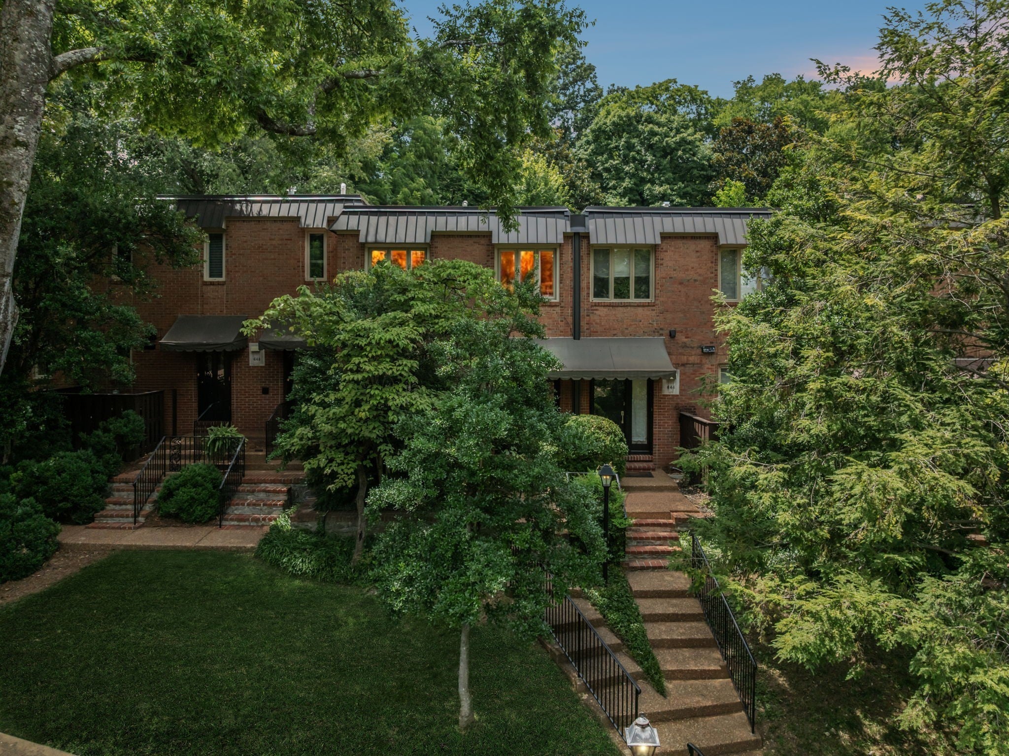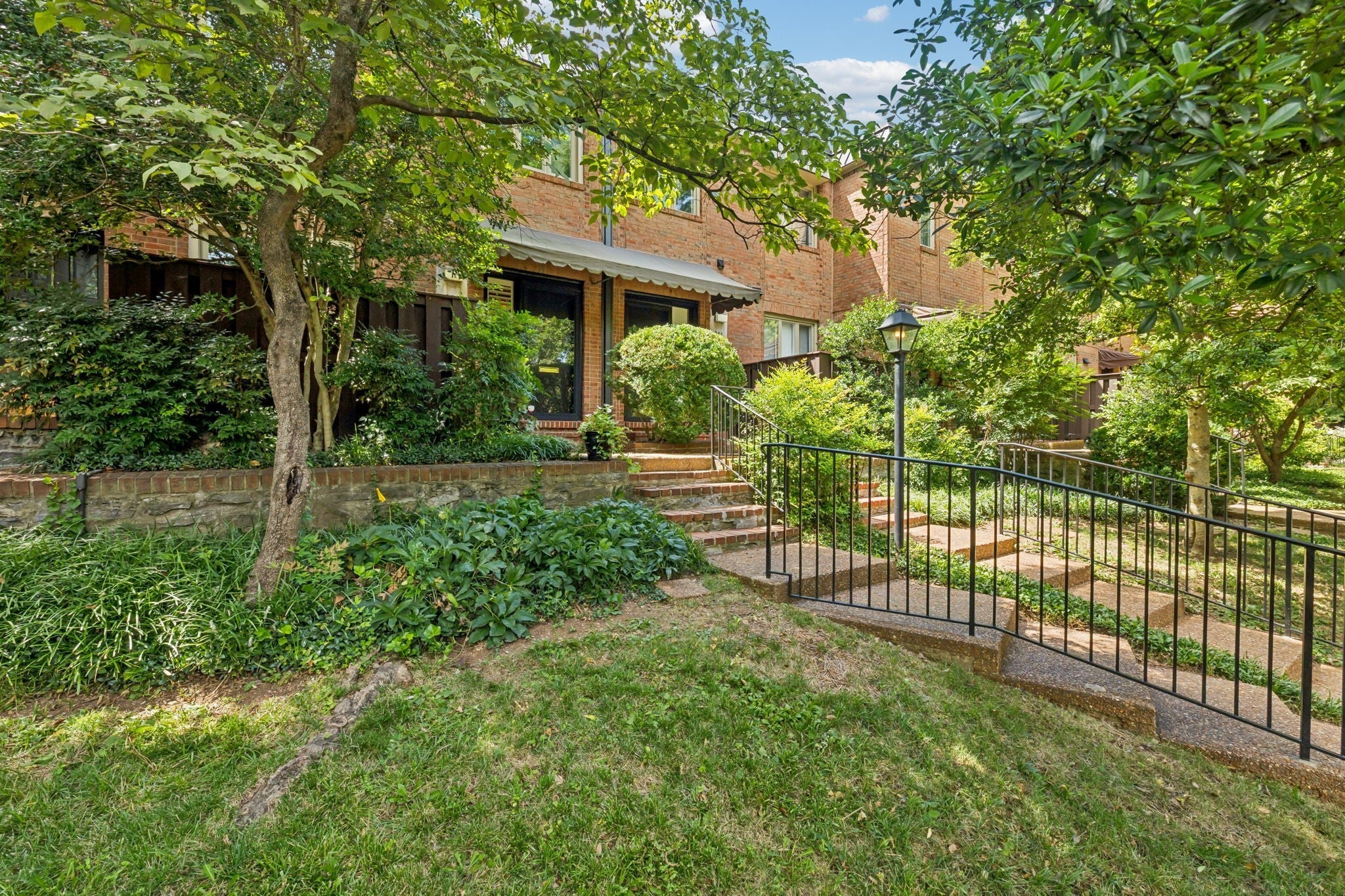 Welcome to a rare opportunity in one of Tennessee’s most historic and desirable communities—Regency Park, the state’s very first condominium complex. This beautifully updated 2-bedroom, 2.5-bath townhome offers the perfect blend of timeless elegance, modern comfort, and an unbeatable location. Just 10 minutes from some of Nashville’s most sought-after neighborhoods—including Vanderbilt, Hillsboro Village, Belle Meade, 12South, Sylvan Park, and Downtown—you’ll enjoy exceptional convenience in a peaceful, tree-lined setting. Inside, rich hardwood floors extend throughout a well-designed layout that blends comfort, style, and functionality—ideal for both everyday living and entertaining. The main level features a welcoming foyer, a convenient half bath, and a spacious open-concept dining and living area. The kitchen, located just off the dining space, offers both practicality and charm, with easy access for hosting or casual meals. Custom built-in shelves frame a wall of glass doors that open to a private back patio, while a cozy gas fireplace brings warmth and character to the living room. Outdoors, enjoy the tranquility of the private back patio, surrounded by mature landscaping and ideal for both quiet moments and entertaining. It's a quick easy walk to the neighborhood pool! Upstairs, the thoughtful design continues with a centrally located laundry area, a guest bedroom complete with an en suite full bath and generous closet space, and a spacious primary suite featuring ample storage, an updated private bath, and direct access to a charming upper-level balcony that overlooks the lush, enclosed patio below—perfect for morning coffee or relaxing at sunset. Whether you're hosting guests or seeking a peaceful retreat, this home offers timeless appeal, privacy, and comfort in one of the area’s most desirable communities.