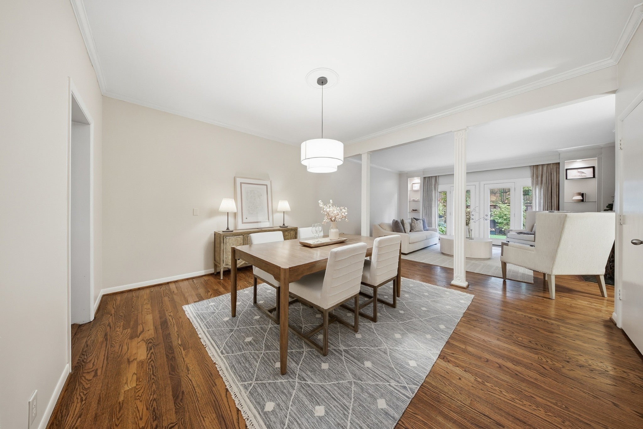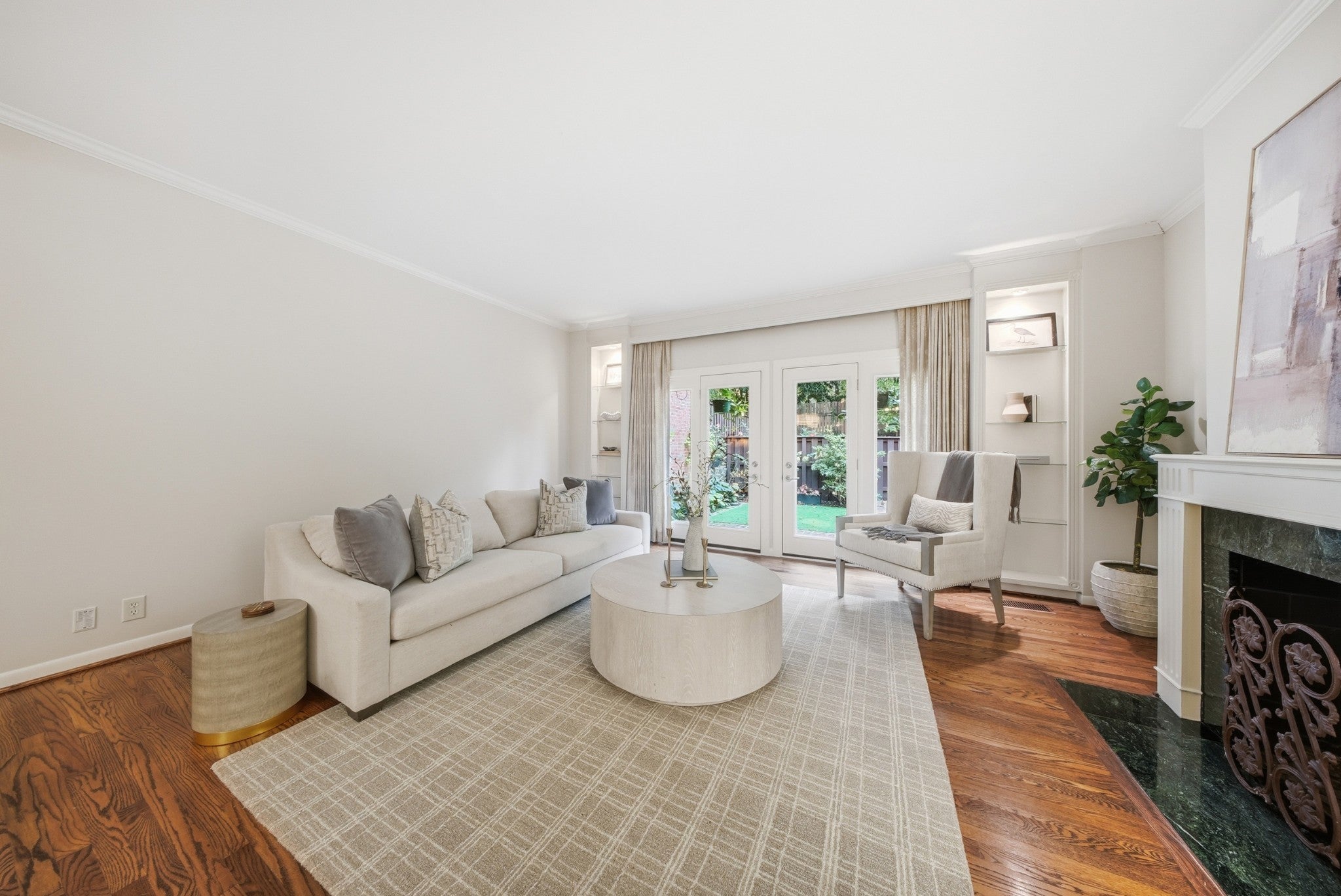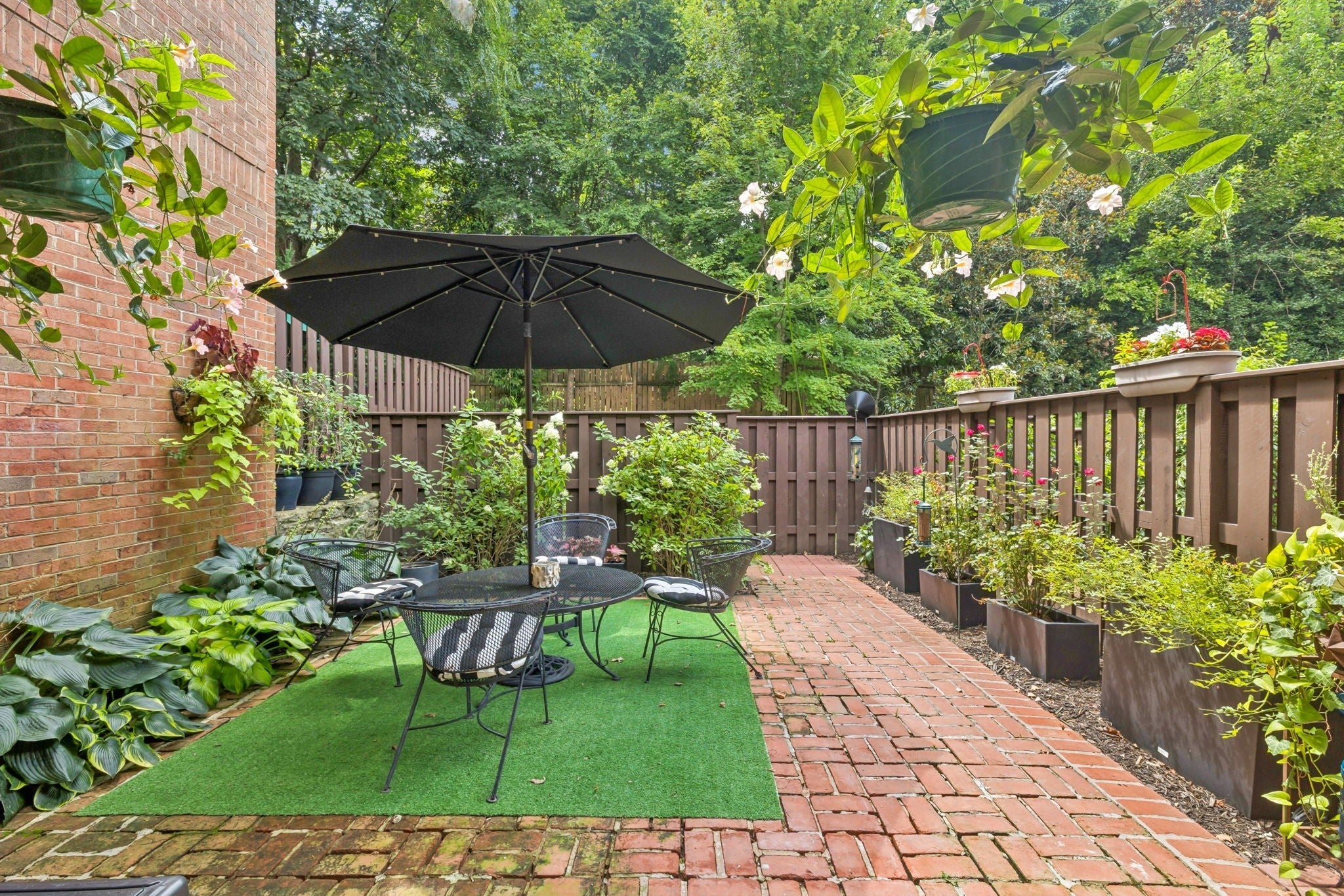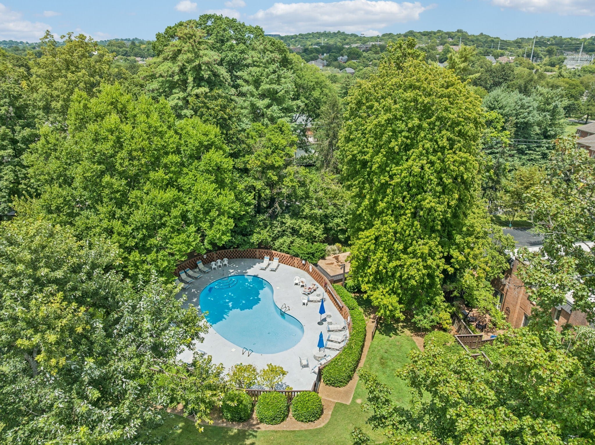 Welcome to a rare opportunity in one of Tennessee’s most historic and desirable communities—Regency Park, the state’s very first condominium complex. This beautifully updated 2-bedroom, 2.5-bath townhome offers the perfect blend of timeless elegance, modern comfort, and an unbeatable location. Just 10 minutes from some of Nashville’s most sought-after neighborhoods—including Vanderbilt, Hillsboro Village, Belle Meade, 12South, Sylvan Park, and Downtown—you’ll enjoy exceptional convenience in a peaceful, tree-lined setting. Inside, rich hardwood floors extend throughout a well-designed layout that blends comfort, style, and functionality—ideal for both everyday living and entertaining. The main level features a welcoming foyer, a convenient half bath, and a spacious open-concept dining and living area. The kitchen, located just off the dining space, offers both practicality and charm, with easy access for hosting or casual meals. Custom built-in shelves frame a wall of glass doors that open to a private back patio, while a cozy gas fireplace brings warmth and character to the living room. Outdoors, enjoy the tranquility of the private back patio, surrounded by mature landscaping and ideal for both quiet moments and entertaining. It's a quick easy walk to the neighborhood pool! Upstairs, the thoughtful design continues with a centrally located laundry area, a guest bedroom complete with an en suite full bath and generous closet space, and a spacious primary suite featuring ample storage, an updated private bath, and direct access to a charming upper-level balcony that overlooks the lush, enclosed patio below—perfect for morning coffee or relaxing at sunset. Whether you're hosting guests or seeking a peaceful retreat, this home offers timeless appeal, privacy, and comfort in one of the area’s most desirable communities.