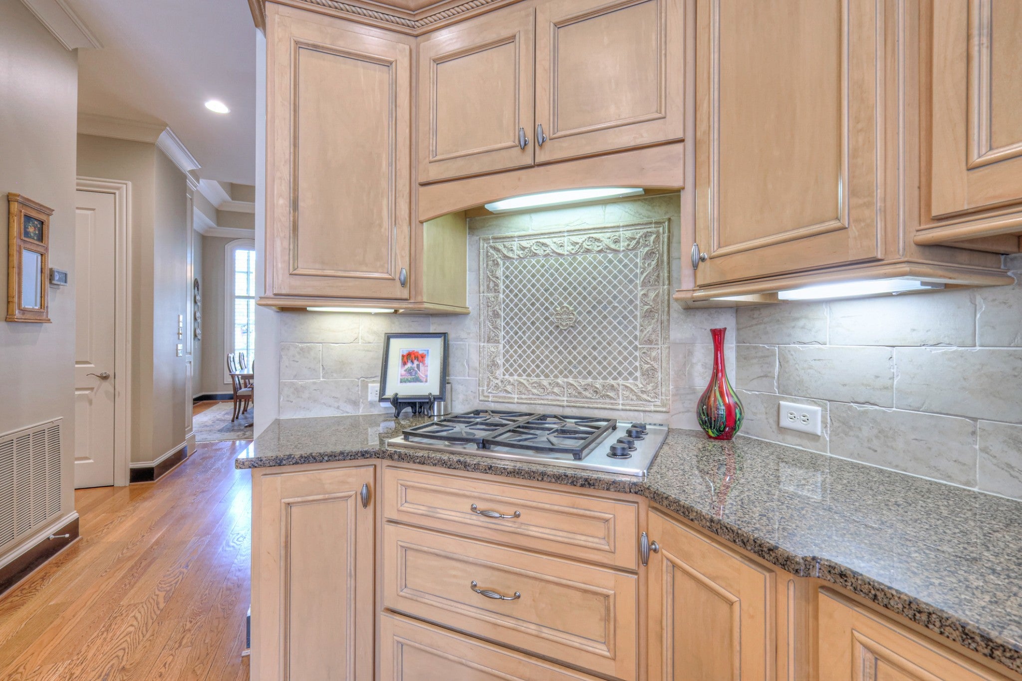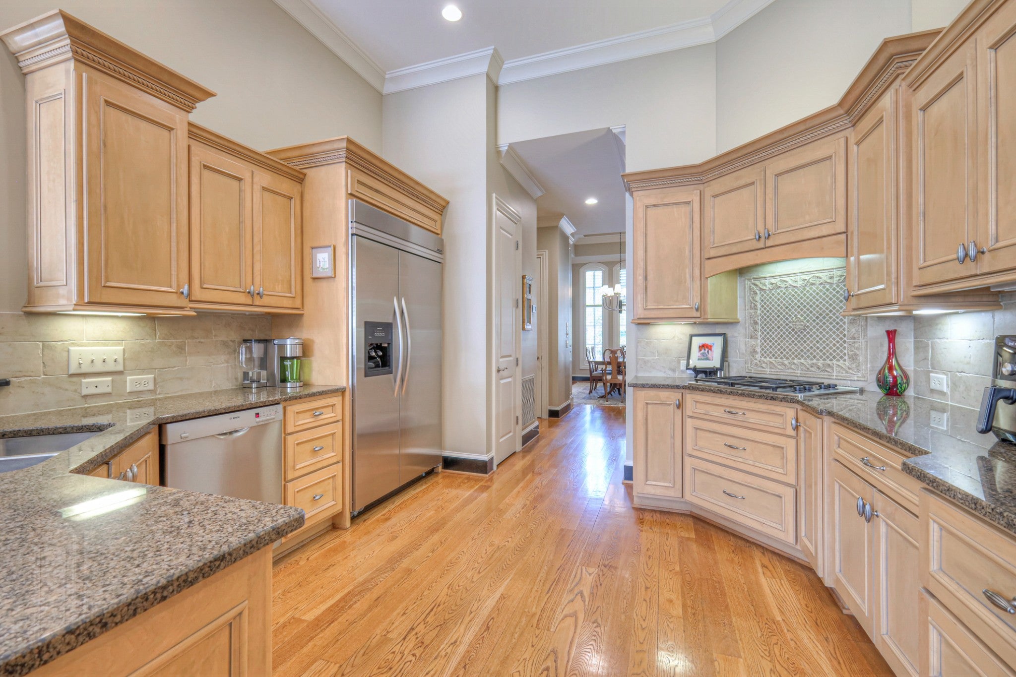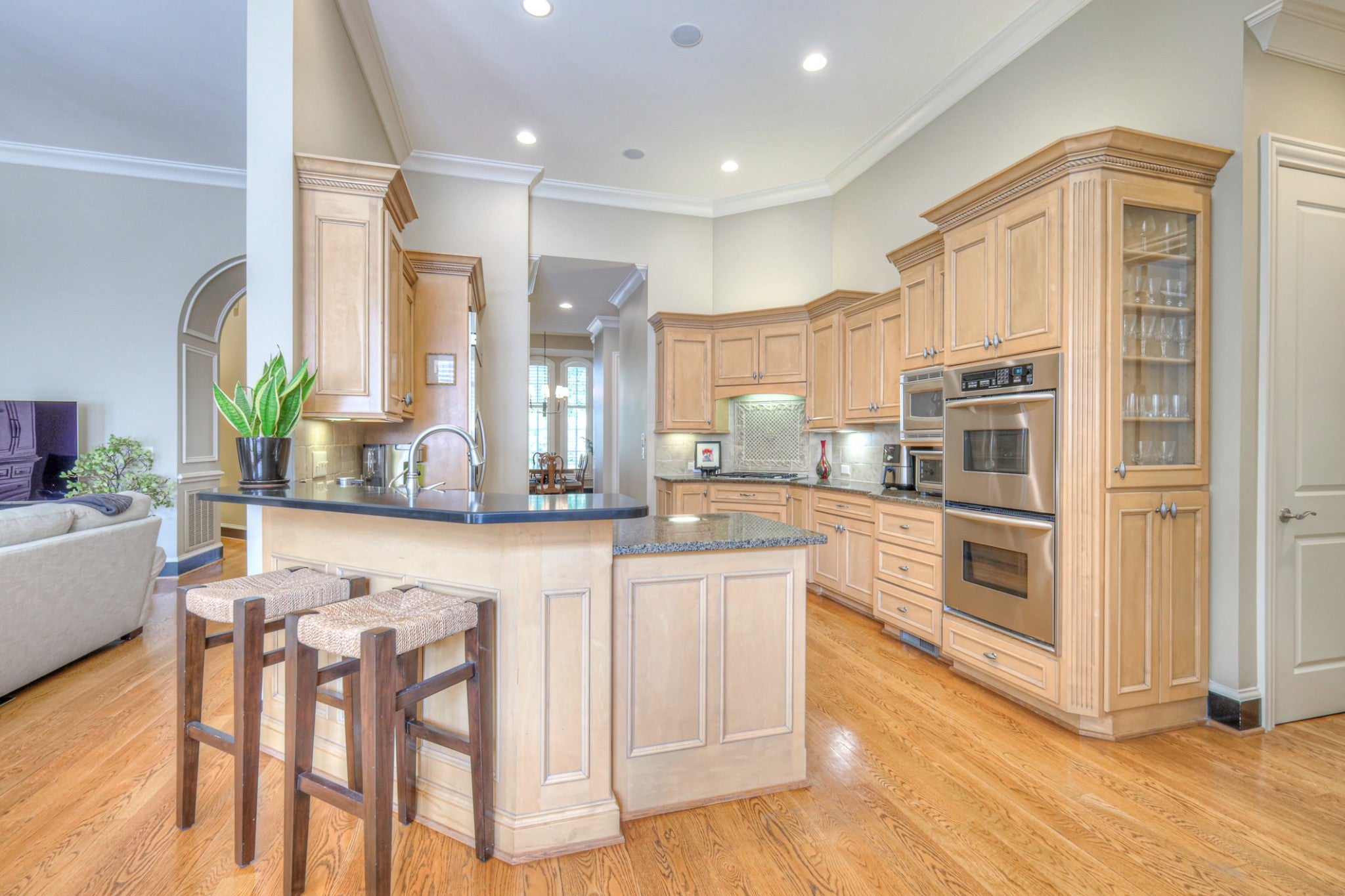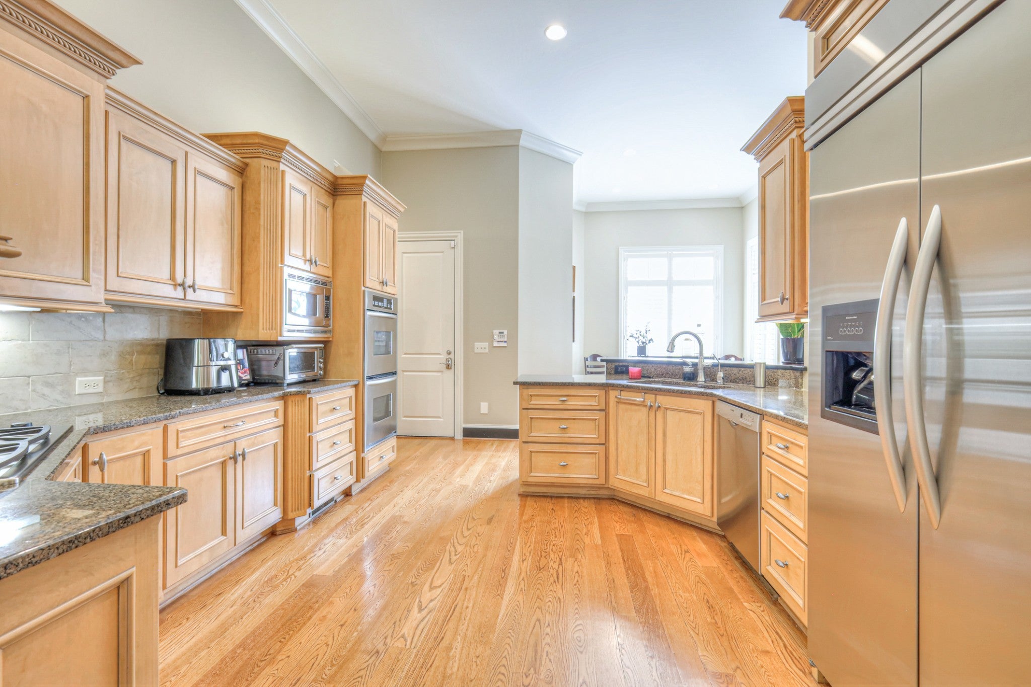 - Double Oven, Electric Oven, Cooktop, Dishwasher, Disposal, Microwave, Refrigerator, Stainless Steel Appliance(s)