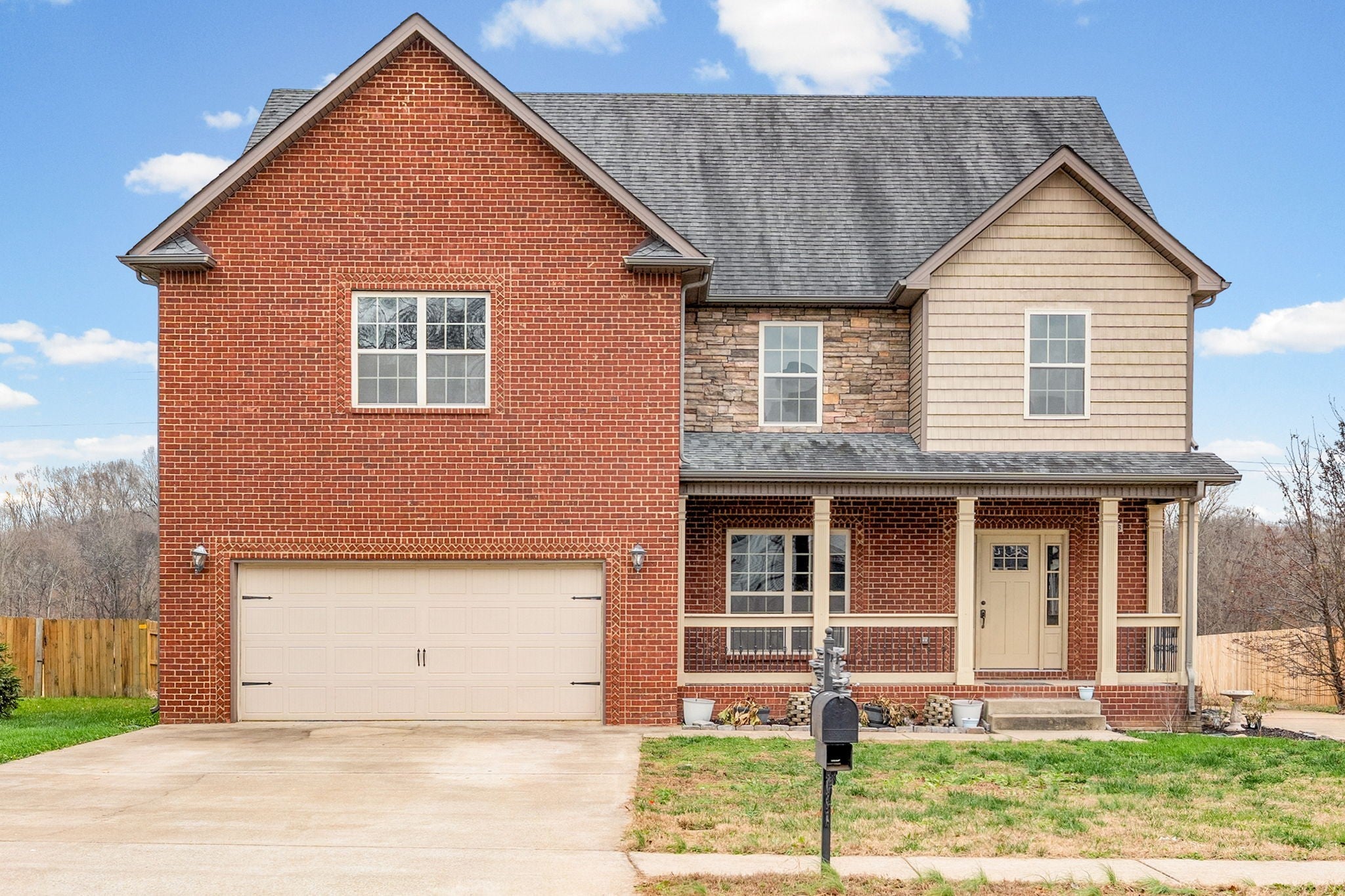 Timber Springs stunner on a deep 0.61-acre lot with room to spread out. 4BR/3.5BA with all bedrooms having direct bath access, plus a spacious bonus over the garage and an additional flex room that works perfectly as an office or potential 5th bedroom. Main level is built for everyday life and entertaining—formal dining, open kitchen with island, stainless steel appliances, and double ovens. King-size primary suite with a separate tub/shower and a large walk-in closet. Enjoy the covered front porch and covered back deck overlooking a level, usable yard. Second driveway for extra parking. HVAC has been regularly maintained, and there’s a whole-home saltwater water softener system for added comfort and efficiency. Quick access to I-24/Exit 1, shopping, dining, and Fort Campbell. Note: There may be an HOA fee for trash pickup, approximately $25/month.