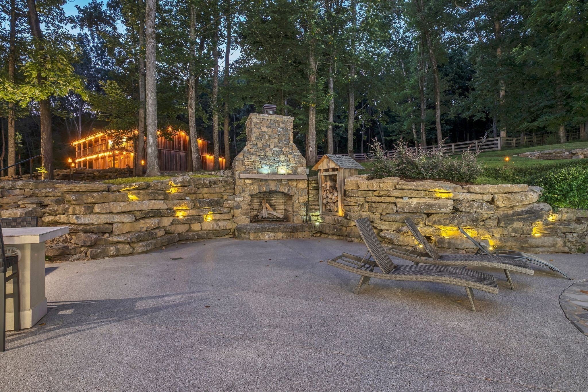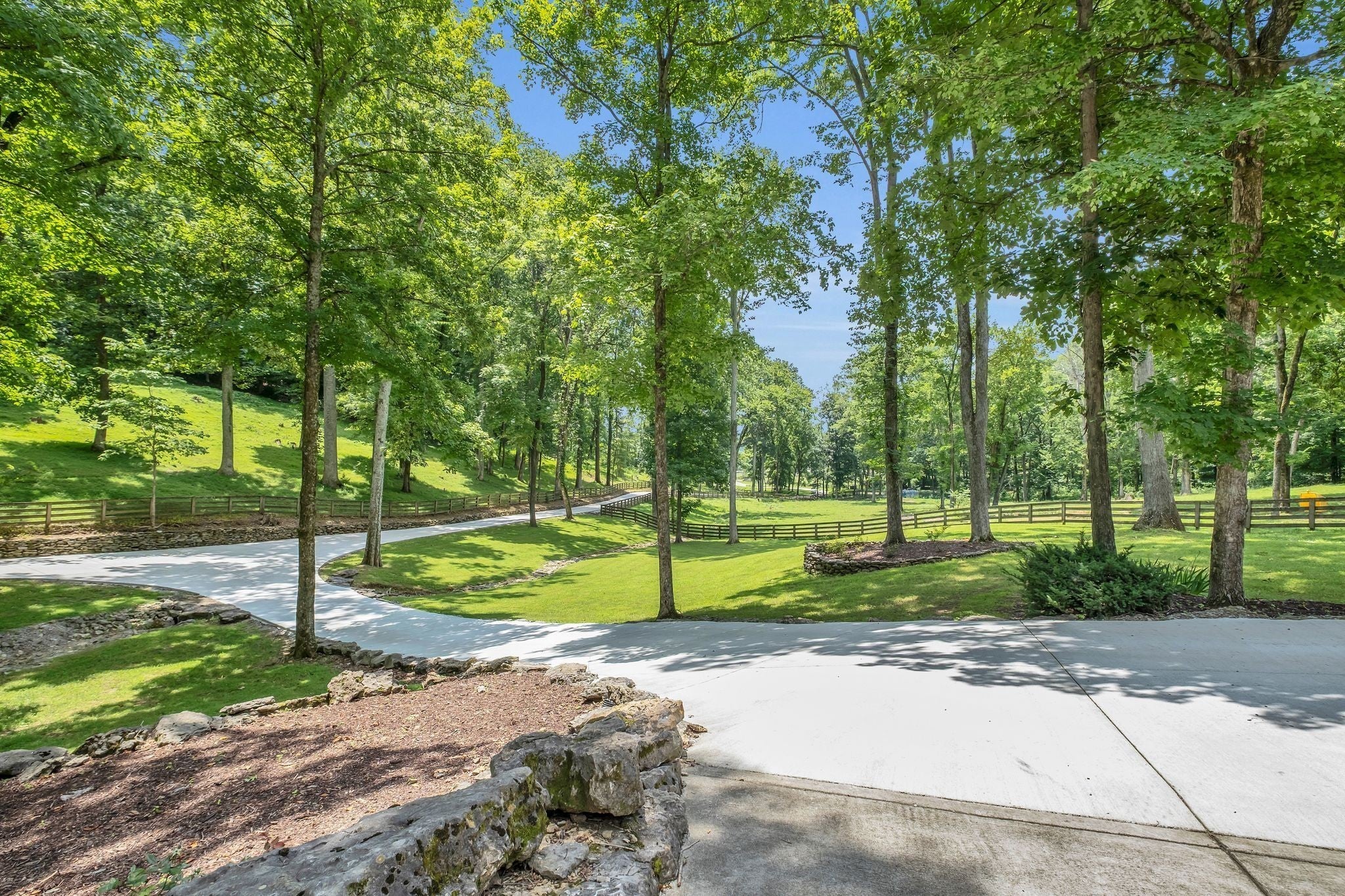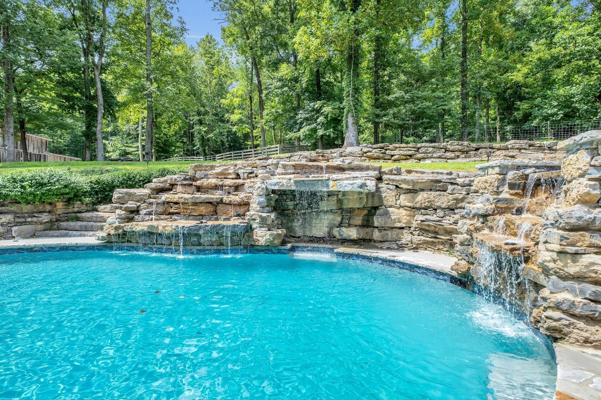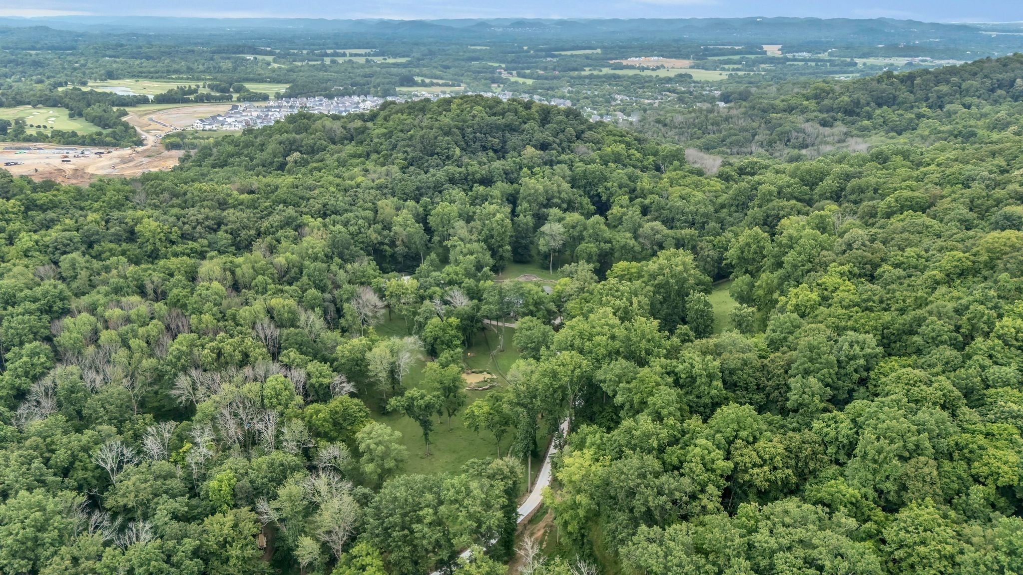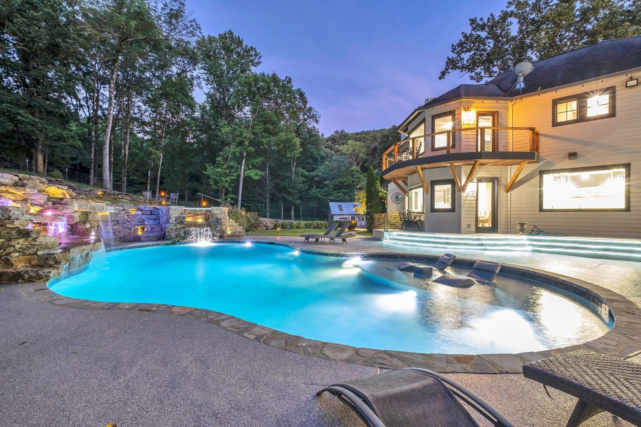 Tucked away in total privacy yet just minutes from the charm of Franklin and Leiper's Fork, this extraordinary estate blends natural beauty with refined living. Enrolled in the Greenbelt program, the acreage is suited for animals or simply enjoying the rolling pastures, wooded ridges, entertainment barn and tranquil pond. At its center rests a 5,748 sq ft custom 5 bedroom home, thoughtfully built with native wood harvested from the property and hand-selected stone. Expansive windows invite the outdoors in, highlighting soaring forest views while the great room’s stone fireplace open-concept design and chef’s kitchen create a perfect gathering place. The primary suite offers a spa-inspired retreat with expansive custom closet. Outside enjoy a resort-style pool with cascading waterfall, covered patio, outdoor kitchen and fireplace elevating your everyday living. Completing the estate is a 1,700 sq ft guest house and a 3,500 sq ft barn with horse stalls, entertaining space and a bar. This is truly rare Tennessee property of remarkable versatility and beauty.