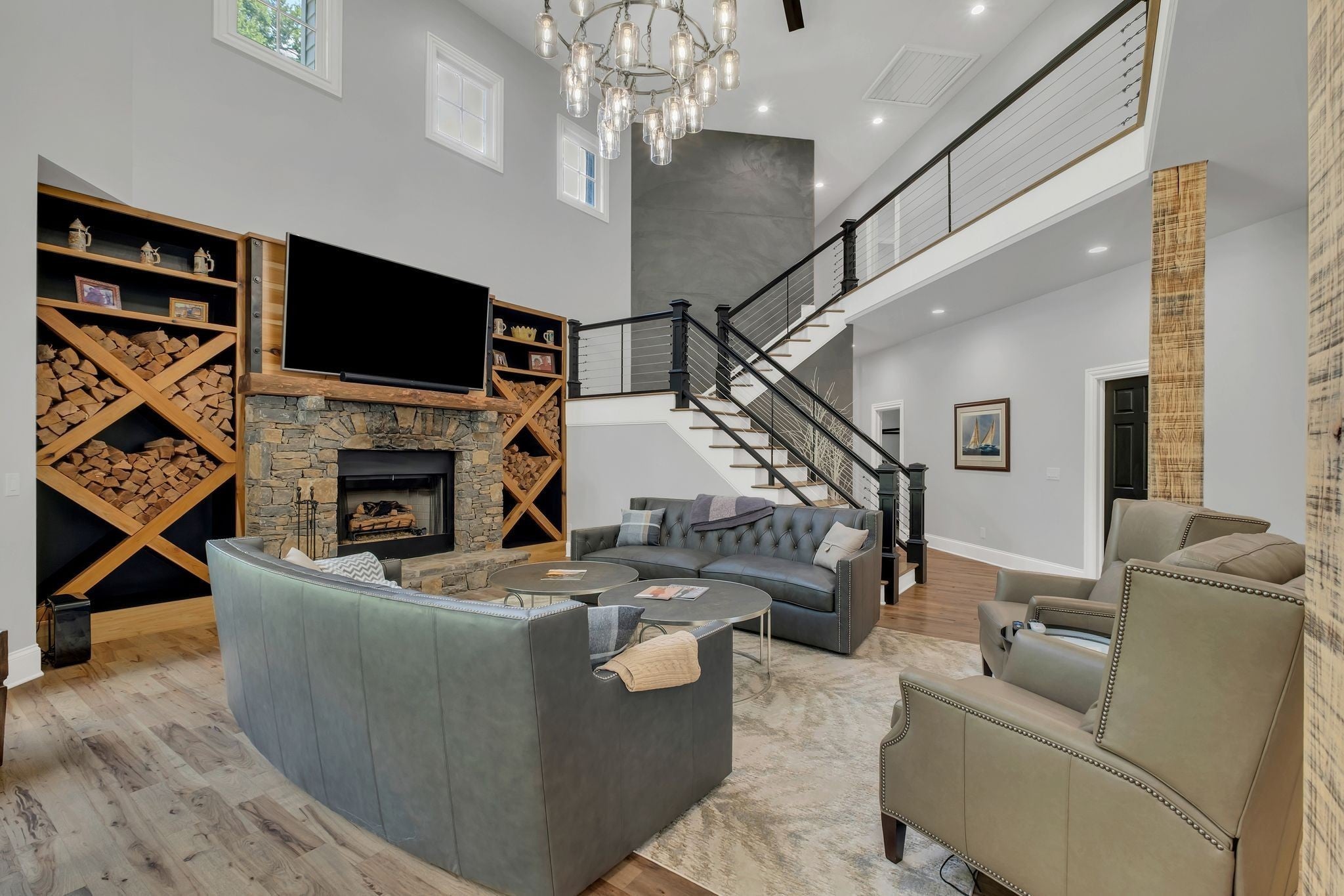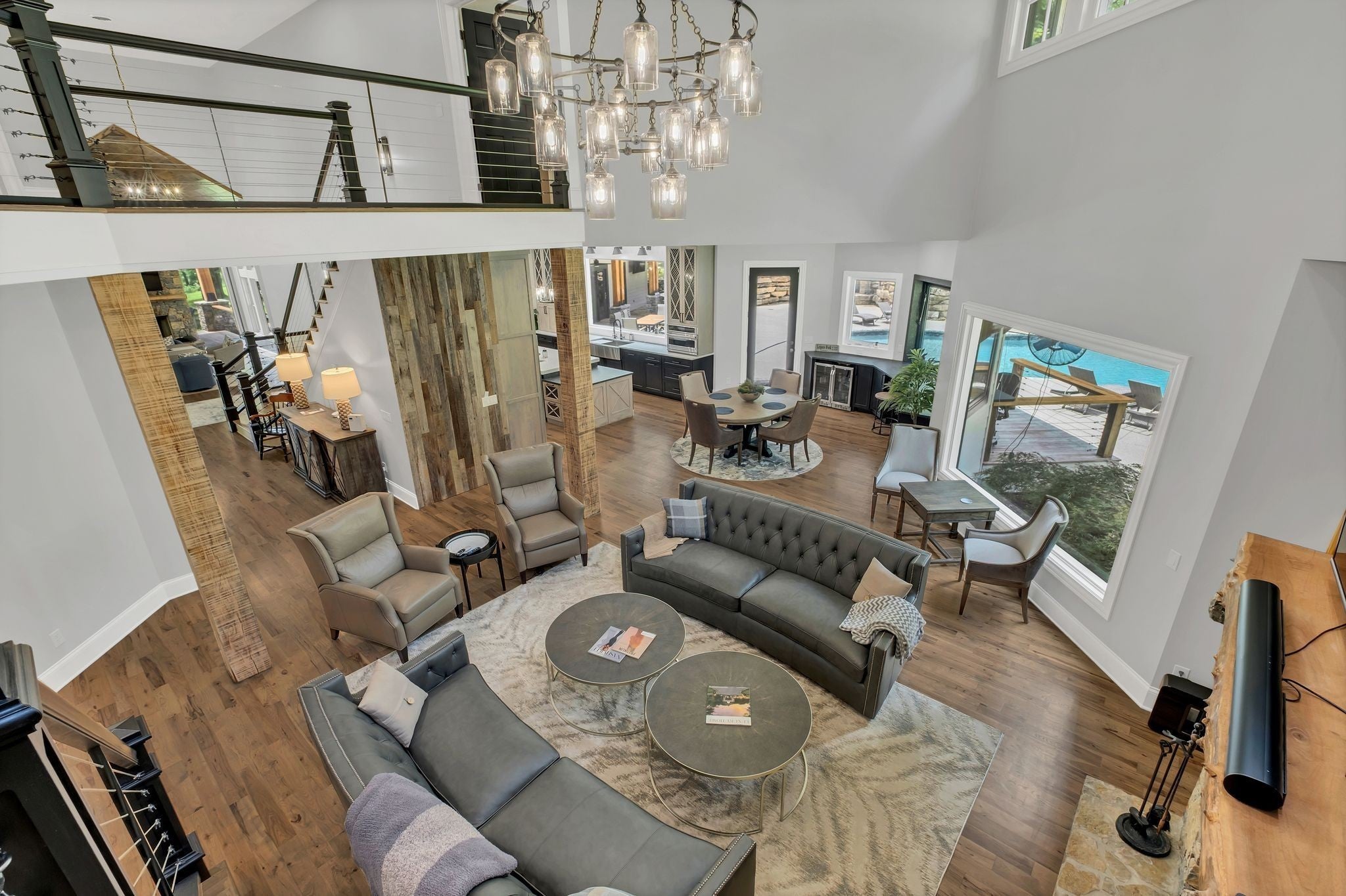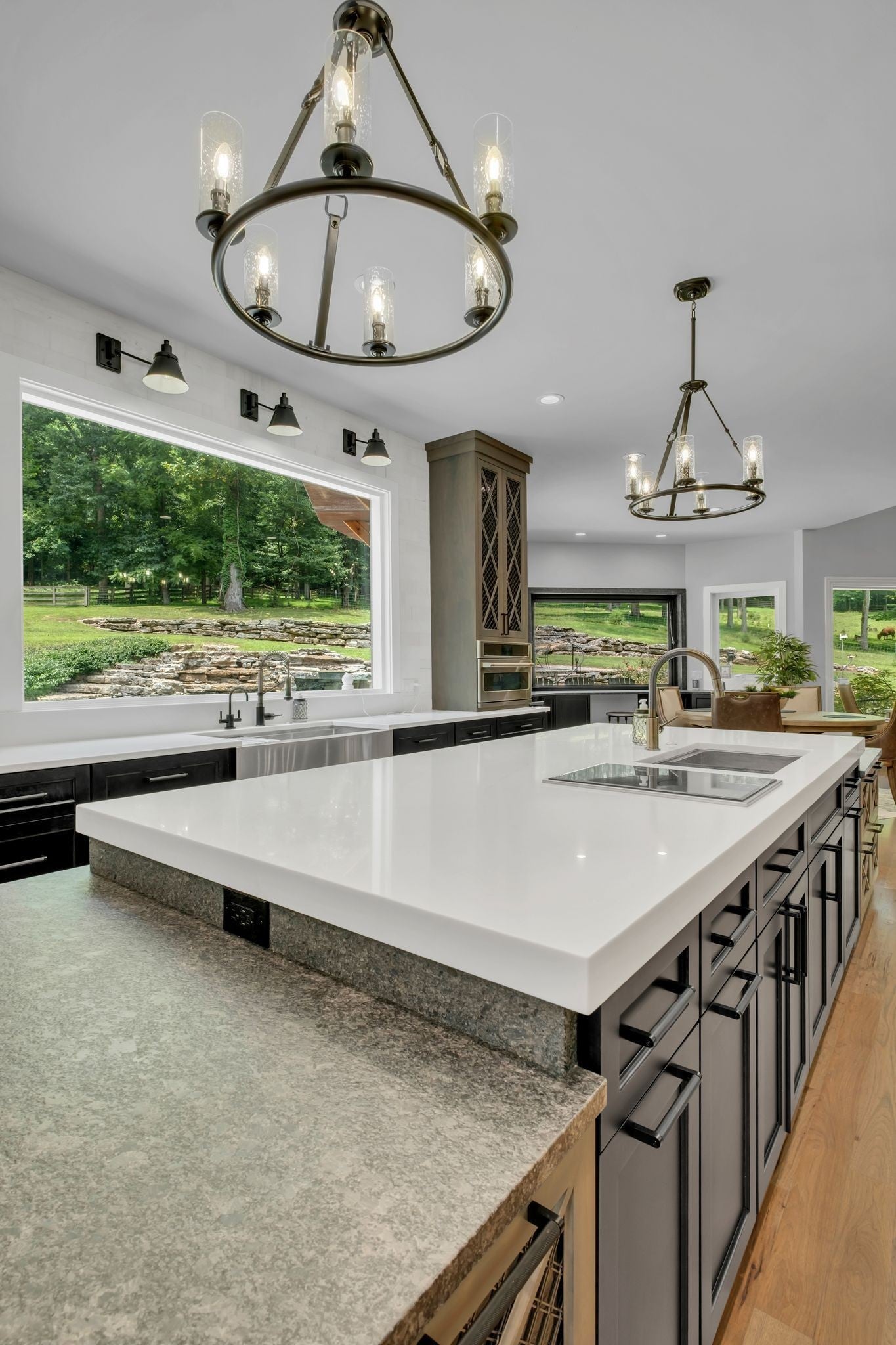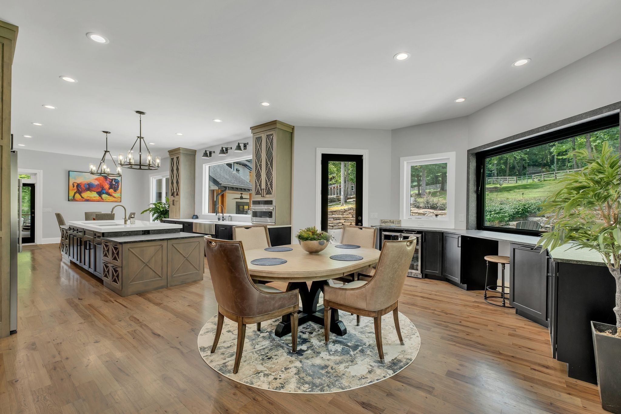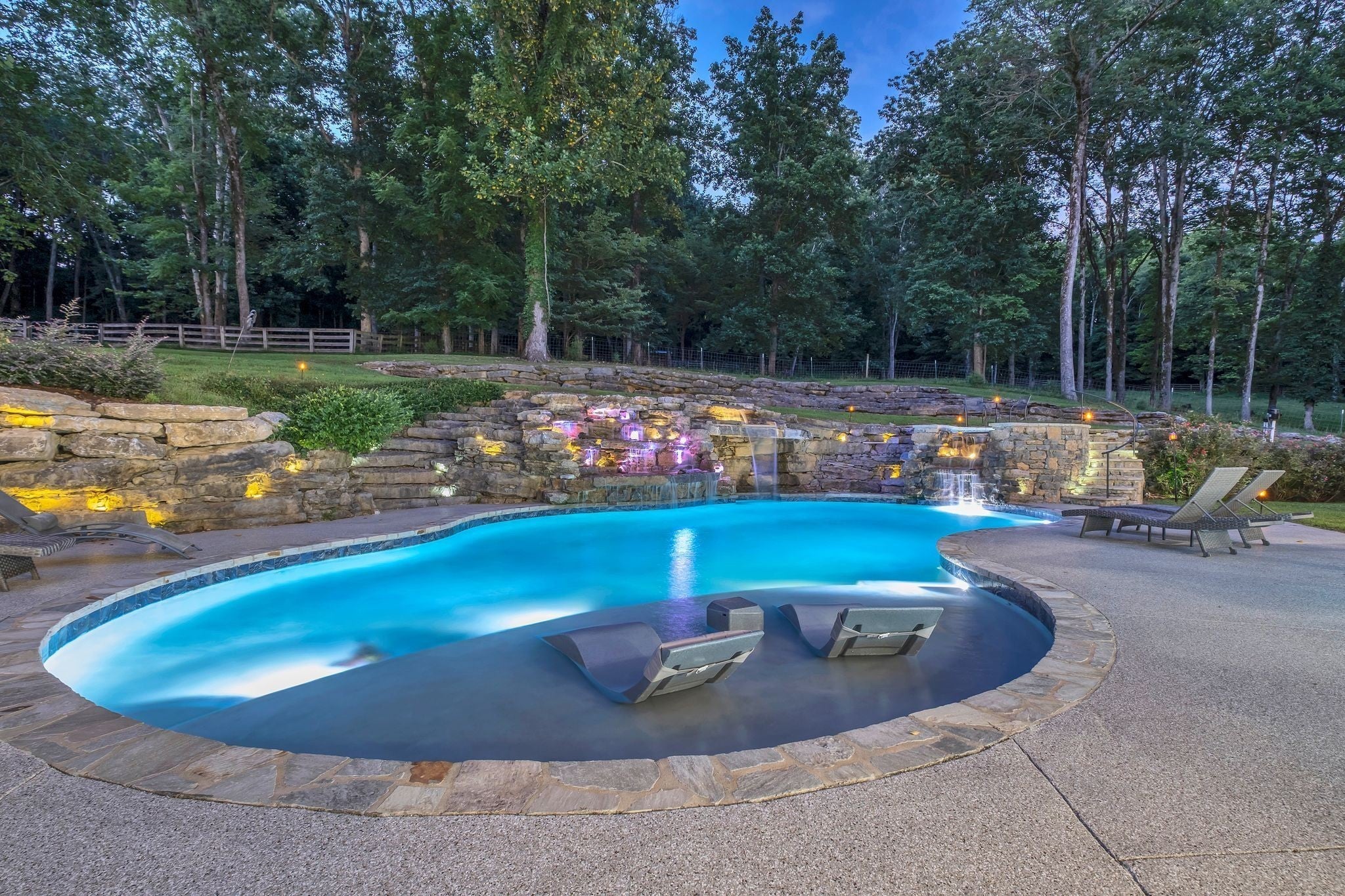 Tucked away in total privacy yet just minutes from the charm of Franklin and Leiper's Fork, this extraordinary estate blends natural beauty with refined living. Enrolled in the Greenbelt program, the acreage is suited for animals or simply enjoying the rolling pastures, wooded ridges, entertainment barn and tranquil pond. At its center rests a 5,748 sq ft custom 5 bedroom home, thoughtfully built with native wood harvested from the property and hand-selected stone. Expansive windows invite the outdoors in, highlighting soaring forest views while the great room’s stone fireplace open-concept design and chef’s kitchen create a perfect gathering place. The primary suite offers a spa-inspired retreat with expansive custom closet. Outside enjoy a resort-style pool with cascading waterfall, covered patio, outdoor kitchen and fireplace elevating your everyday living. Completing the estate is a 1,700 sq ft guest house and a 3,500 sq ft barn with horse stalls, entertaining space and a bar. This is truly rare Tennessee property of remarkable versatility and beauty.