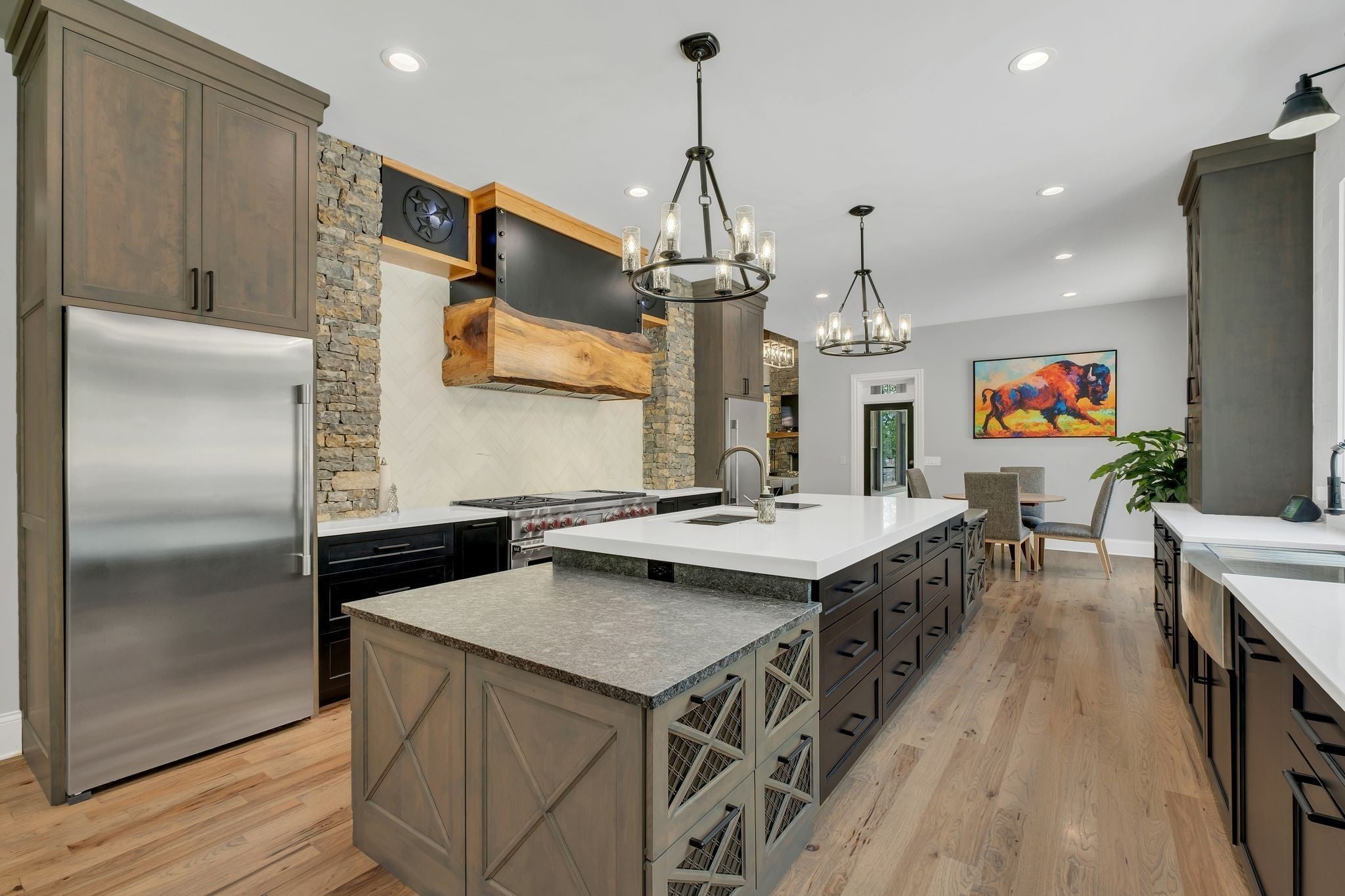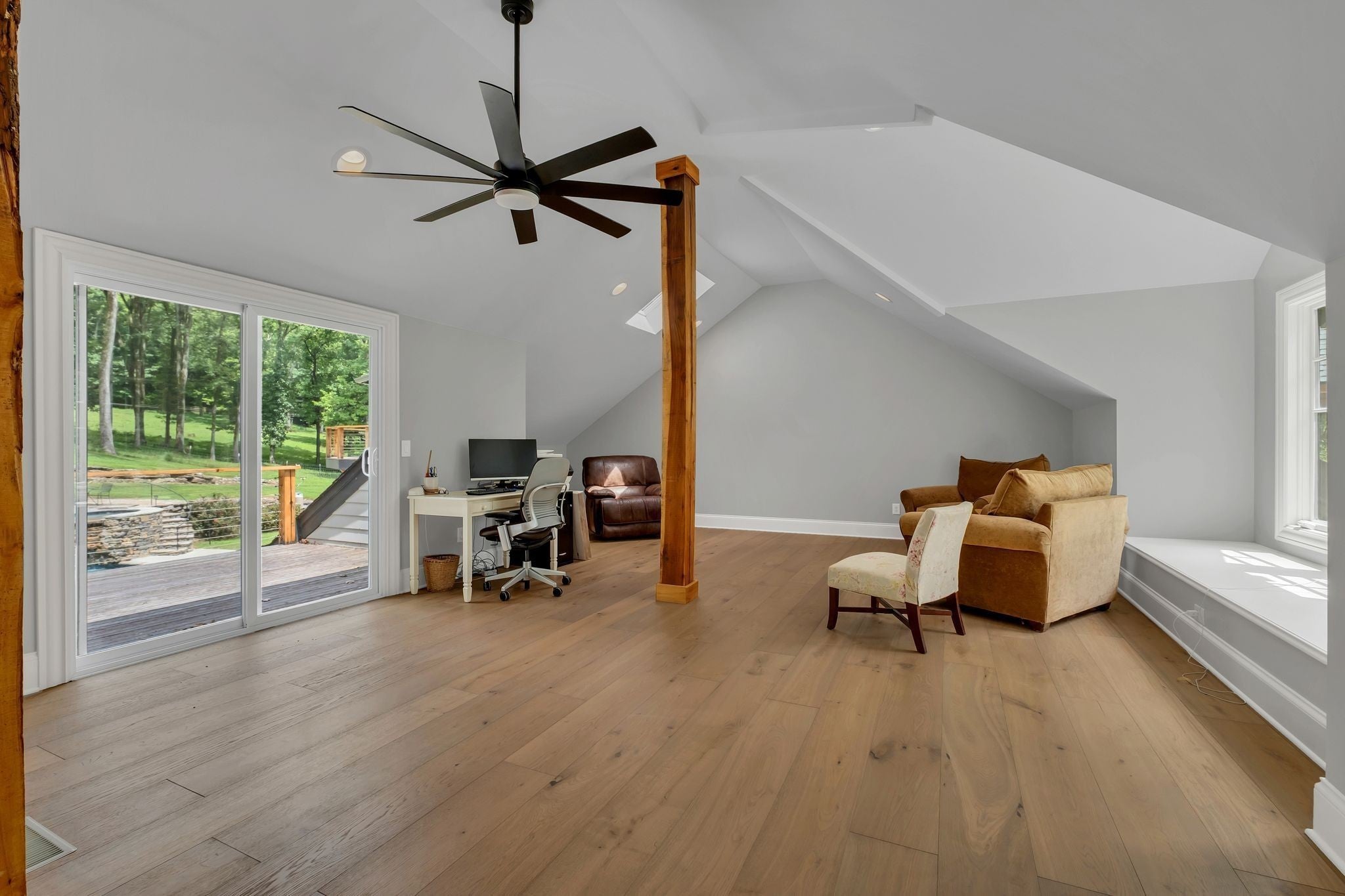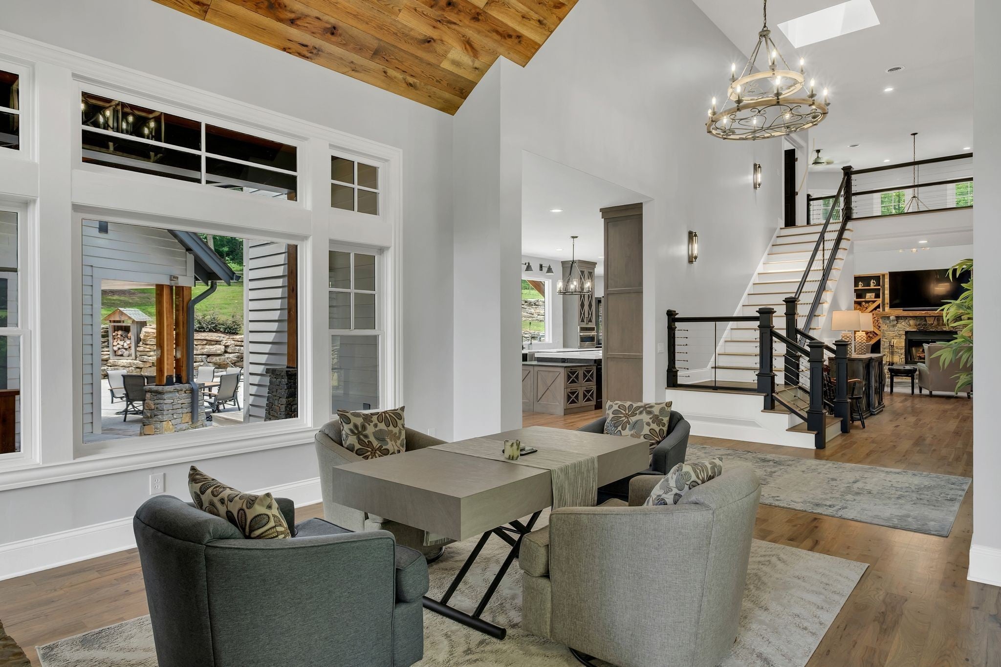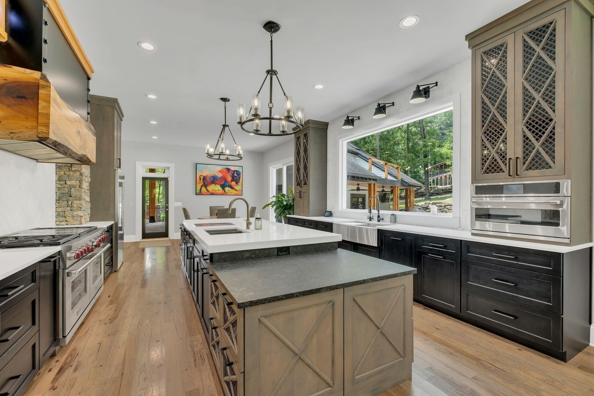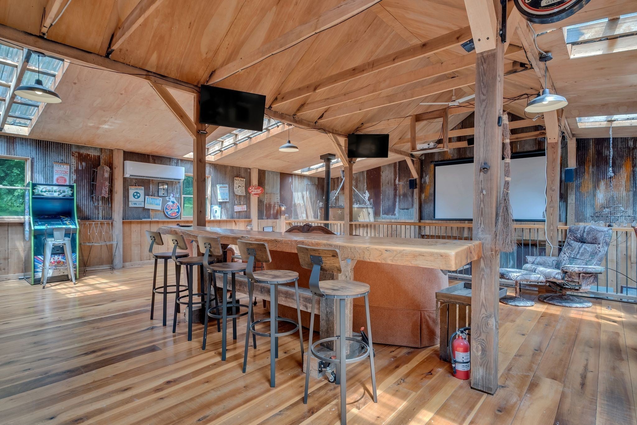 Tucked away in total privacy yet just minutes from the charm of Franklin and Leiper's Fork, this extraordinary estate blends natural beauty with refined living. Enrolled in the Greenbelt program, the acreage is suited for animals or simply enjoying the rolling pastures, wooded ridges, entertainment barn and tranquil pond. At its center rests a 5,748 sq ft custom 5 bedroom home, thoughtfully built with native wood harvested from the property and hand-selected stone. Expansive windows invite the outdoors in, highlighting soaring forest views while the great room’s stone fireplace open-concept design and chef’s kitchen create a perfect gathering place. The primary suite offers a spa-inspired retreat with expansive custom closet. Outside enjoy a resort-style pool with cascading waterfall, covered patio, outdoor kitchen and fireplace elevating your everyday living. Completing the estate is a 1,700 sq ft guest house and a 3,500 sq ft barn with horse stalls, entertaining space and a bar. This is truly rare Tennessee property of remarkable versatility and beauty.