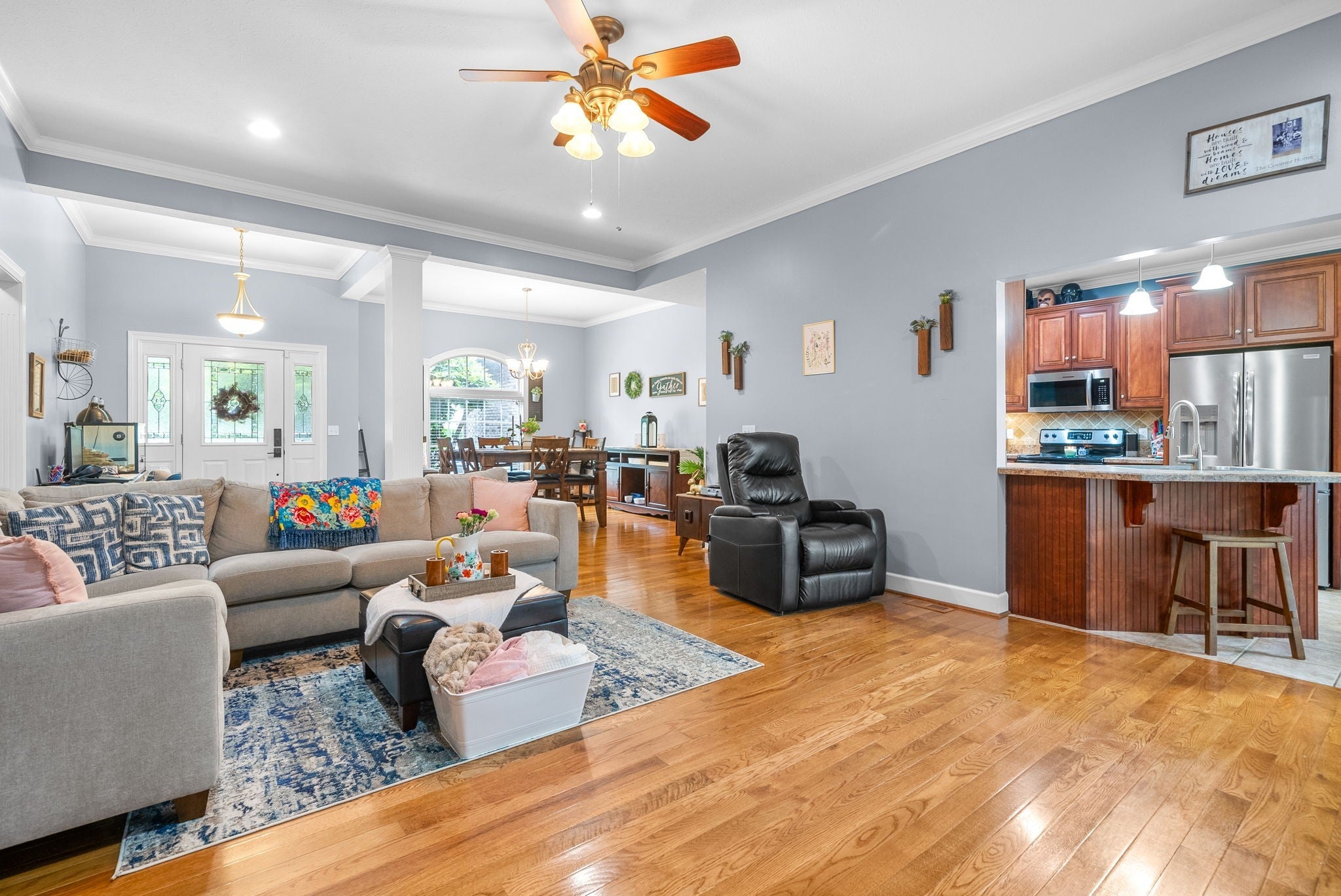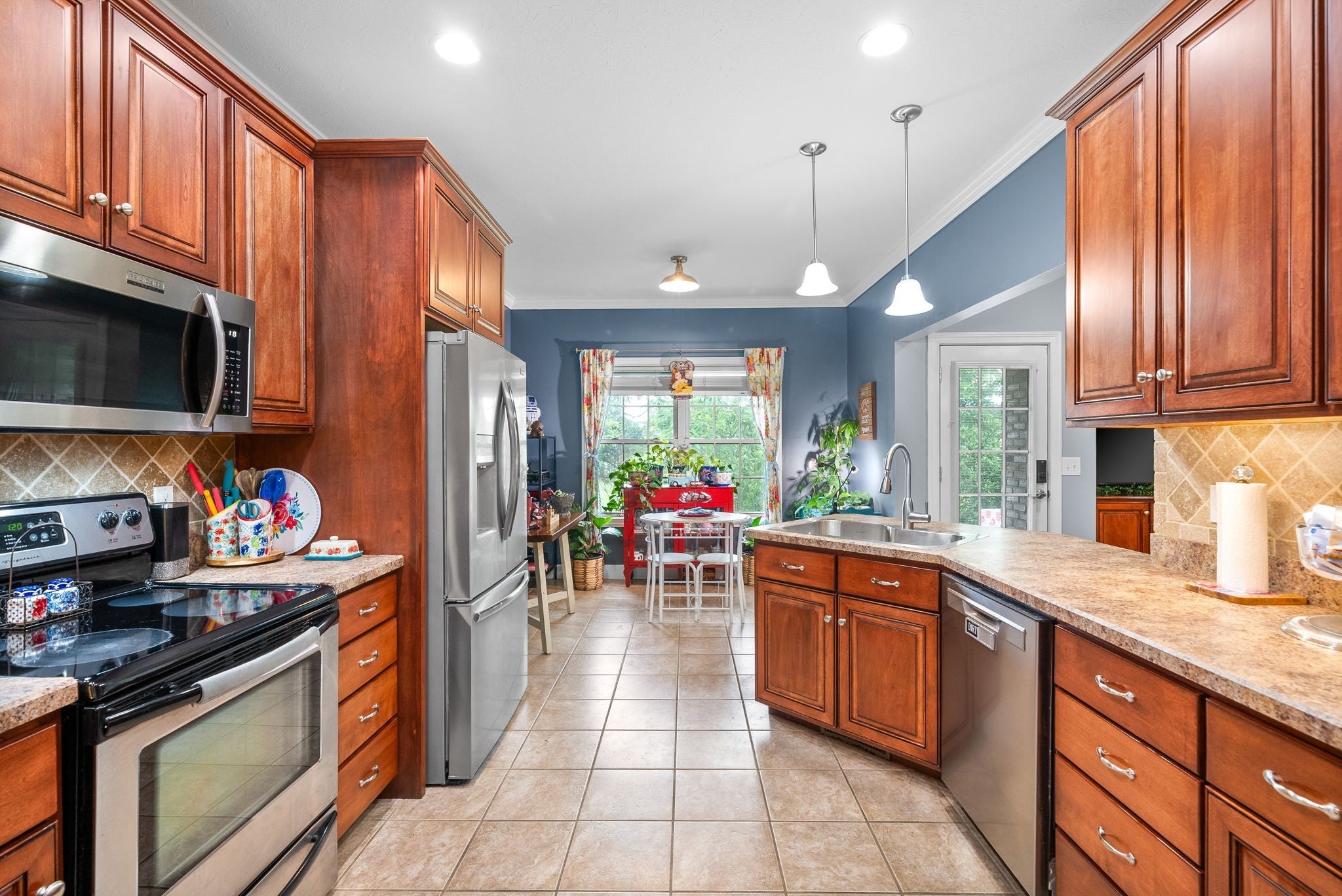- Built-In Electric Oven, Dishwasher, Disposal, Microwave, Refrigerator, Stainless Steel Appliance(s)