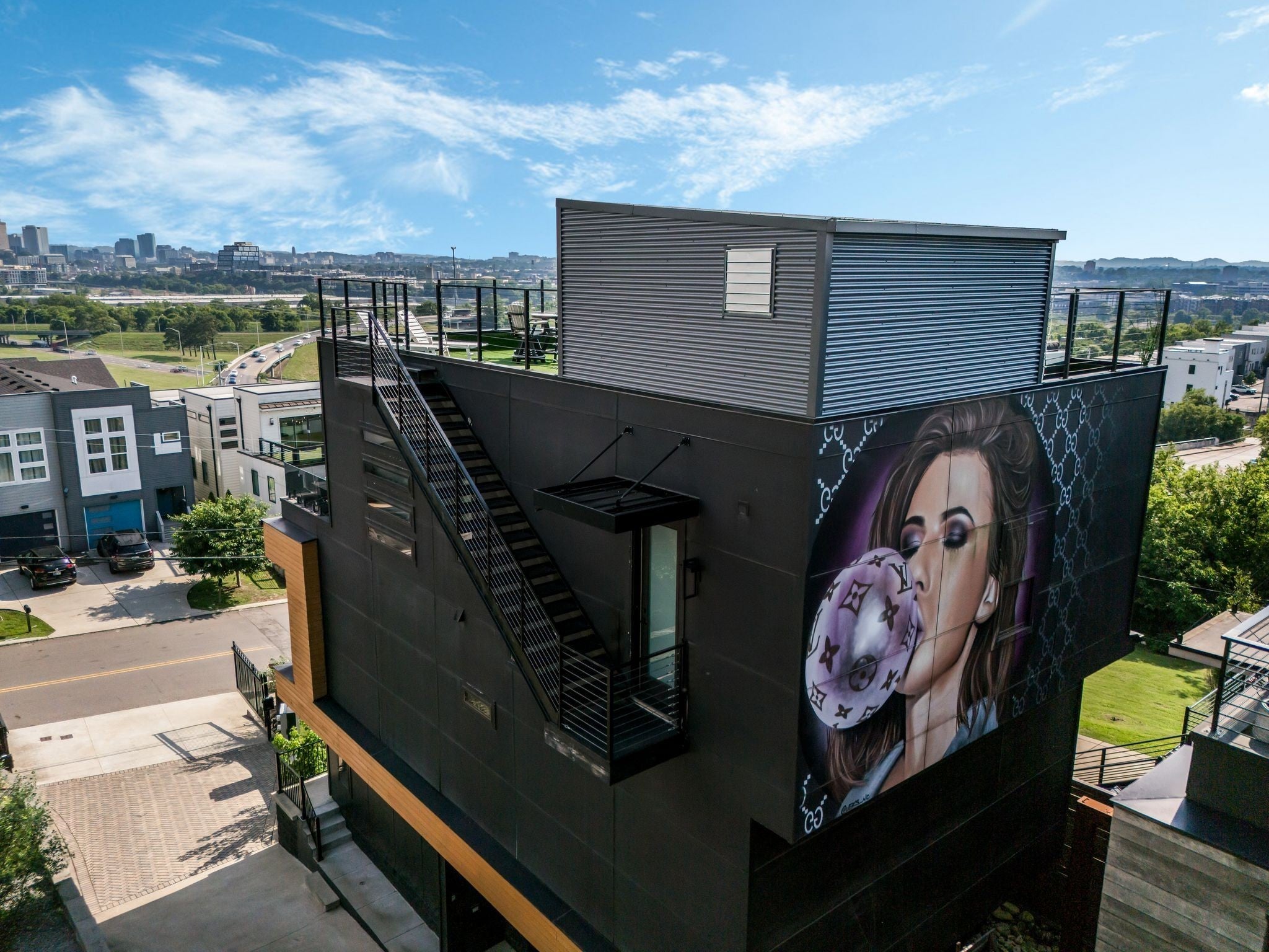 This one will not disappoint! Don't miss an opportunity to own one of Nashville's most beautiful & unique investment property / short term rental / non owner occupied / NOO STR / non owner occupied / Airbnb w/ a 5 Star review! This property was featured on THE MCBEE DYNASTY TV Series! This gorgeous 4 level property comes fully furnished sleeps 12 comfortably, making for a great investment opportunity. This property greats you with a modern wall fountain feature on the front of the home. There are 4 designer bedrooms, 4.5 baths, 2 levels with laundry facilities, gas fireplace, stunning kitchen w/ stainless appliances, a gas stove, & a 2-car garage w/ additional storage, sink & fridge! In the master suite, don't miss the unobstructed view of the Nashville skyline, a fantastic balcony, a massive 5 shower head shower & a custom built in closet. A rooftop lounge was recently added to give you & your guests the total Nashville experience with breathtaking views. Just minutes to Broadway to enjoy the Nashville Night Life for fantastic food & entertainment! Property is an active Airbnb. See media section for virtual walk through! Home was freshly painted! A MUST SEE!