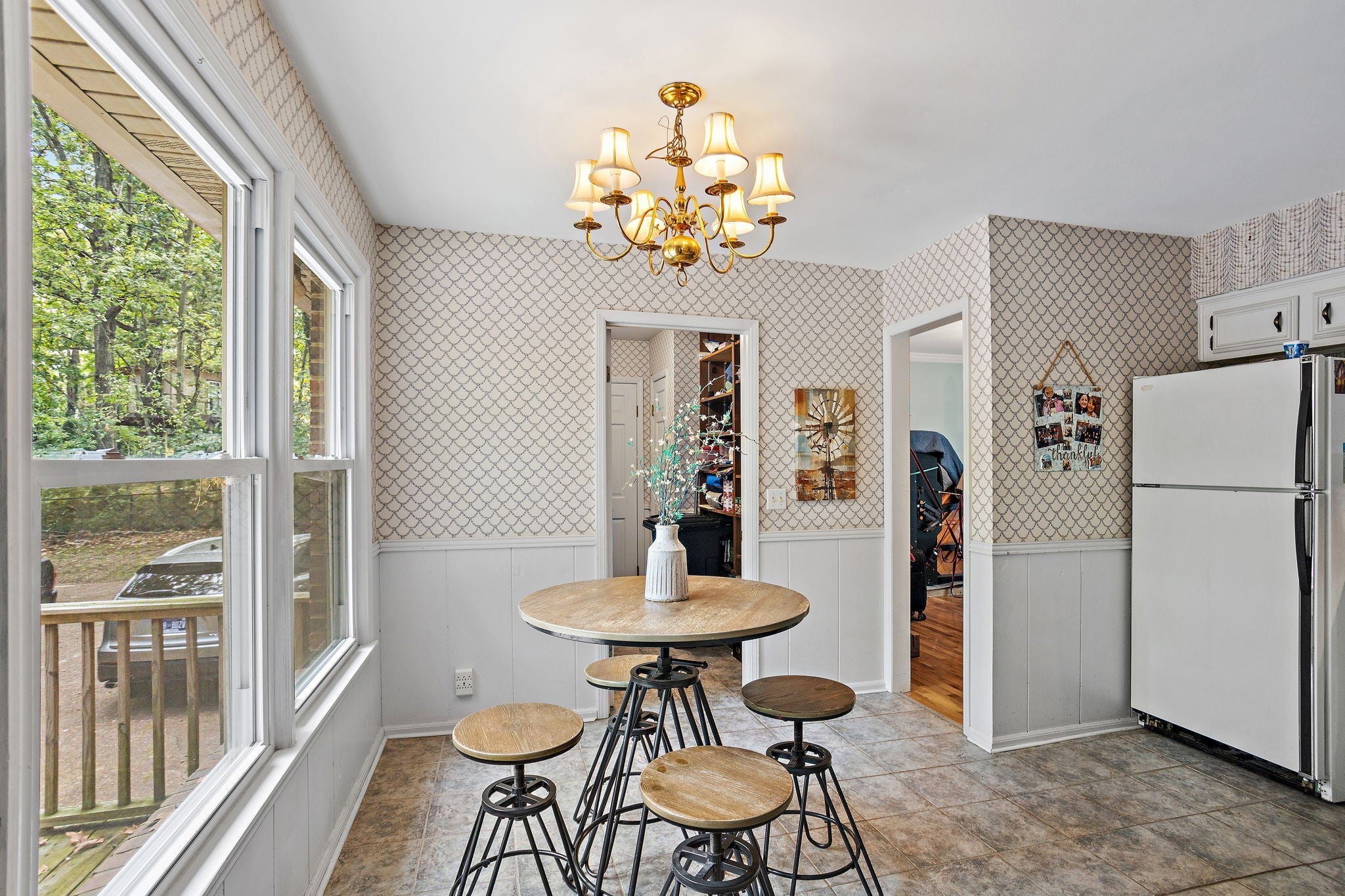 Enjoy this spacious home on a beautiful 1 acre mature treed lot. Oversized back deck for quiet evenings or watch the wildlife in the trees. Rocking chair front porch is perfect for book reading or conversations among friends. Easy to clean, hardwood floors throughout the main level and upstairs bedrooms. Well designed kitchen with oversized window overlooking the private backyard Primary bedroom on main level with secondary bedrooms upstairs. Washer/Dryer stays as a convenience. Rent will adjust on number of adults in house due to shared utilities. Landlord stays occasionally in the basement apartment.