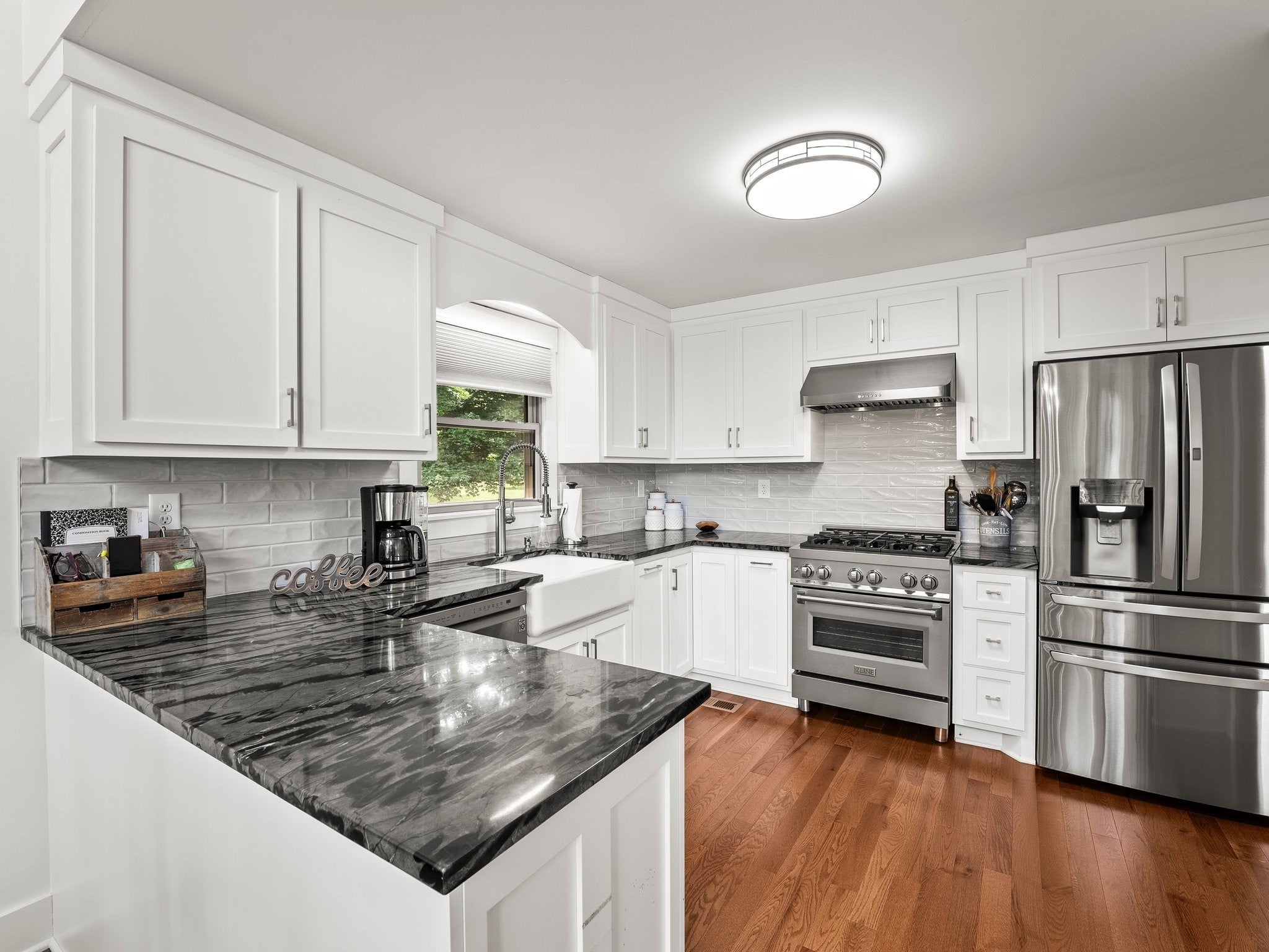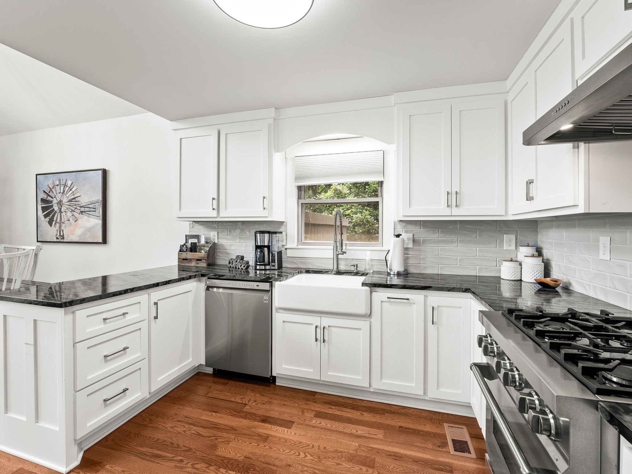 - Gas Oven, Gas Range, Dishwasher, Dryer, Refrigerator, Stainless Steel Appliance(s), Washer