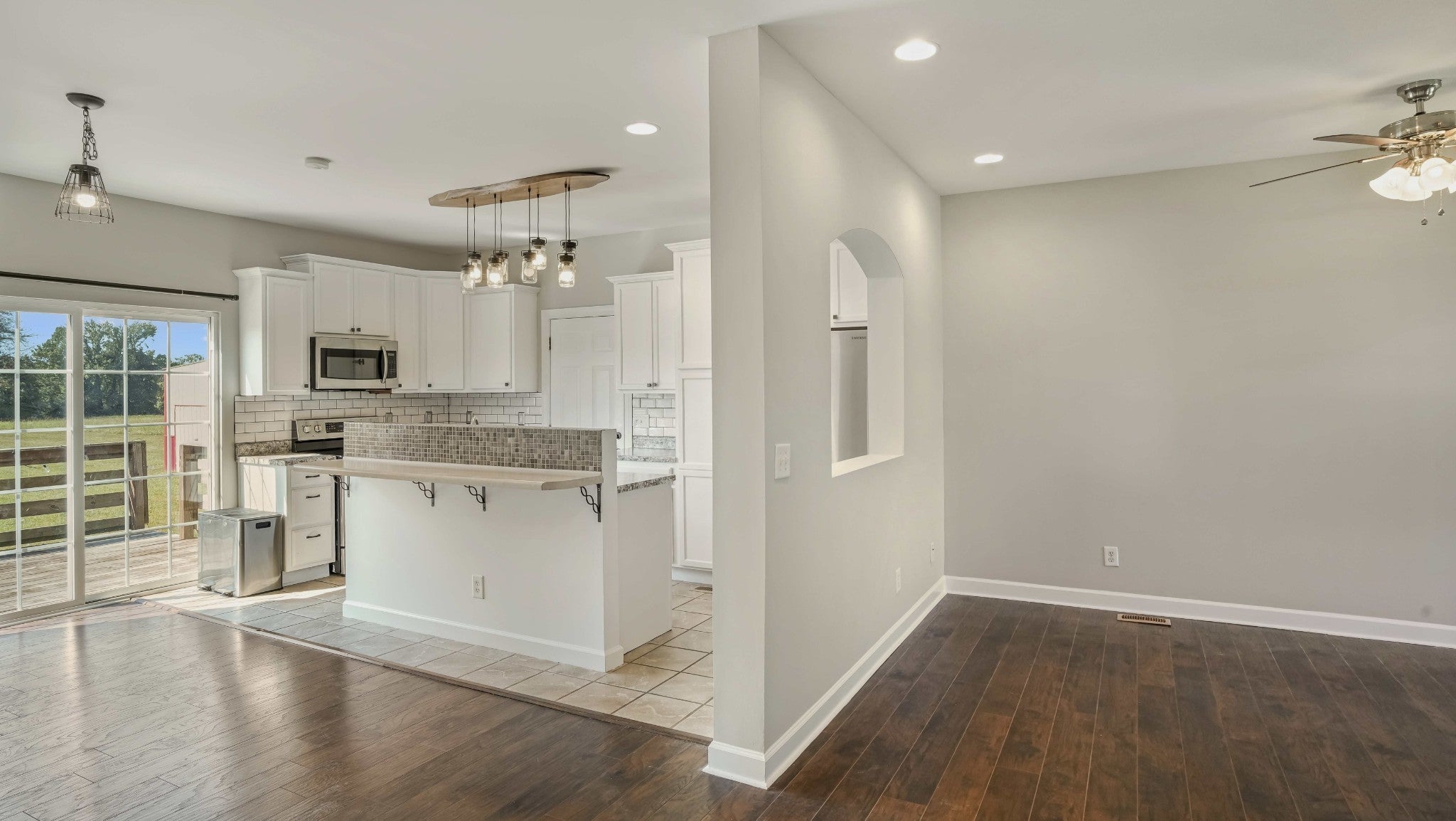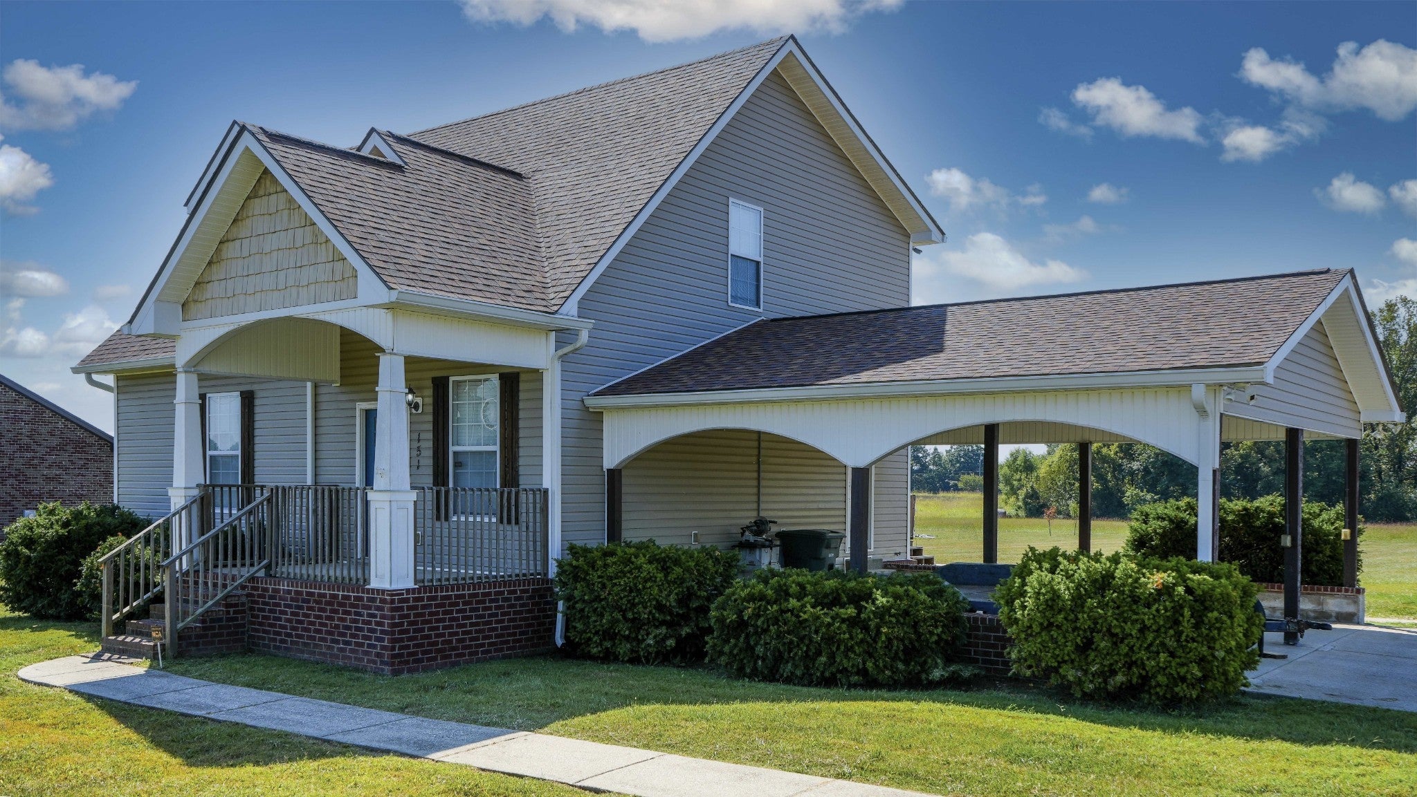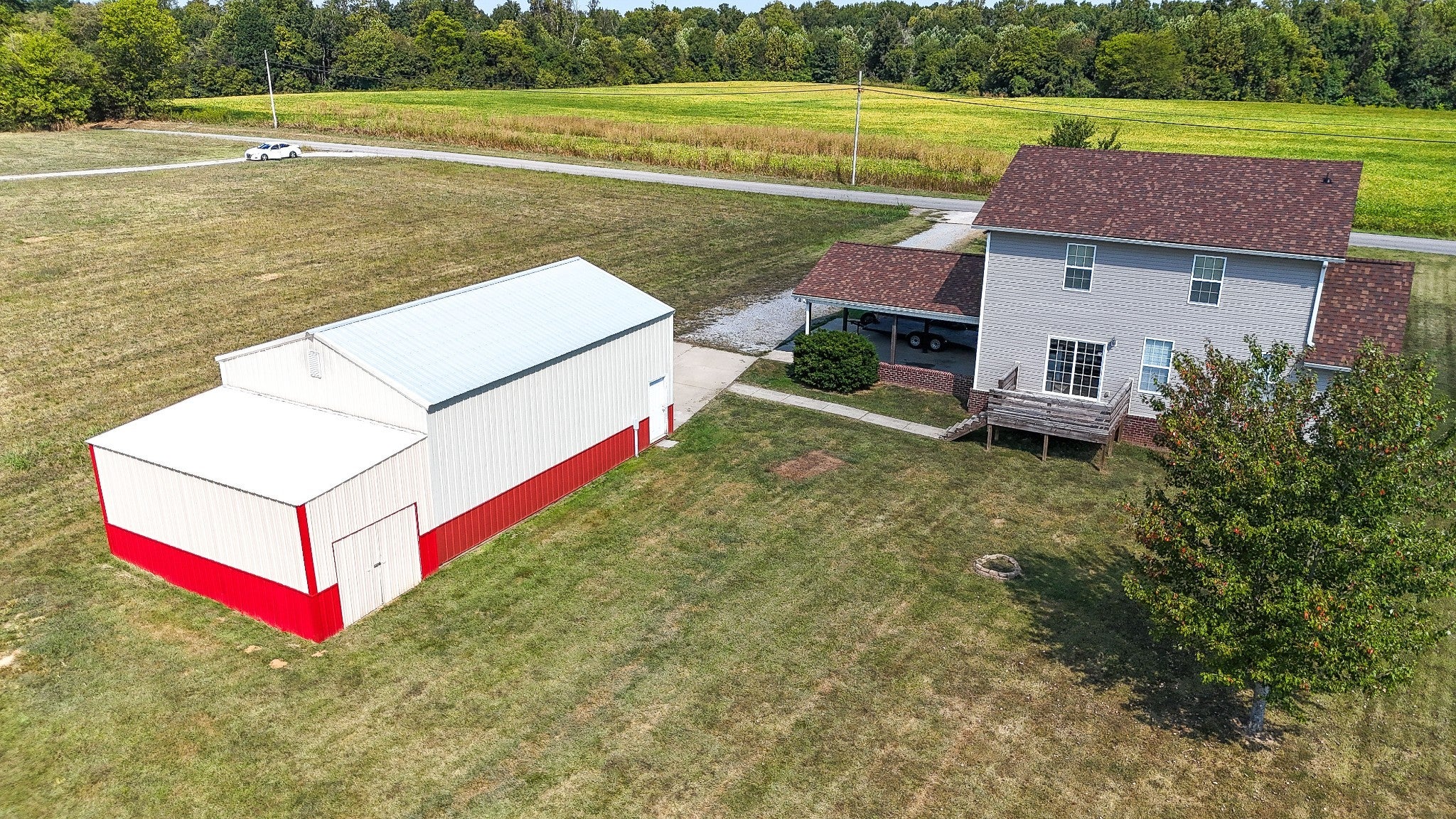 Welcome to your future home nestled on 1.96 serene acres- a perfect blend of convenience, community, and countryside... breathe deeply and live freely... this home offers the perfect blend of modern style and country living. A covered porch with stylish arches andclassic white painted columns invites you inside, where the open floorplan feels warm and welcoming. The kitchen is bright and modern with farmhouse style. The large glass door to wide open spaces and natural surroundings of the acreage beckon you to relax and dream.The first floor master bedroom and bath feature dual walk-in closets, ensuite and custom tile shower. The upstairs bonus room provides a lovely versatile space for home office or second living area. On the upper floor are two oversized bedrooms and smartly thought out jack/Jill style bathroom. A graceful carport repeats the classic lines of the front entry arches and columns while the large detached pole barn adds versatility ideal for hobbies, workshop or even horses, mini Highland cows or chickens! Air compressor in detached 35x24 pole barn/garage remains.