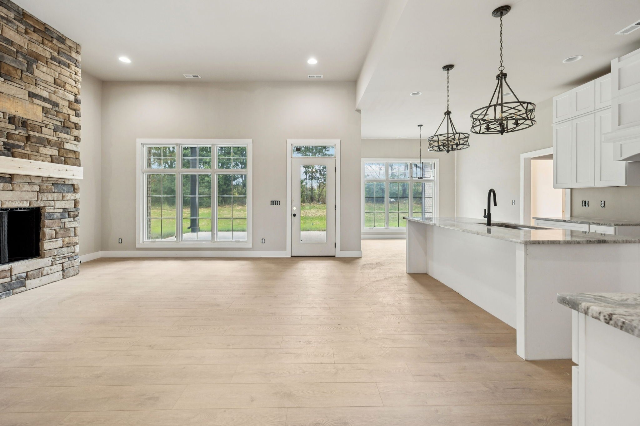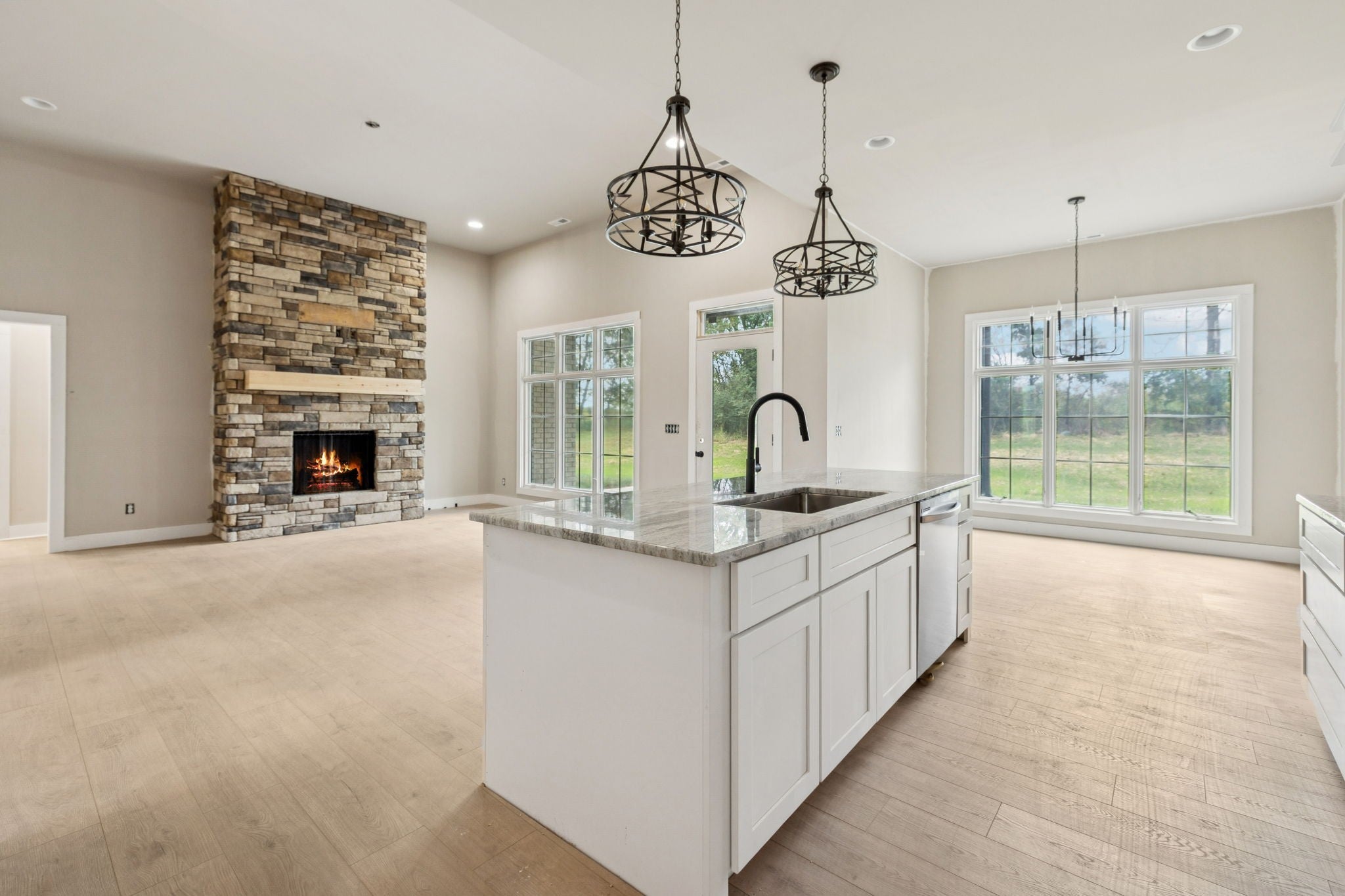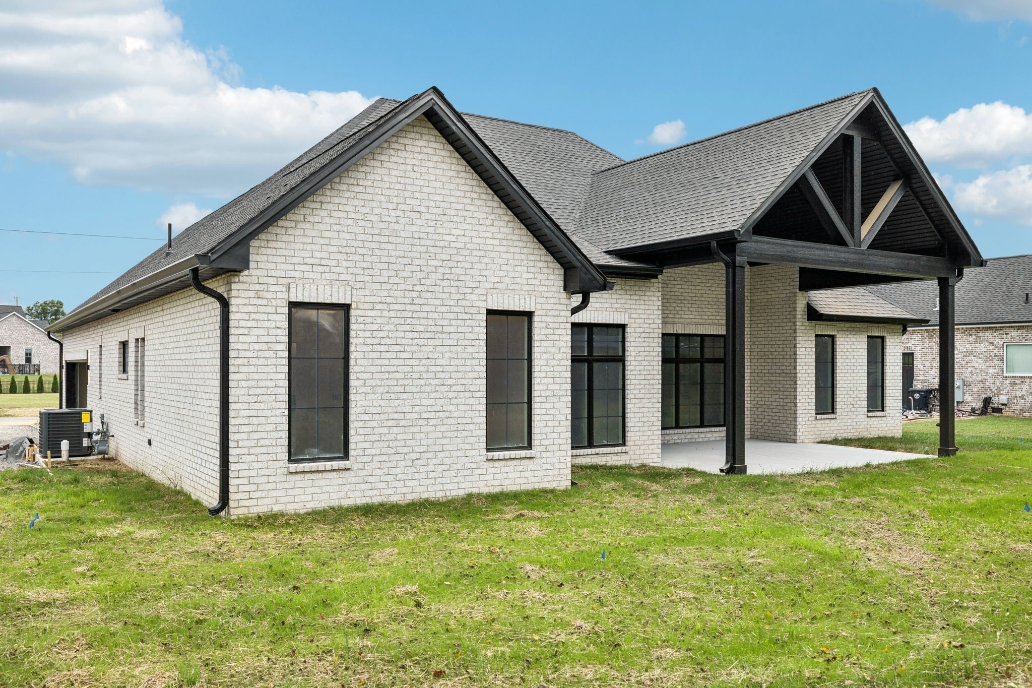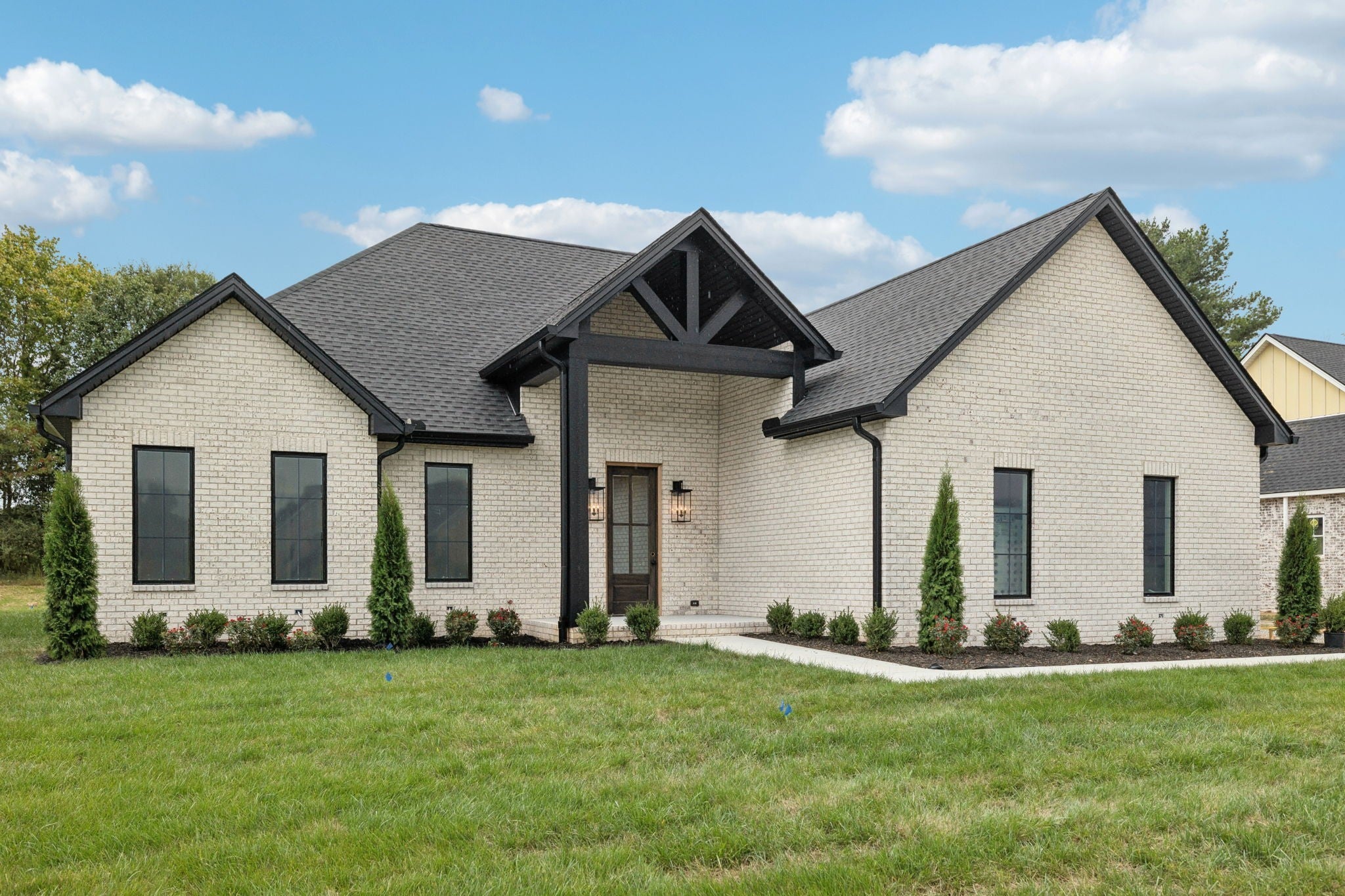 Welcome Home to Timeless Craftsmanship & Everyday Luxury! This all-brick new construction home was built for those who appreciate the details that make a house feel like home. From the moment you arrive, the rich brick exterior and striking black casement windows create an elegant first impression—inviting in the soft glow of fall light and offering a peek at what’s waiting inside. Step through the front door and into a space designed for gathering. The open-concept kitchen is the heart of the home—anchored by a beautiful, oversized island, perfect for family meals, coffee conversations, or holiday baking. The custom-made vent hood, built-in microwave, and cabinetry with thoughtful storage blend style and function seamlessly, making this kitchen as practical as it is beautiful. The primary suite is a peaceful retreat with soaring cathedral ceilings and soft natural light. The ensuite bath feels like a private spa, featuring a custom tile shower, freestanding soaking tub, and finishes that balance modern luxury with timeless design. With four spacious bedrooms, there’s room for everyone to unwind, create, and grow. Whether it’s cozy mornings with a view through those statement windows or crisp evenings spent enjoying the changing seasons, this home was made to be lived in beautifully. A blend of craftsmanship, comfort, and everyday elegance—this is where lasting memories begin.