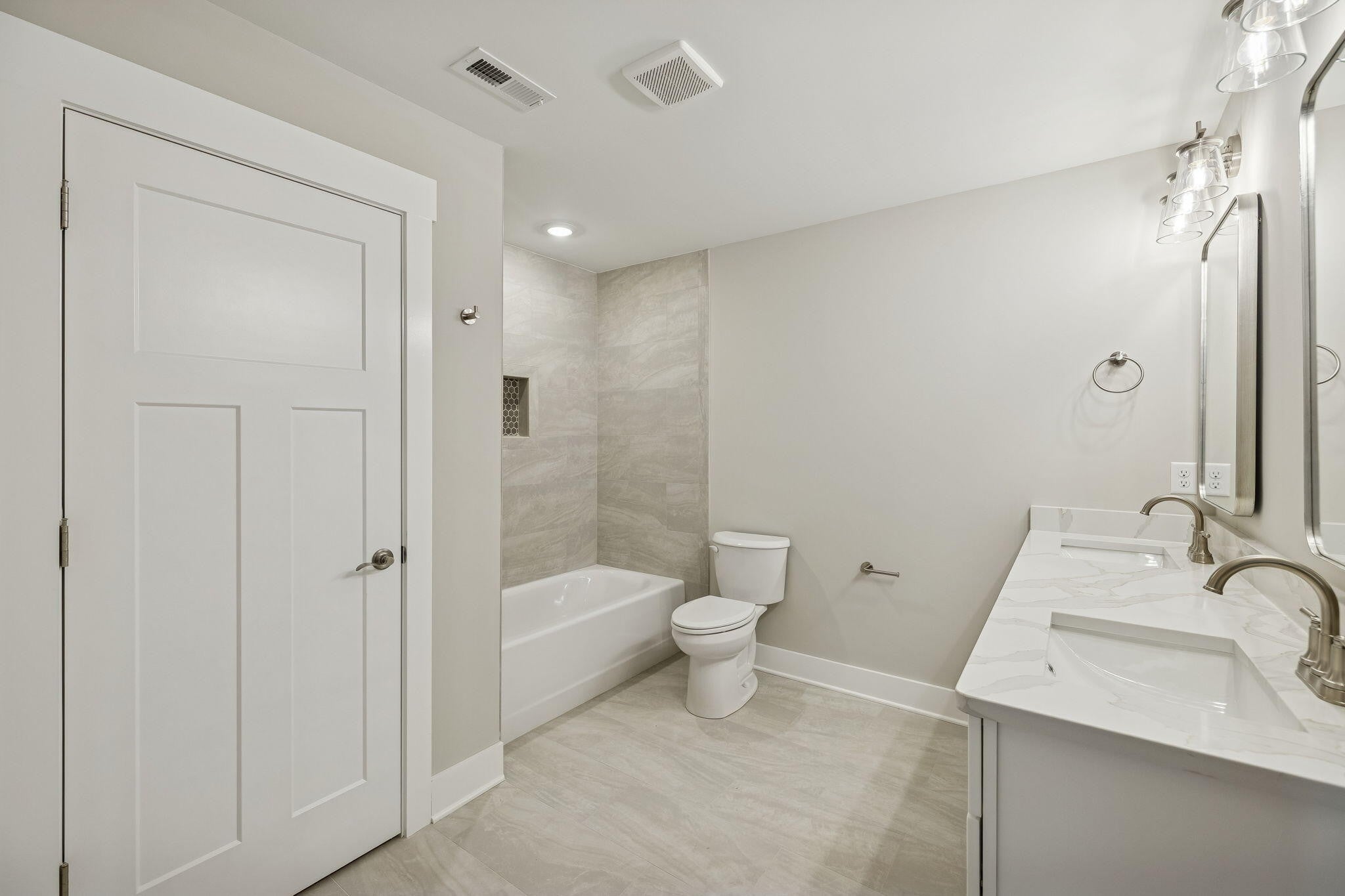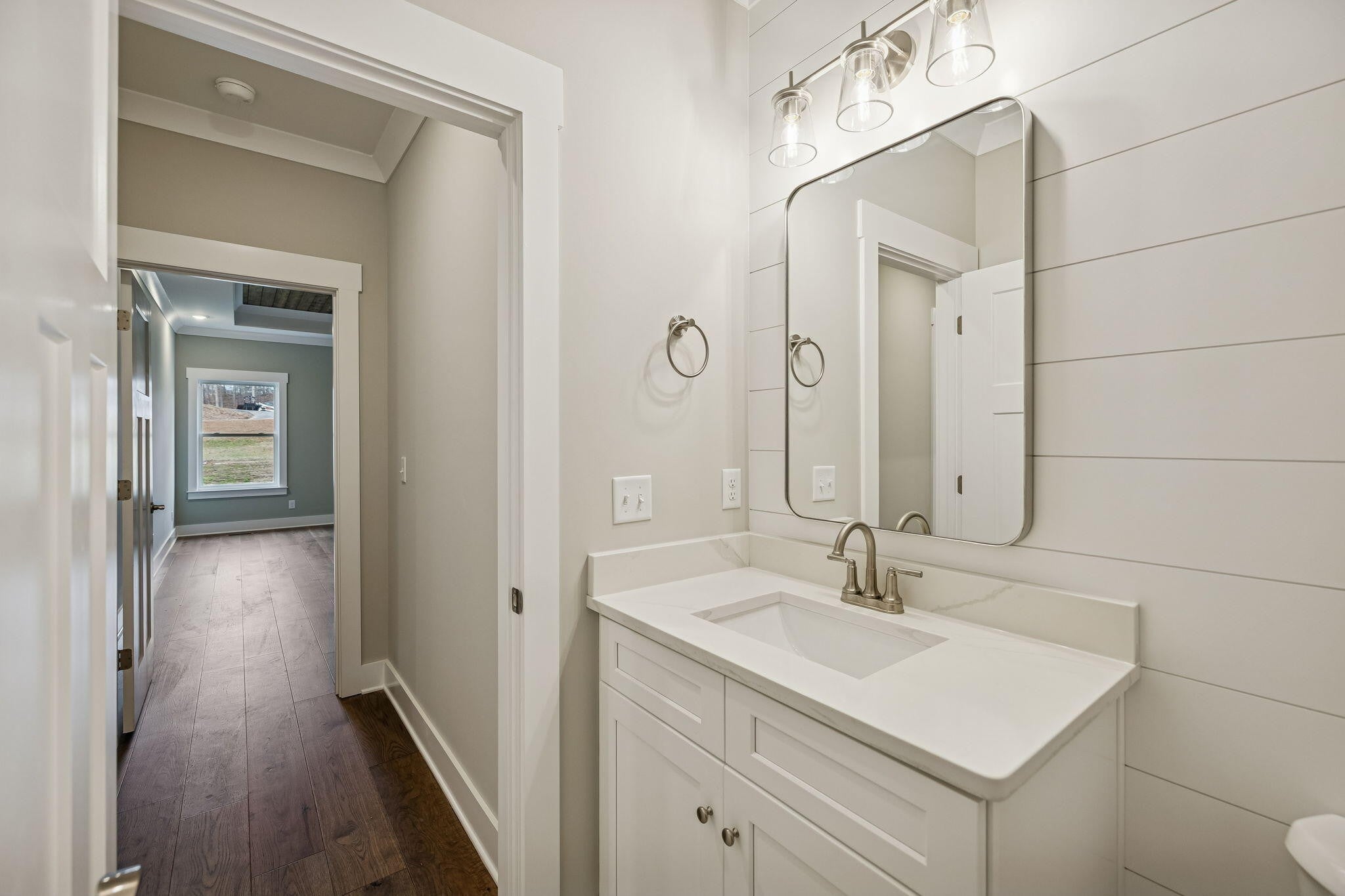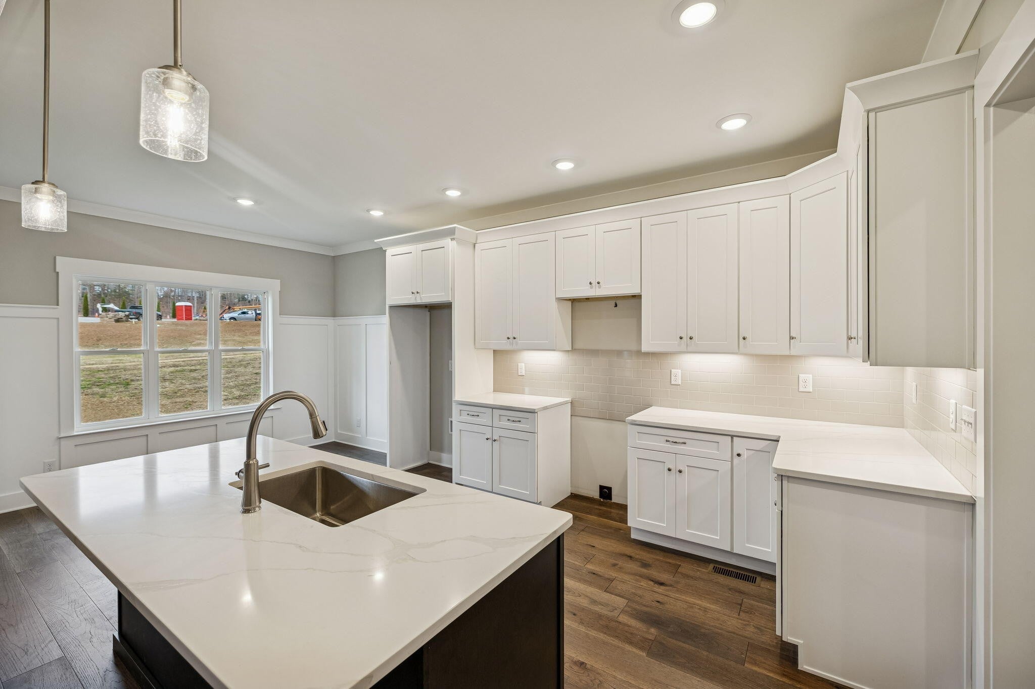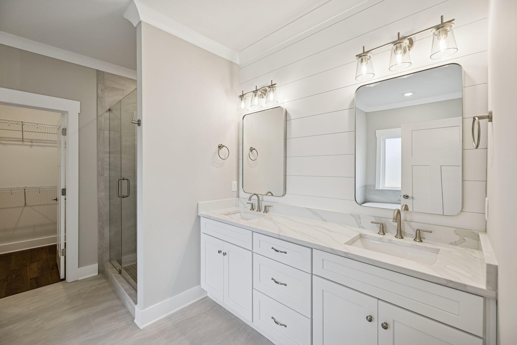 This New Construction home sits inside the City of Cleveland's Brand New Premier Subdivision of Northside. A thoughtful design that integrates the sidewalks, landscaping, pond and walking trail. This new community is thriving full of amenity rich options with lifestyle focused living experiences custom designed to encourage connection and enjoyment. The heart of social activities is lounging around the swimming pool, an engaging playground, top-notch basketball and pickleball courts, workout area, with additional amenities planned. Offering large versatile gathering areas and kitchen. Plus expansion space for convenient storage units. Northside is creating a strong sense of belonging, making it an ideal place to enjoy life. No Place Like It! This thoughtfully planned home is built by a Local Custom Builder with decades of experience offering an extensive stone and brick exterior that is the perfect blend of urban sophistication designed to live with you. Inside you will find many upgrades for one price throughout: Versatile entryway bench that provides seating and storage as the designated landing zone, quartz countertops, custom stained wood tongue and groove ceilings, generous custom molding and trim, popular board n batten and shiplap accents of woodwork, extensive recessed lighting, modern color choices, fixtures, ceramic tile, remote lights and hardwood flooring. *Zero carpeting on the main level* Convenience is the theme of this home including the main level laundry room with upper storage cabinets and half bath for guests. The open kitchen gives an island, breakfast space, tile backsplash, under cabinet lighting, stainless steel built-in appliances and cabinet storage creating a highly efficient workflow that is easy for entertaining. Separate dining room and designated pantry is right off the kitchen. High vaulted ceiling in the living room with shiplap fireplace and custom stained wood mantle to decorate.