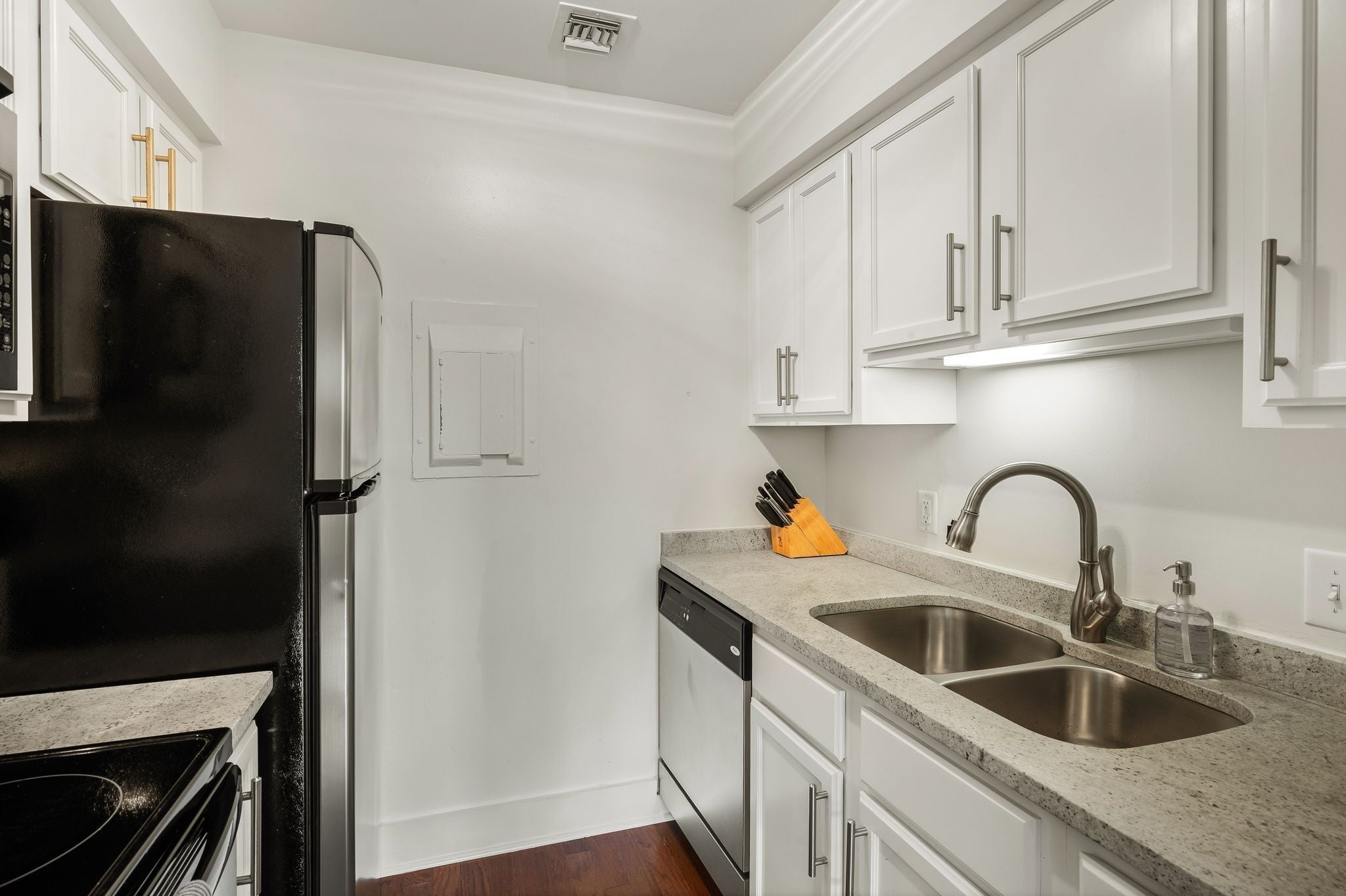 - Electric Oven, Cooktop, Dishwasher, Disposal, Microwave, Refrigerator