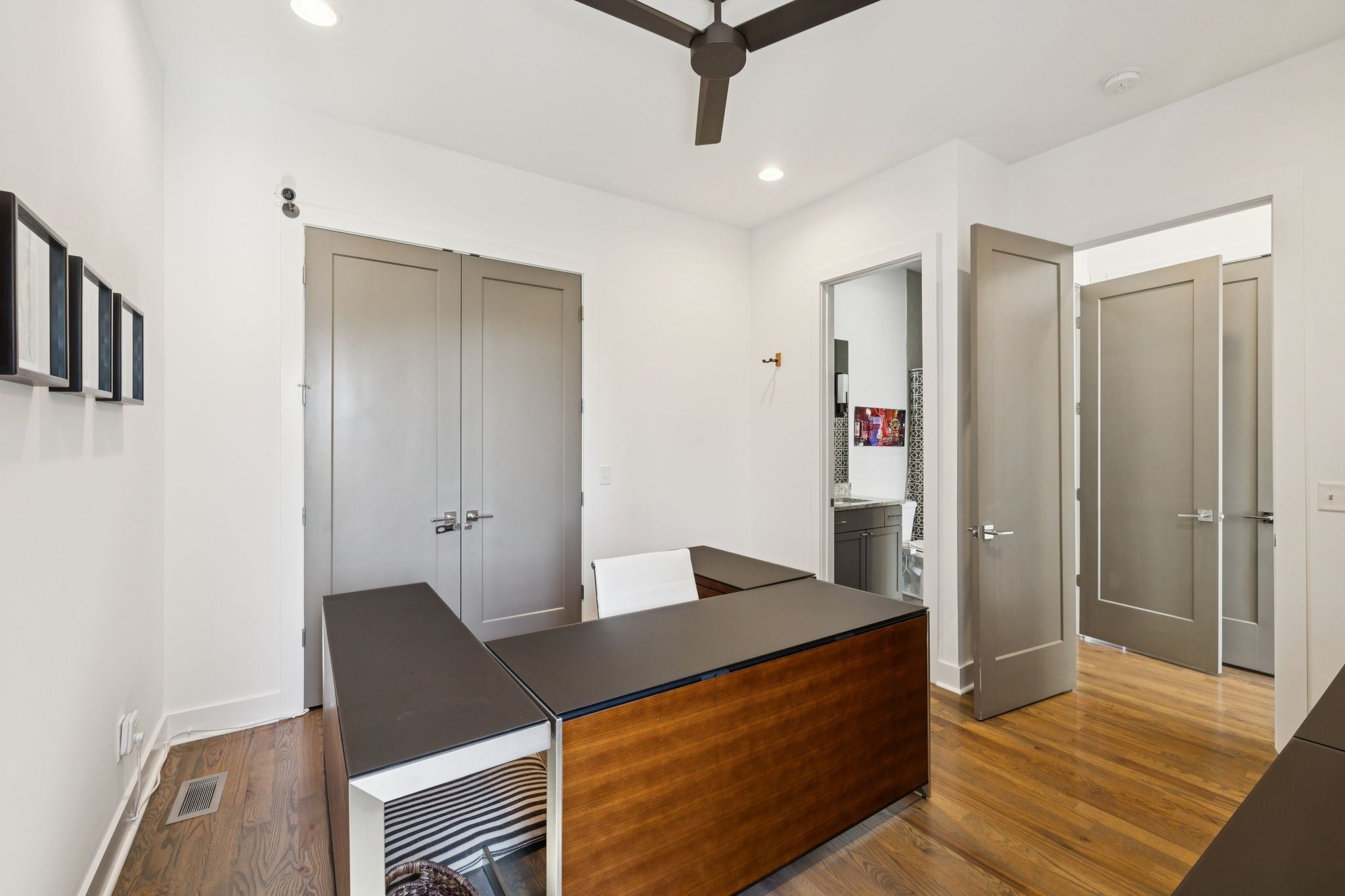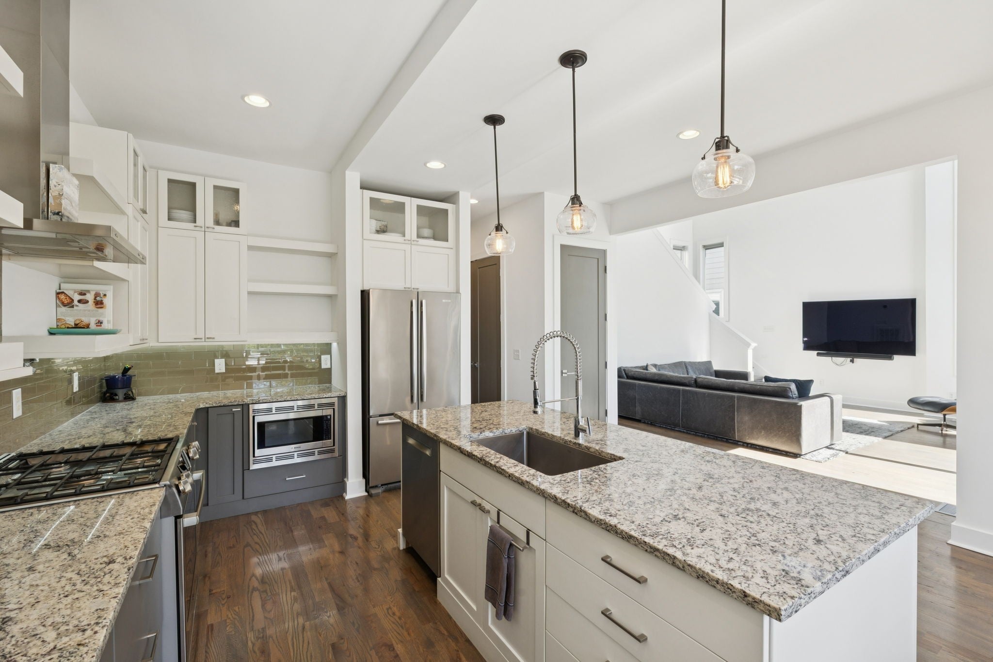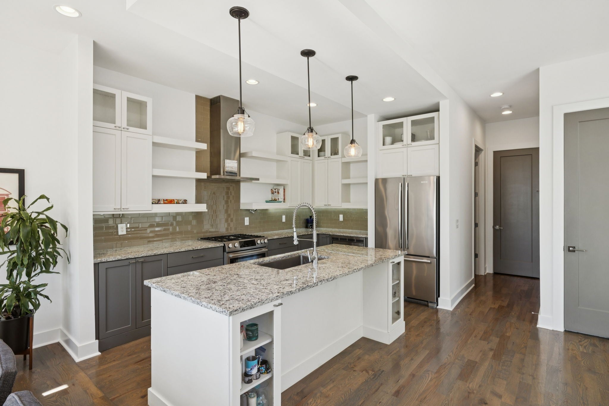 Potential VA loan assumption available at 2.625%. Ask for details! This striking, freshly painted home features soaring 25 ft. ceilings, a massive chef’s kitchen with marble and granite countertops, and beautiful hardwood floors. Enjoy multiple outdoor spaces, including a private balcony and a PRIVATE rooftop deck, both covered and uncovered. Plus, a convenient dog walk area. Oversized 2-car garage and unbeatable location just minutes from West End, OneC1TY, Vanderbilt, and downtown Nashville.