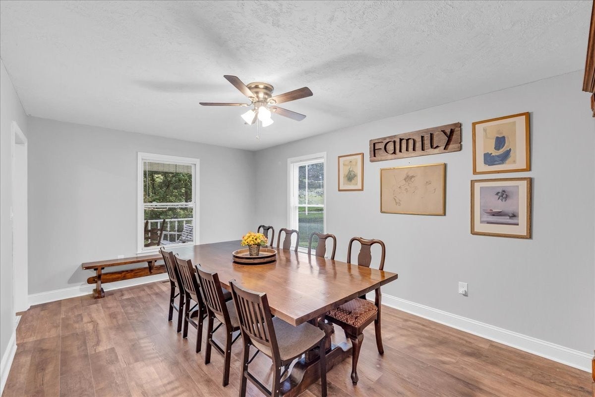 Discover peaceful country living at its finest with this beautiful 5-bedroom, 3-bath home nestled on 11.6 serene acres in Lynchburg, TN. Perfectly tucked away for privacy, this property offers the ideal blend of comfort, charm, and natural beauty. Step inside to find Laminate floors flowing throughout the main living areas and a spacious, open layout perfect for family living or entertaining. The inviting living room features a stunning stacked-stone wood-burning fireplace, creating a cozy centerpiece for gatherings. A large formal dining room provides plenty of space for hosting holidays or special dinners. The home offers two bedrooms conveniently located on the main level, with additional bedrooms upstairs providing flexibility for guests, office space, or hobbies. Outside, you’ll fall in love with the property’s natural setting—multiple fenced pastures ready for livestock, a year-round creek and spring, and abundant wildlife, including deer and turkey that frequently visit. Enjoy quiet mornings or relaxing evenings on the beautiful covered front porch overlooking your private landscape. This property is perfect for anyone seeking a secluded retreat with room to roam, just a short drive from historic Lynchburg. Come experience the peace, privacy, and natural beauty of 830 Bobo Hollow Rd—your Tennessee countryside escape awaits.