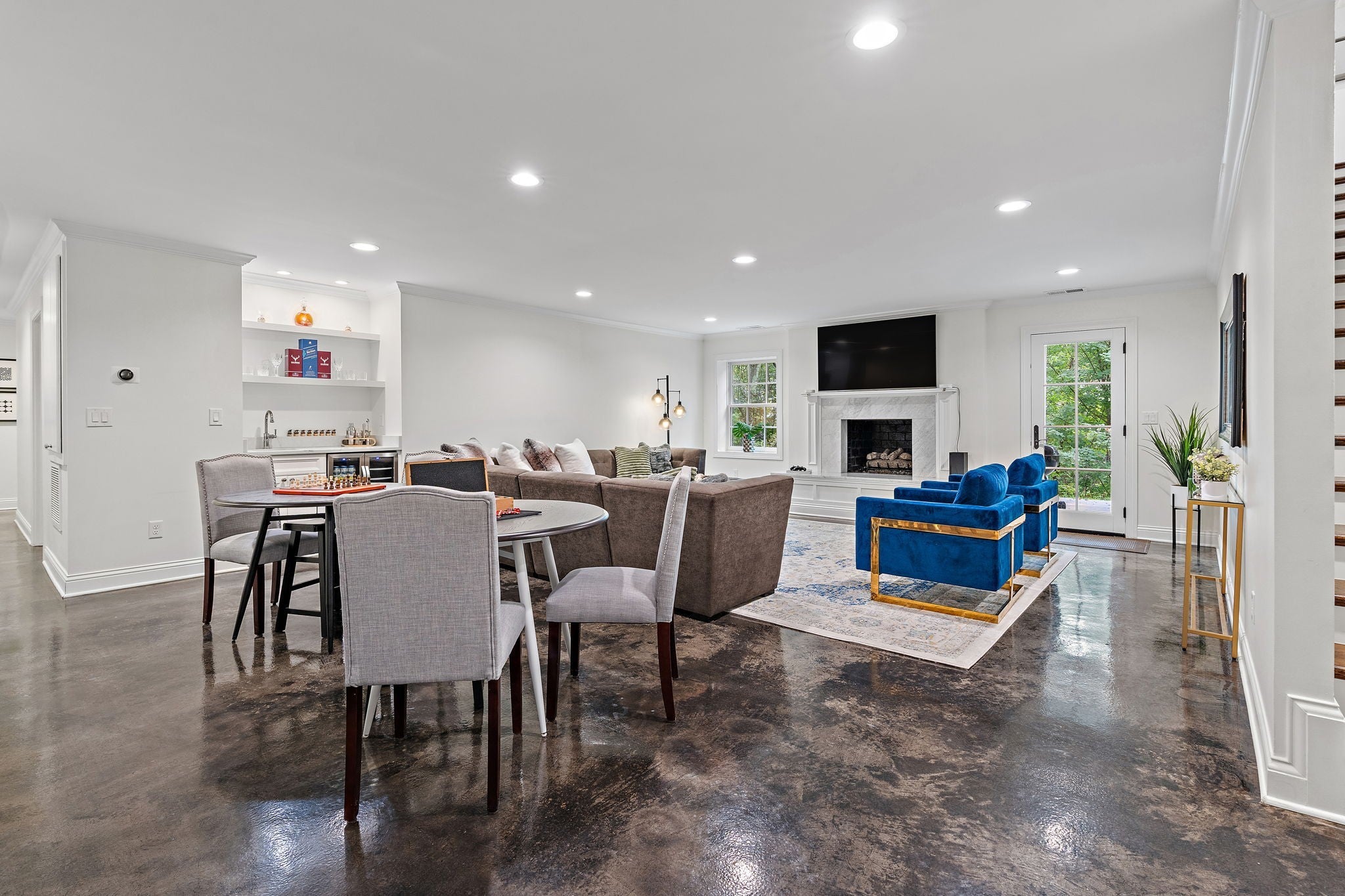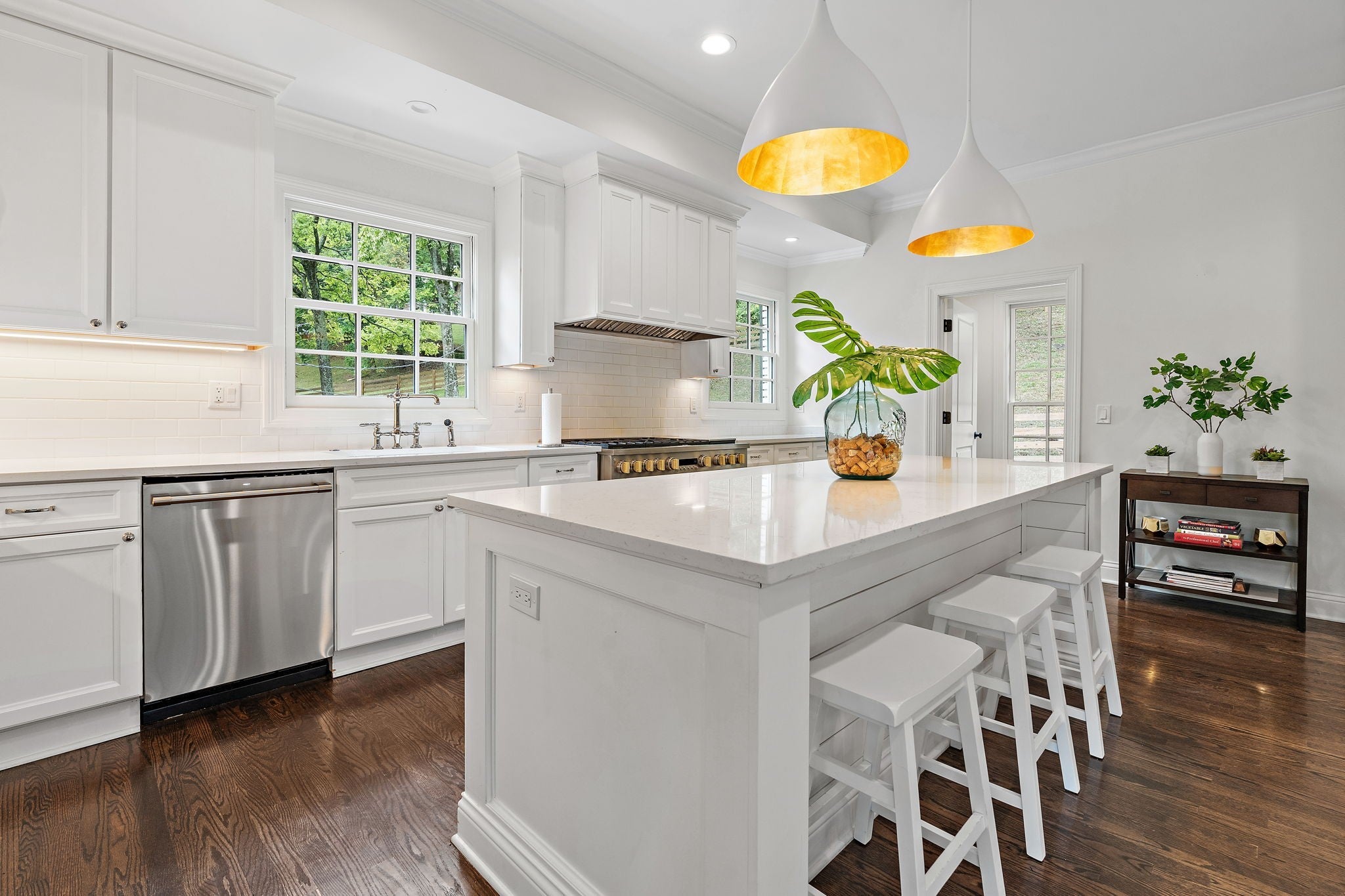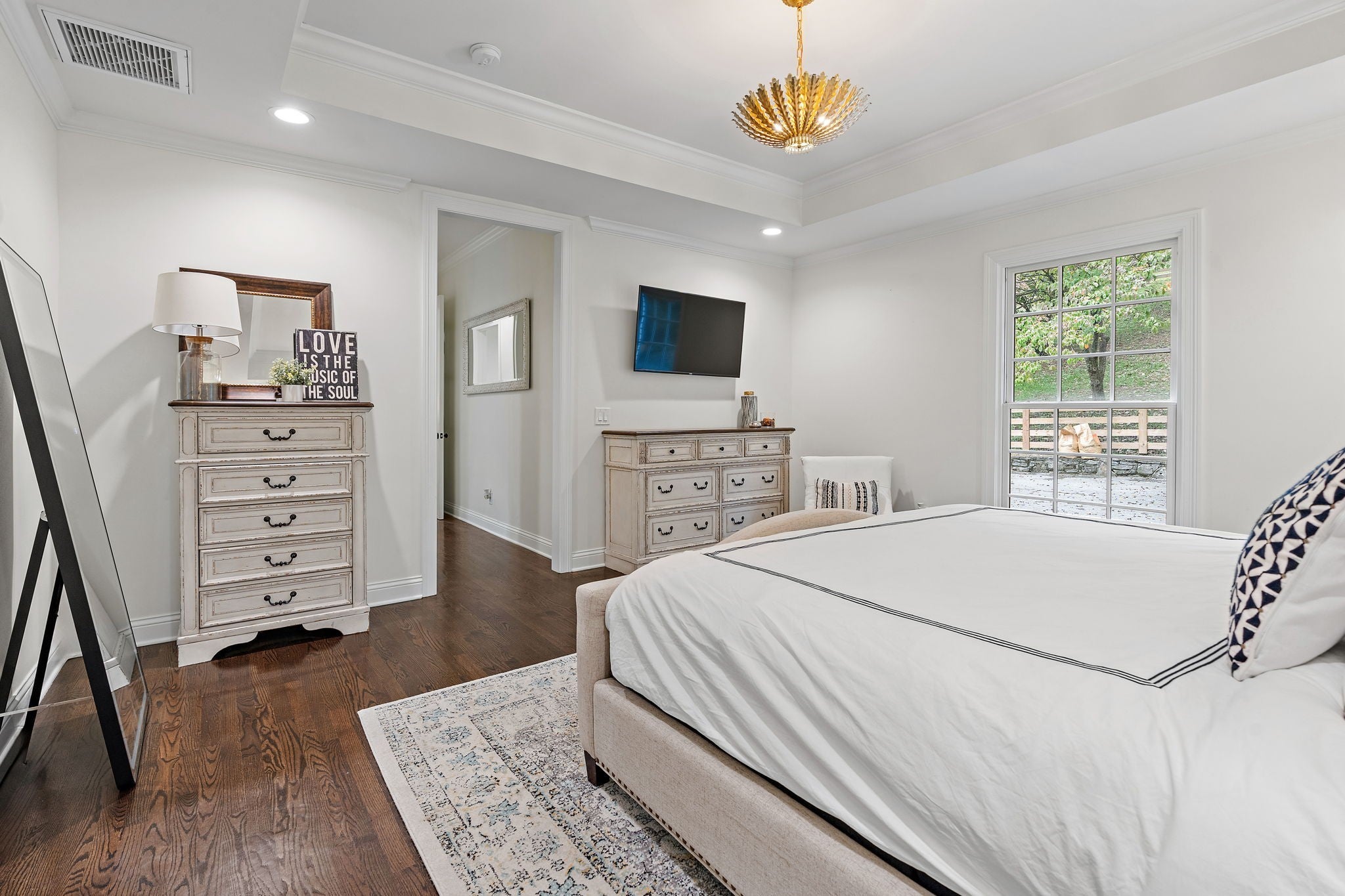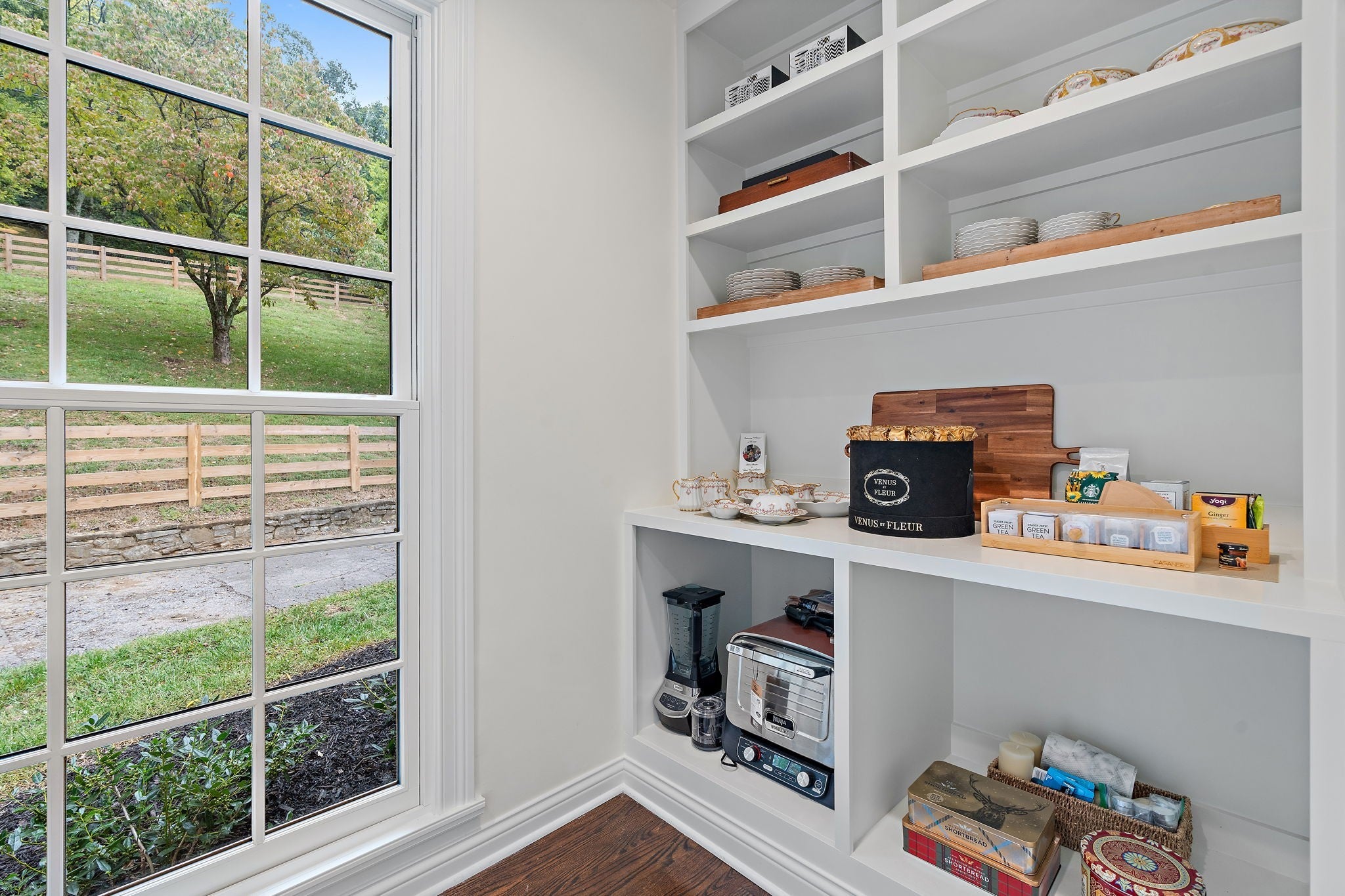 Set above the street on a private, wooded 1.1-acre rise, 5622 Hillview delivers estate privacy with true in-town convenience. Fully renovated and move-in ready, the home lives bright and open with sightlines to trees from every room. Main level features a generous primary suite, a guest bedroom, formal dining, a custom kitchen built for daily use and entertaining, and a large living room with fireplace. The lower level adds a second living room with fireplace and wet bar, two additional bedrooms and full baths, plus an office, ideal for guests or an in-law suite. Ten-foot ceilings on the main, wide-plank hardwoods, custom built-ins, and quality finishes throughout. Outside, the setting feels quiet and protected, with a fully fenced front lawn and mature canopy. Location puts you minutes to Brentwood’s Hill Center, Maryland Farms, schools, and daily amenities. Seclusion without the sacrifice, privacy without the commute.