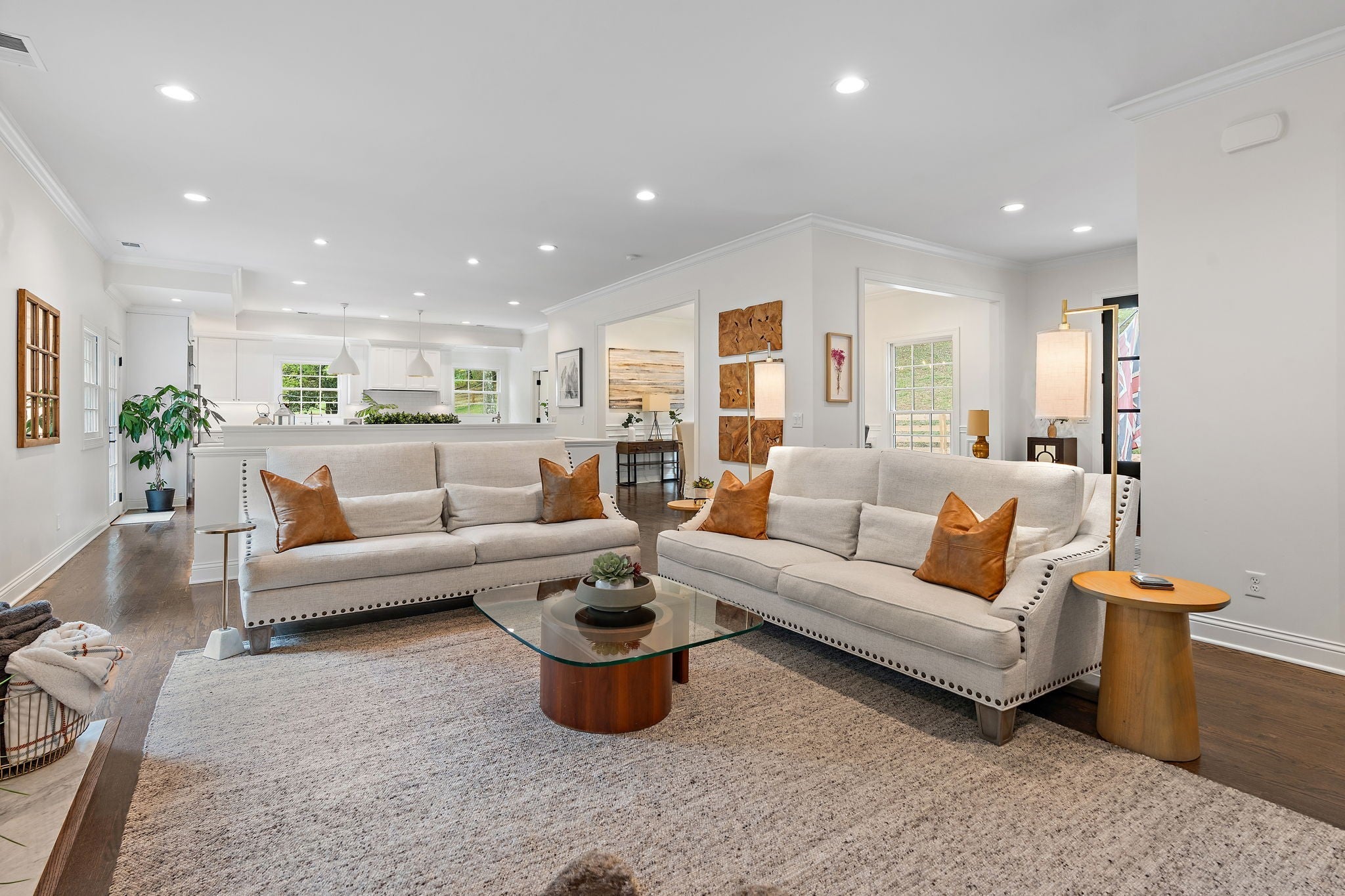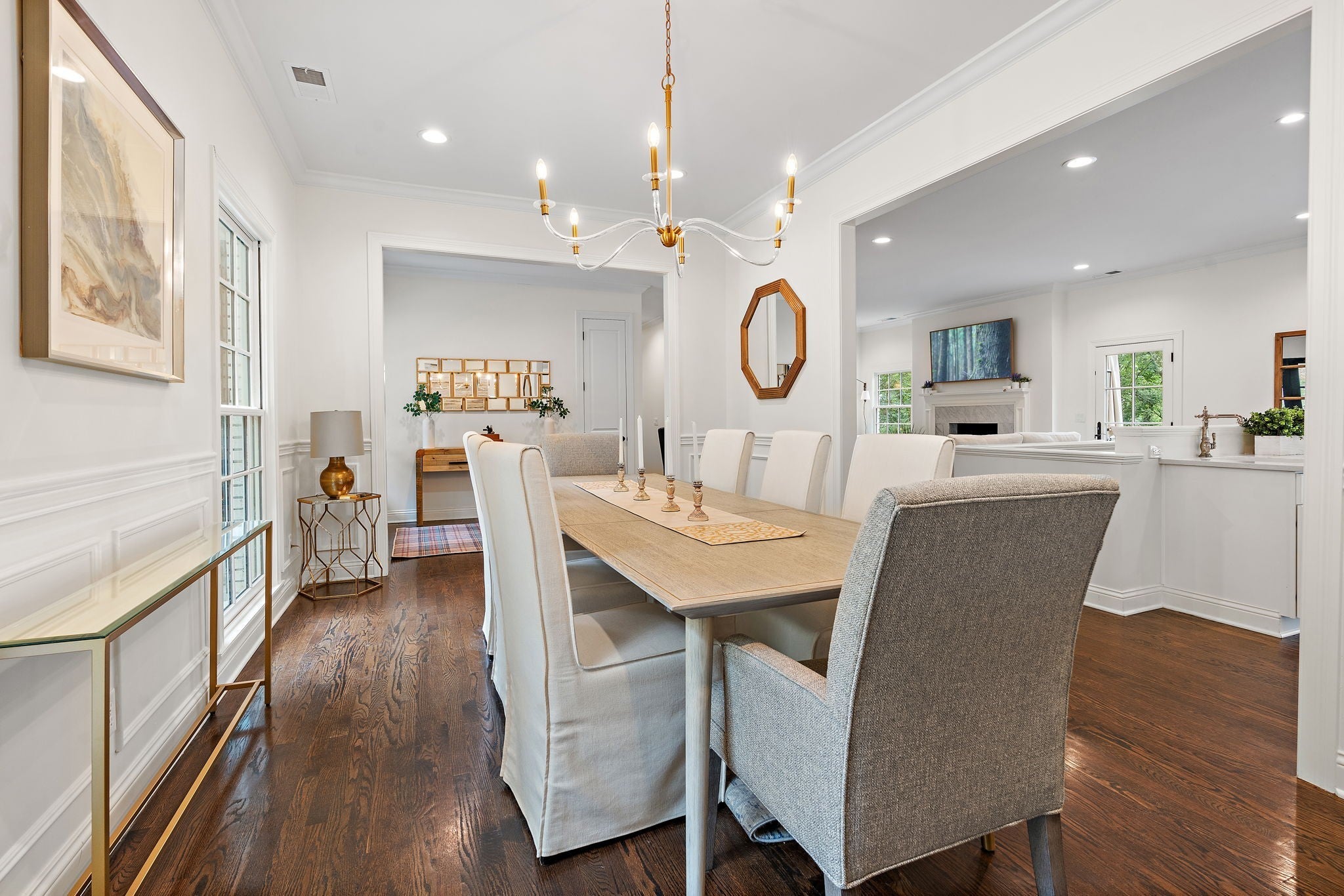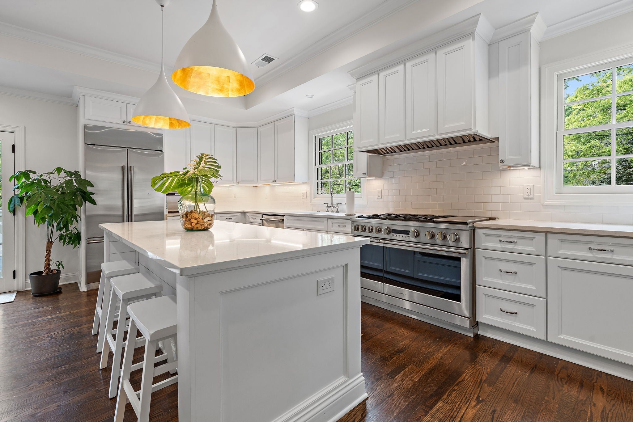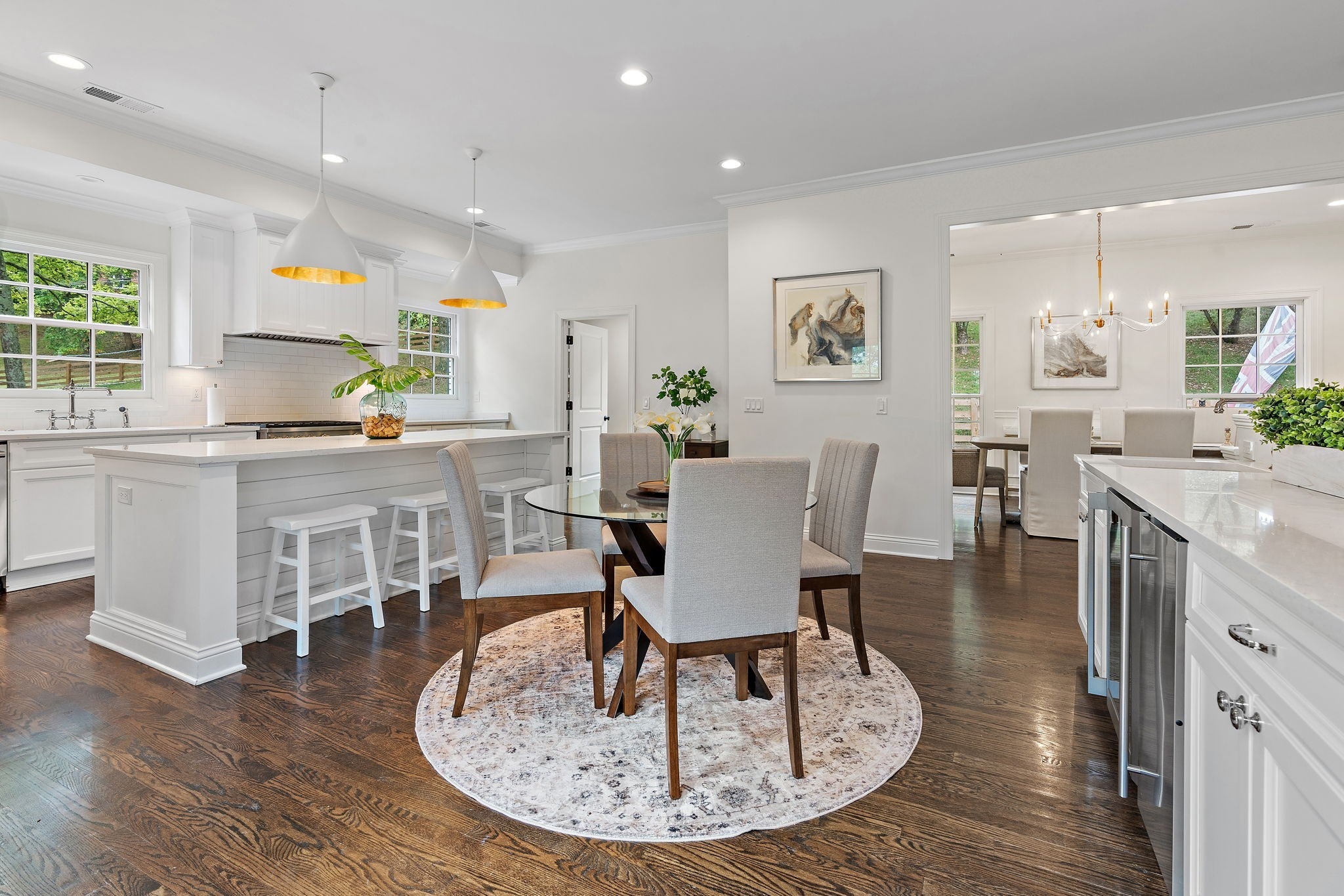 Set above the street on a private, wooded 1.1-acre rise, 5622 Hillview delivers estate privacy with true in-town convenience. Fully renovated and move-in ready, the home lives bright and open with sightlines to trees from every room. Main level features a generous primary suite, a guest bedroom, formal dining, a custom kitchen built for daily use and entertaining, and a large living room with fireplace. The lower level adds a second living room with fireplace and wet bar, two additional bedrooms and full baths, plus an office, ideal for guests or an in-law suite. Ten-foot ceilings on the main, wide-plank hardwoods, custom built-ins, and quality finishes throughout. Outside, the setting feels quiet and protected, with a fully fenced front lawn and mature canopy. Location puts you minutes to Brentwood’s Hill Center, Maryland Farms, schools, and daily amenities. Seclusion without the sacrifice, privacy without the commute.