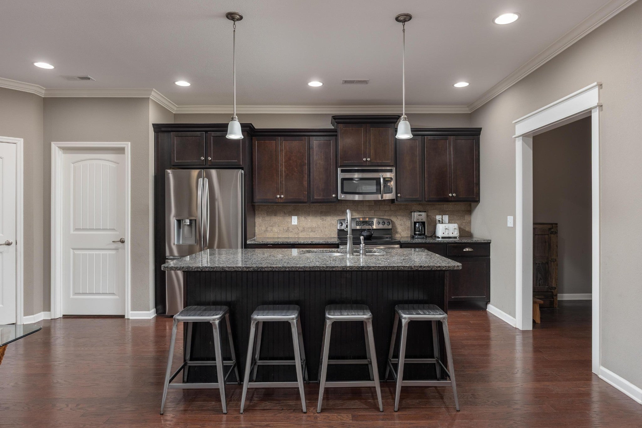 Welcome to your dream home. This spacious one-level home offers 3 bedrooms, 2 full baths, and a versatile office/flex room, perfect for working from home or your favorite hobby. Step inside to an open floorplan with 2,077 square feet of stylish living space. The inviting great room features a cozy gas fireplace and a large flat screen TV—yours to keep! The kitchen is a chef's delight with an island, pantry, sleek granite countertops, and stainless steel appliances—including a 1 yr old refrigerator. Enjoy the benefits of a split bedroom design with a generous owner's suite boasting a double vanity, tiled walk-in shower, and a walk-in closet. Additional highlights include a laundry room with shelving, hardwood and tile flooring throughout (that's right—no carpet!), and thoughtful finishes at every turn. Love the outdoors? You're just steps away from Candys Creek Greenway, ideal for morning jogs, evening strolls, or peaceful bike rides... and the newly built Jim Sharp park. Plus, you'll have quick access to I-75, making commuting a breeze. HOA fee covers the lawn care on front slope. Don't miss this rare gem in a prime location—schedule your private showing today!