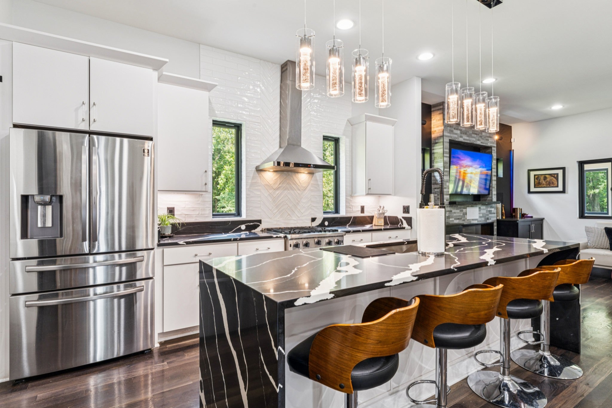 - Built-in Features, Ceiling Fan(s), Elevator, High Ceilings, Open Floorplan, Pantry, Smart Camera(s)/Recording, Smart Light(s), Smart Thermostat, Walk-In Closet(s), Wet Bar, Kitchen Island