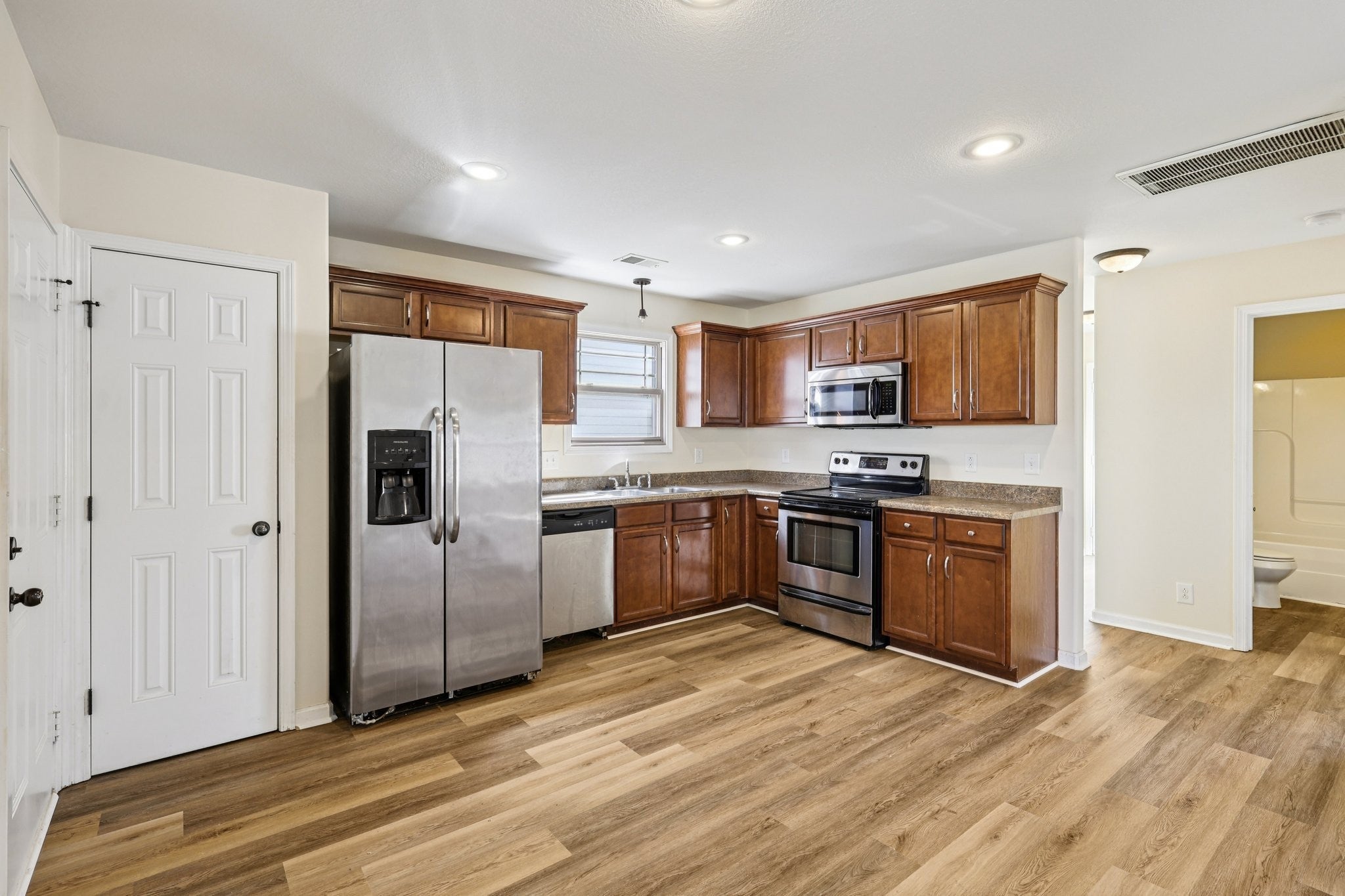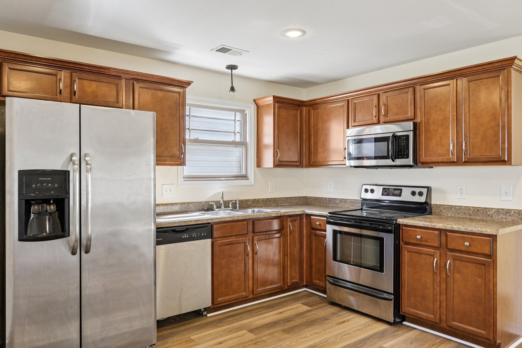 - Electric Range, Dishwasher, Microwave, Refrigerator
