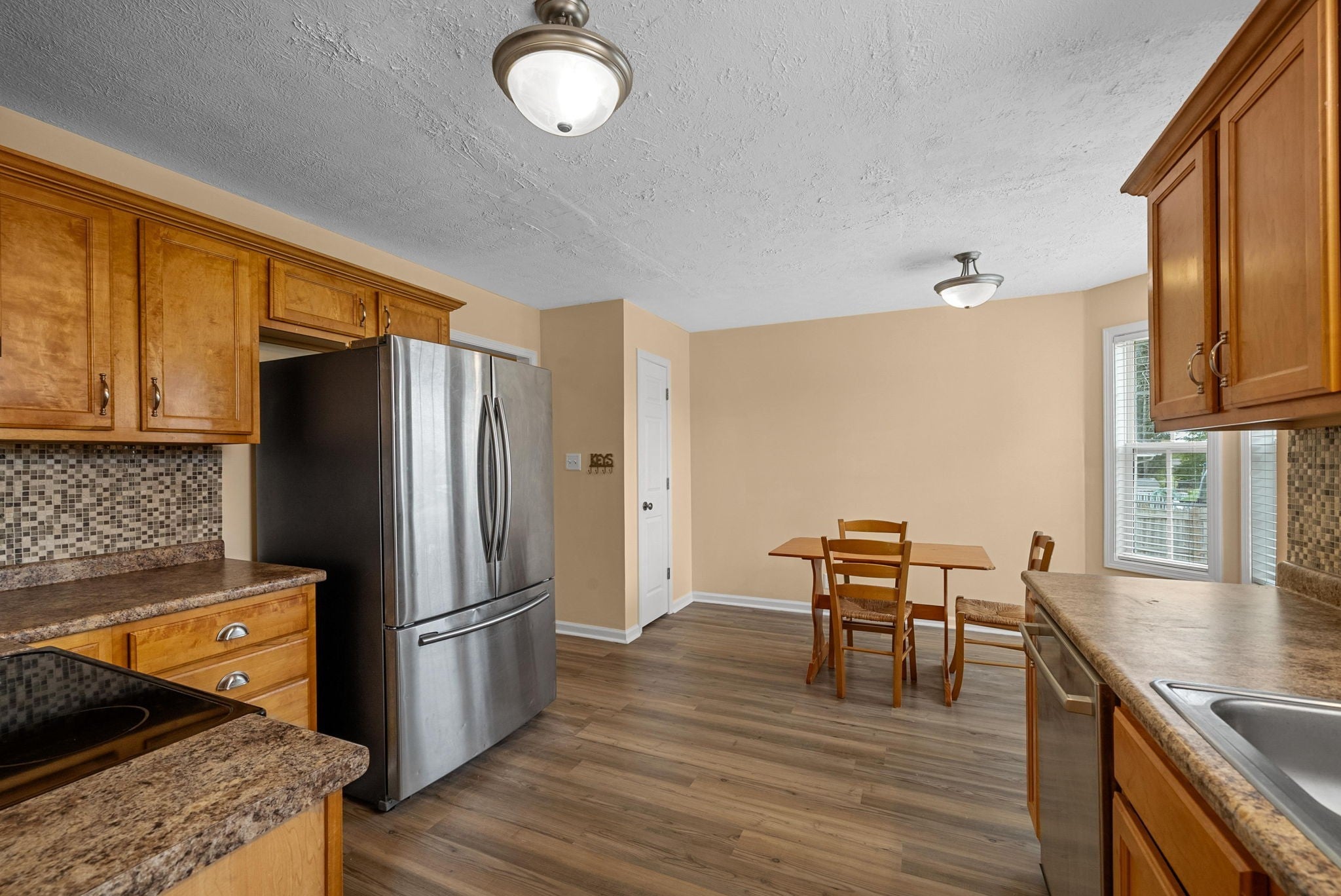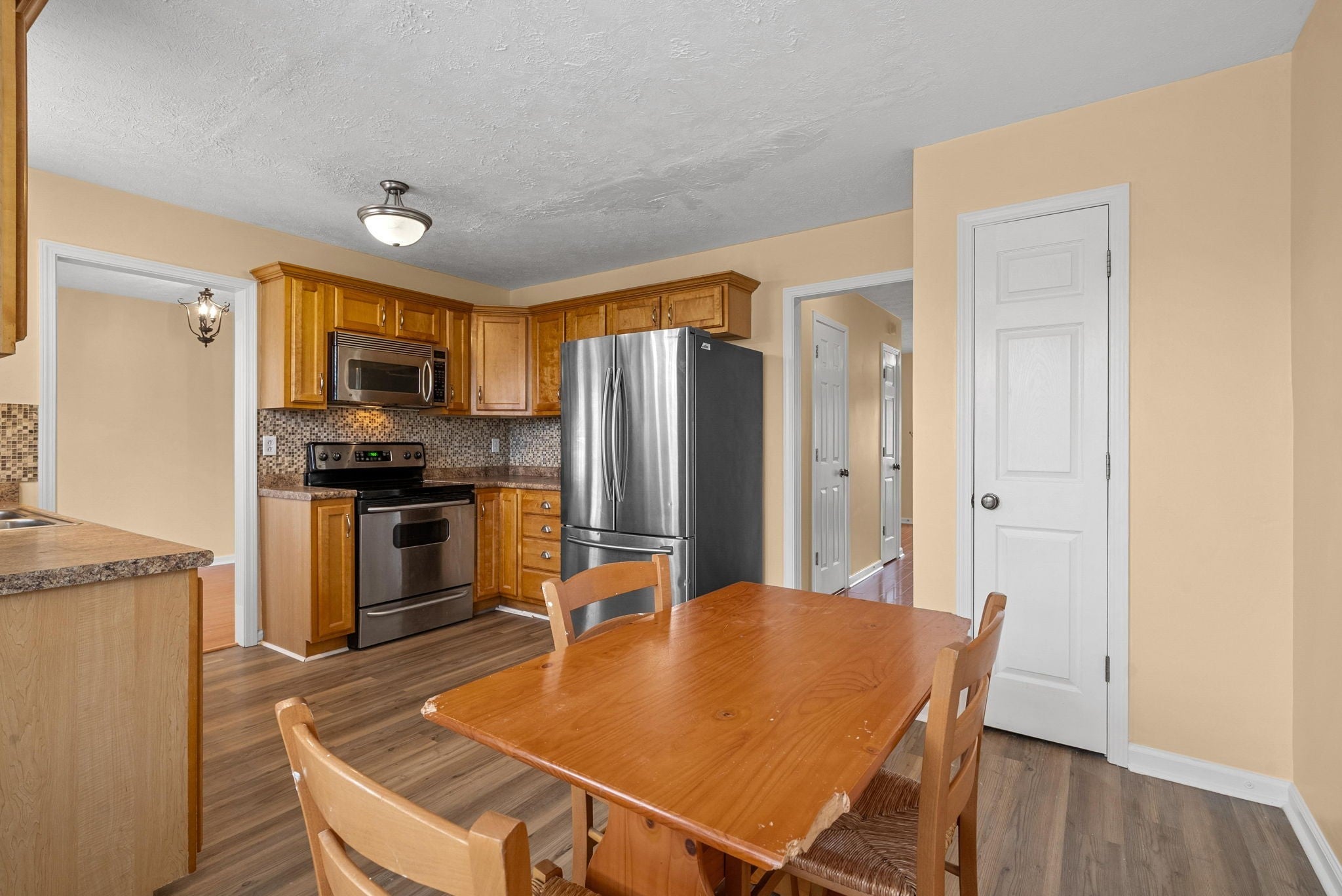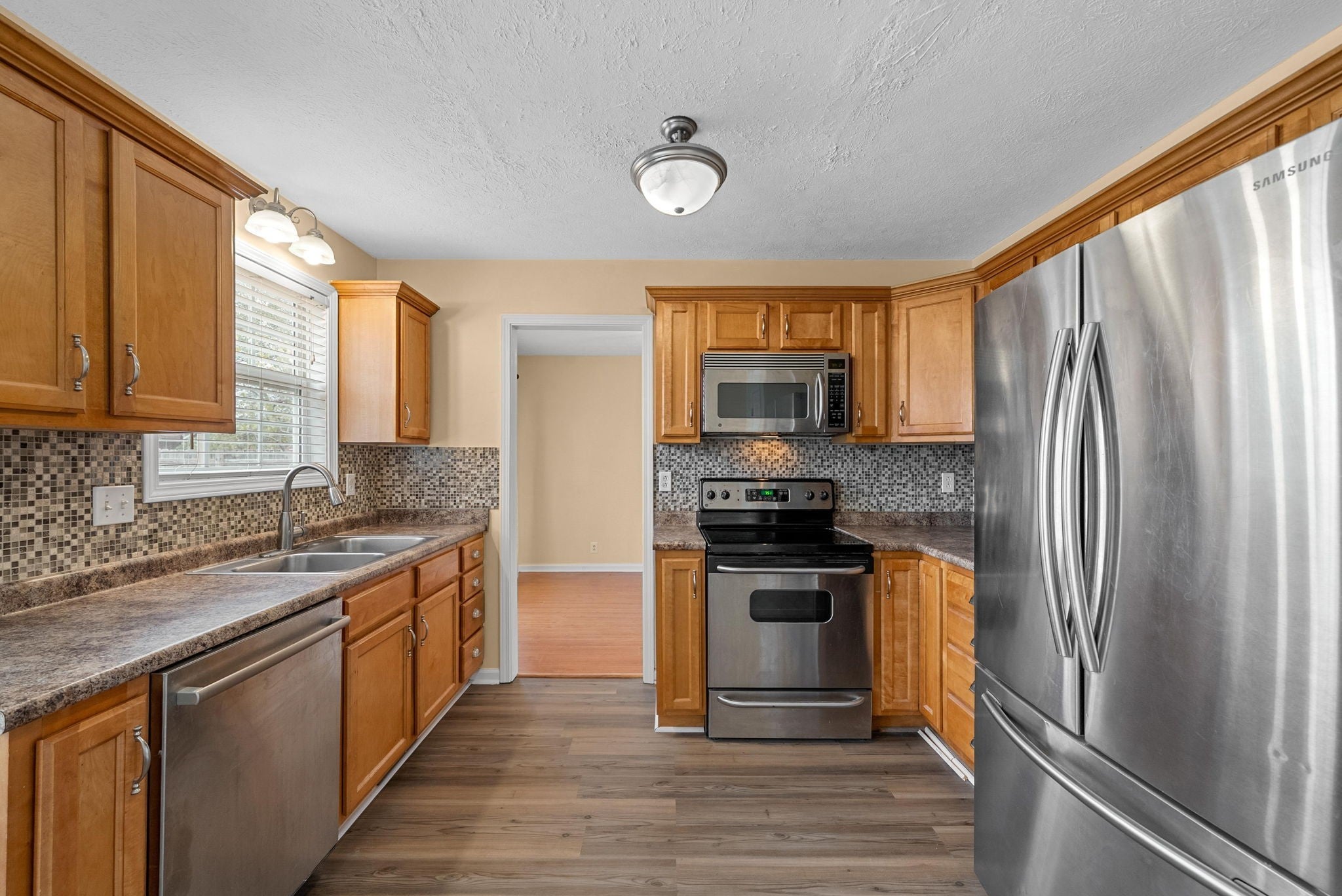 - Electric Oven, Electric Range, Dishwasher, Disposal, Microwave, Refrigerator, Stainless Steel Appliance(s)