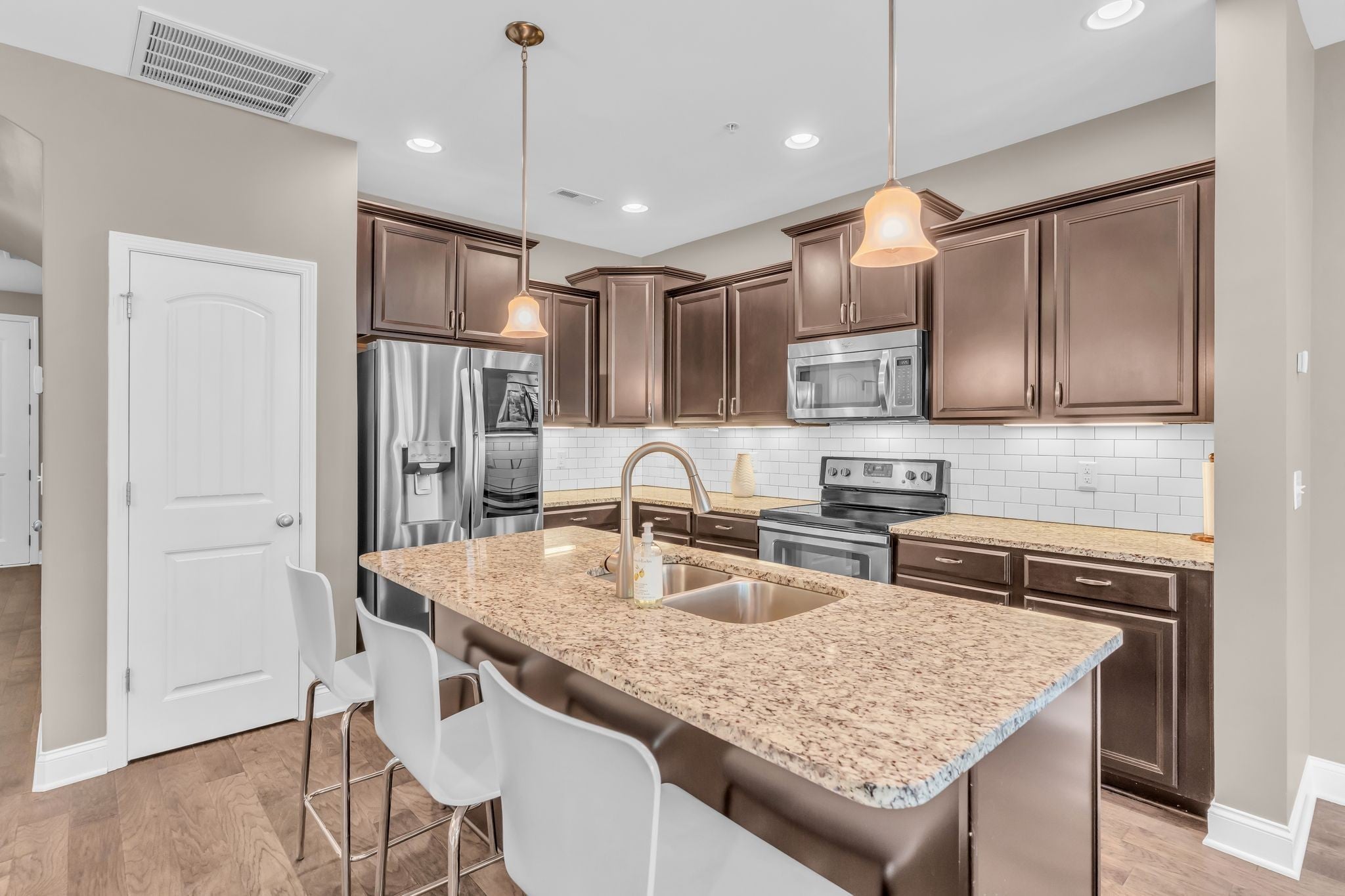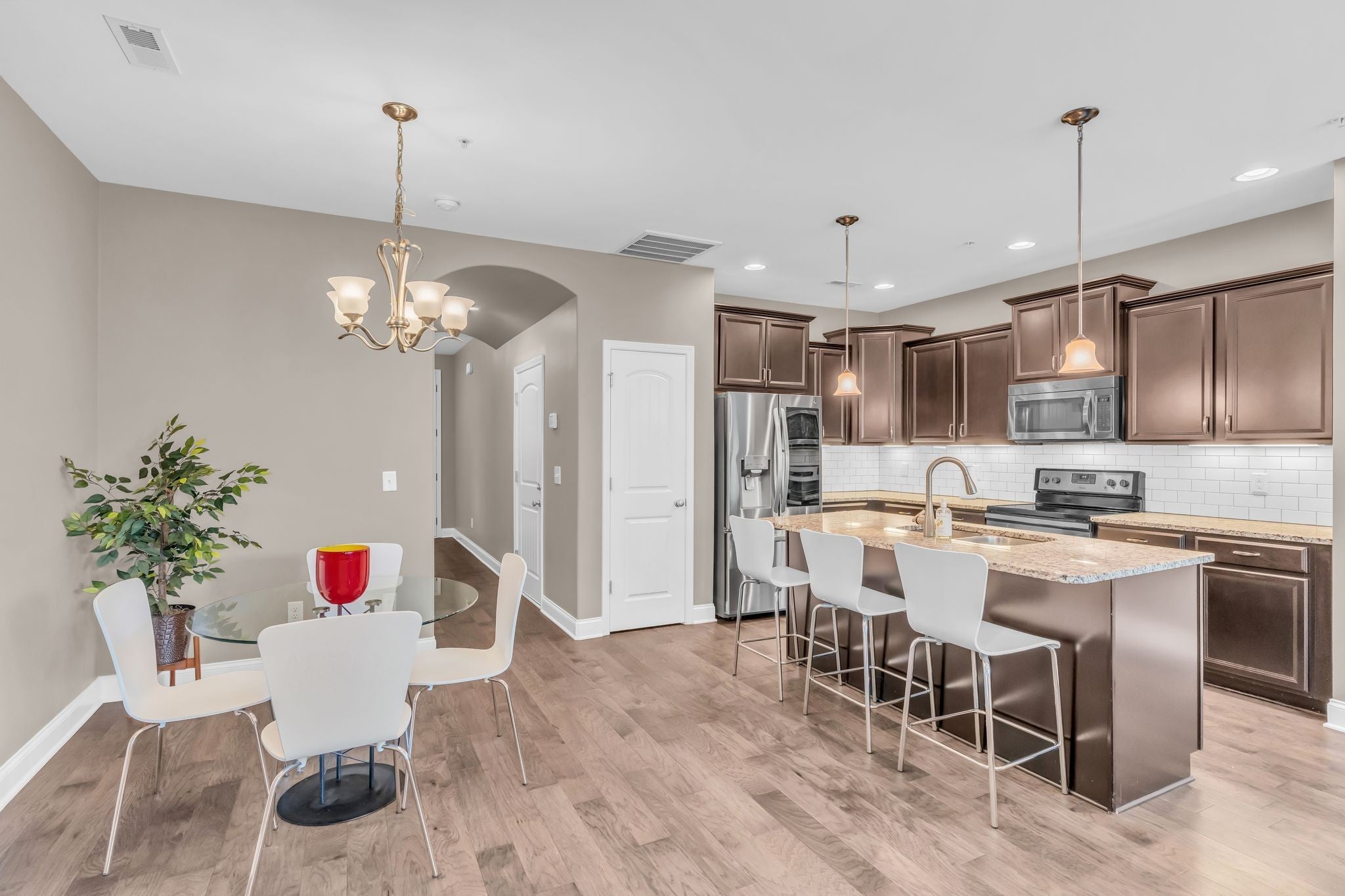 This 1,692 square foot townhouse in Hendersonville's Bridgemill subdivision features 3 bedrooms, 2.5 bathrooms, and an attached 1-car garage. Key features include hardwood flooring throughout, a kitchen with stainless steel appliances, granite countertops, and a tile backsplash, a living room with a fireplace, a large master suite, tile and granite in bathrooms, and a covered patio. Brand new HVAC with 10 year transferable warranty! All appliances including washer/dryer remain!