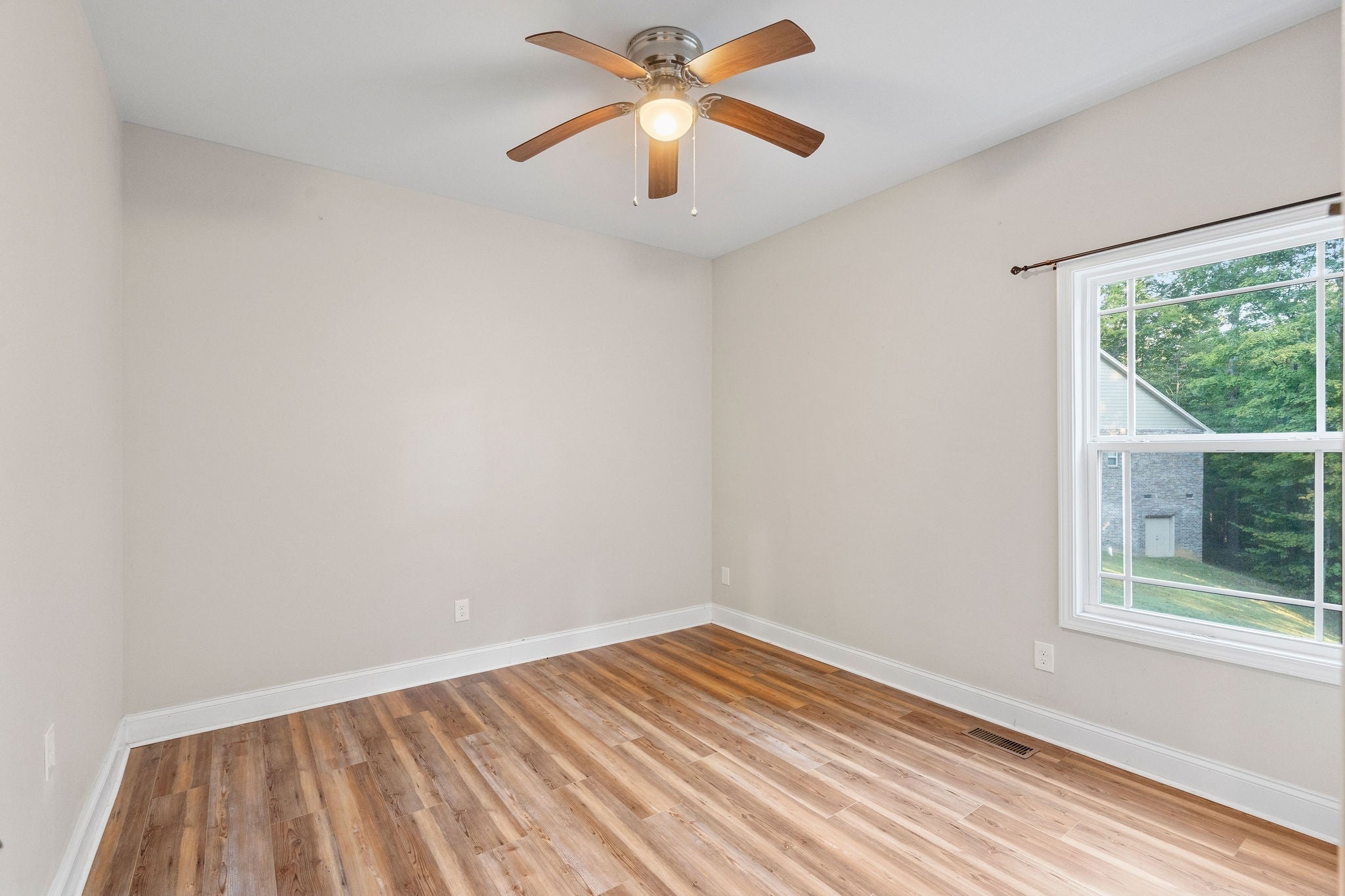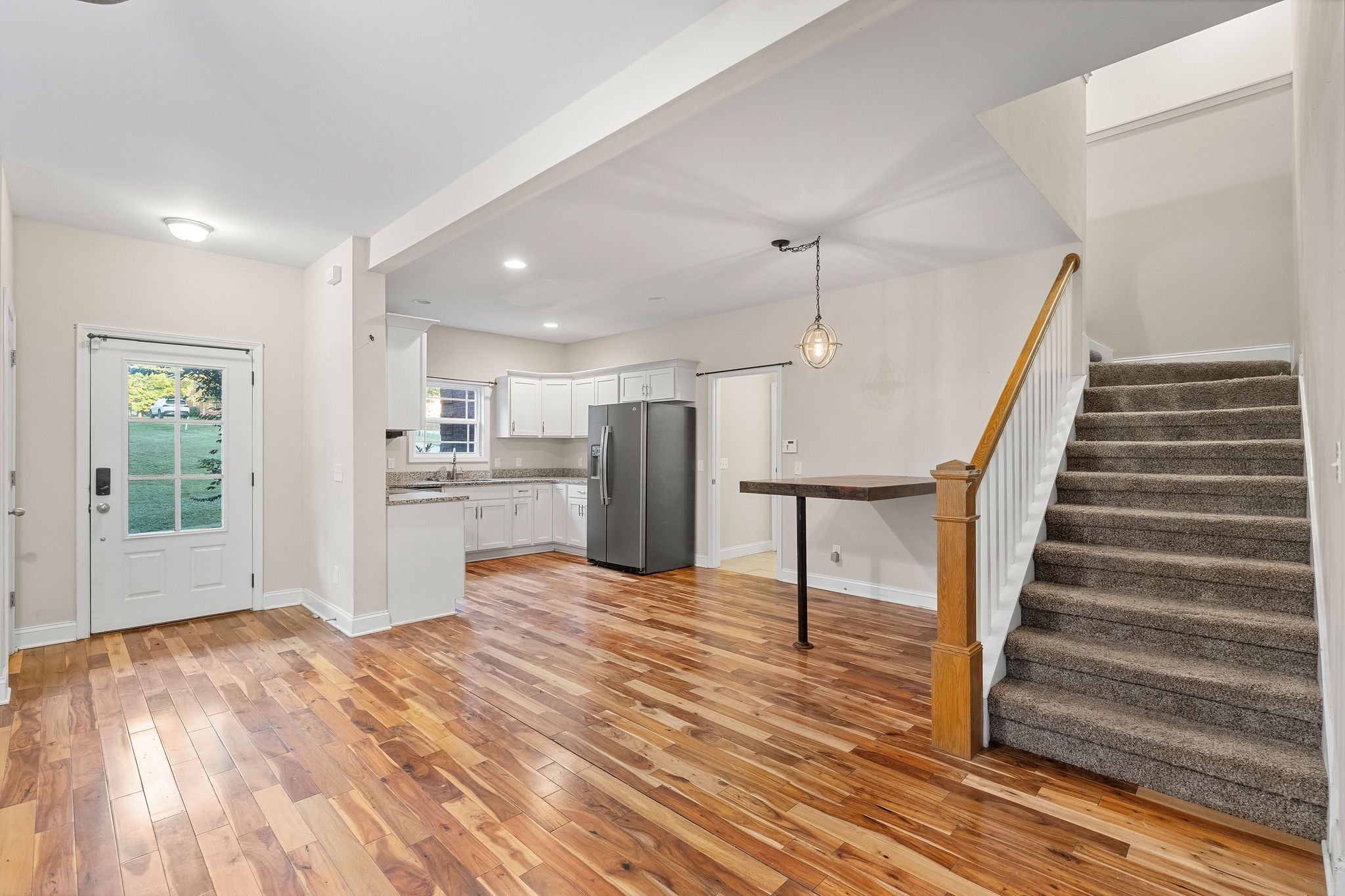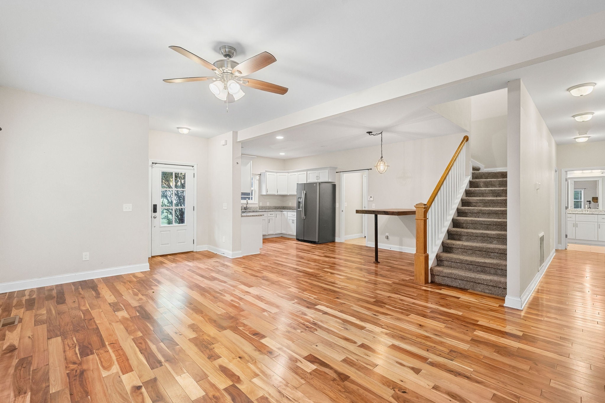 Welcome to this stunning 2,620 sq ft, 4-bedroom, 3-bath home built in 2019 on a beautiful 0.89-acre lot in Greenbrier. This modern, two-story residence features a timeless brick exterior and a convenient attached two-car garage. The open-concept interior boasts elegant hardwood and tile floors and a cozy gas fireplace in the Great Room. The chef's kitchen is equipped with granite countertops and stainless steel appliances. The Primary Suite is a spacious private retreat, offering a full en-suite bath with a separate tub and shower. A standout feature is its direct deck access, allowing you to step right outside onto the covered back porch overlooking serene woods and a creek—it's the perfect spot for unwinding. Practical features elevate this home's efficiency: you'll enjoy endless hot water from the modern tankless water heater and take advantage of the massive storage space in the large walk-in crawlspace. With two bedrooms on the main level and an upstairs bonus room, this property is designed for comfort and modern living.