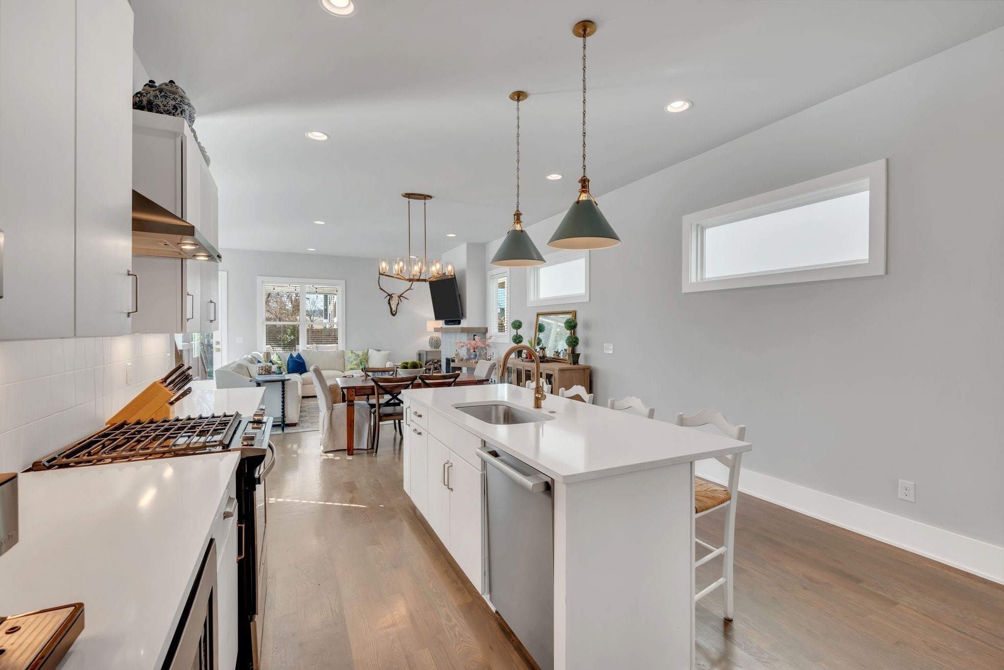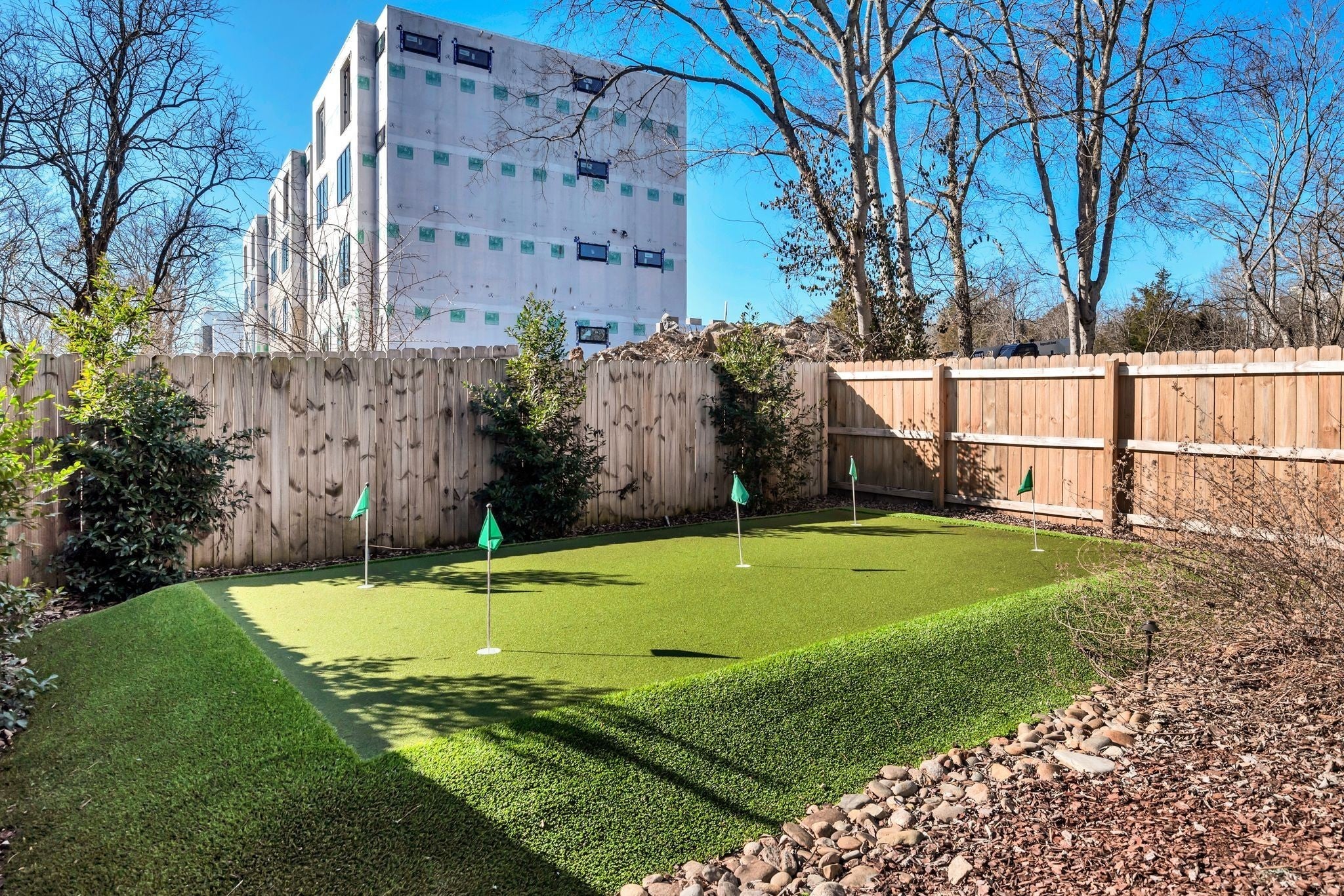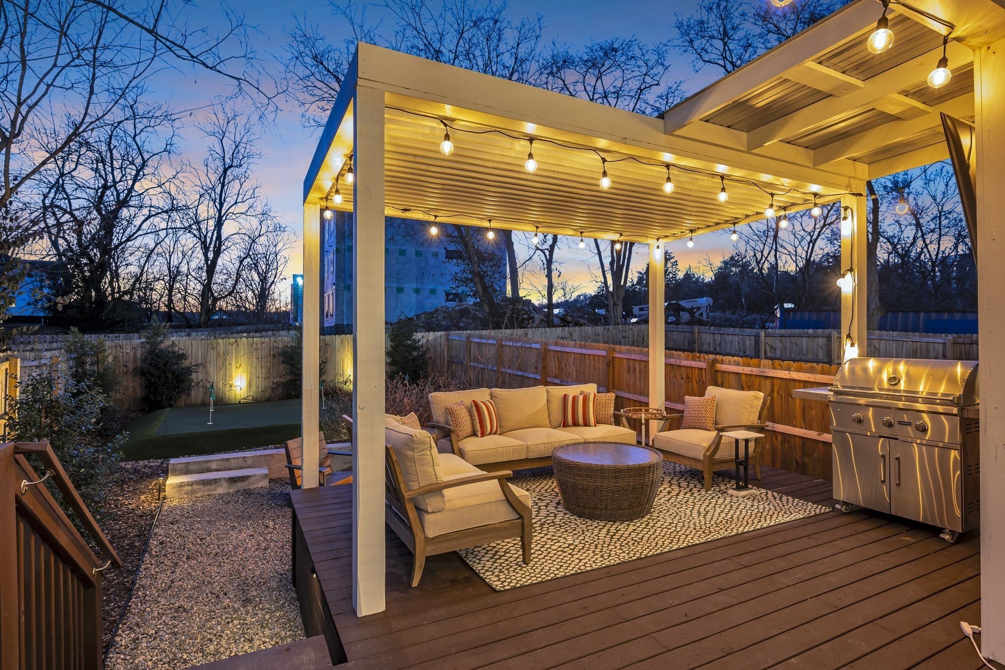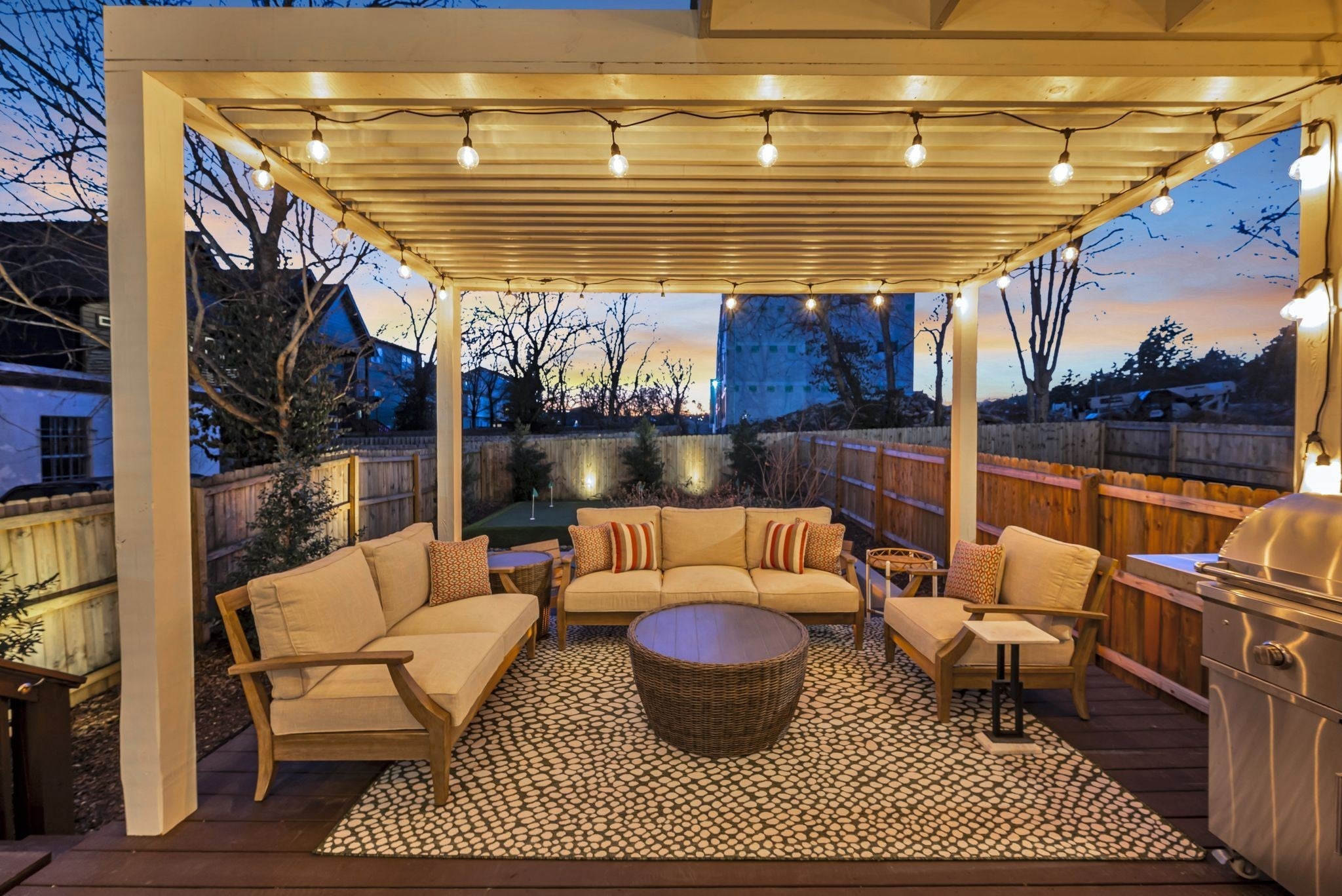 Exciting opportunity to live in the River District! Special 100% financing option available with no mortgage insurance through preferred lender, First Bank. Contact listing agent for more details. Exquisite home with designer features and upgrades not often found at this price. Be prepared to entertain outdoors on your private “game day” porch, patio and professional putting green! ($55k upgrade). Professionally landscaped with outdoor lighting, TV and Solostove firepit. Back inside you will enjoy a spacious kitchen & living room with tons of natural light. Gas stove, GE Cafe french door refrigerator, Miele dishwasher, quartz counters, walk-in pantry, mudroom and gas fireplace. Spacious primary bedroom with private screened balcony, vaulted ceiling, trimmed headboard wall, huge shower and walk-in closets, built-in shelving and luxury finishes. Bonus room creates a great secondary space to hangout with nearby guest bedrooms, large laundry and additional front balcony. Solid oak hardwood floors throughout and upgraded tile in baths. Navien tankless water heater, Atlas Filtri whole house water filtration system, natural gas line for outdoor grill and large outdoor storage closet. No HOA fees!