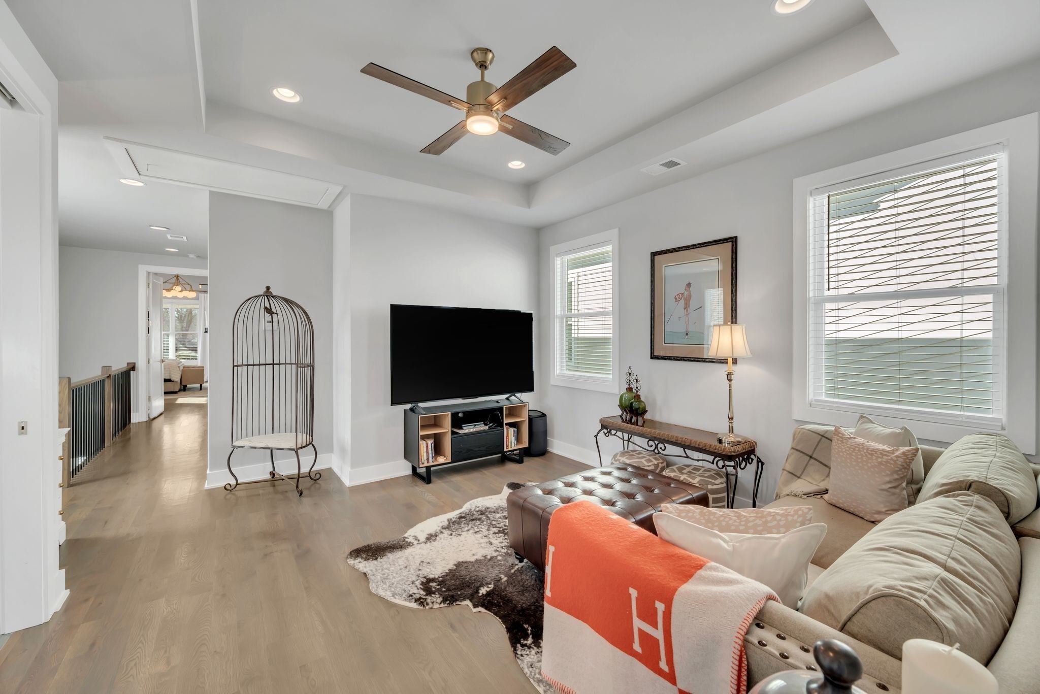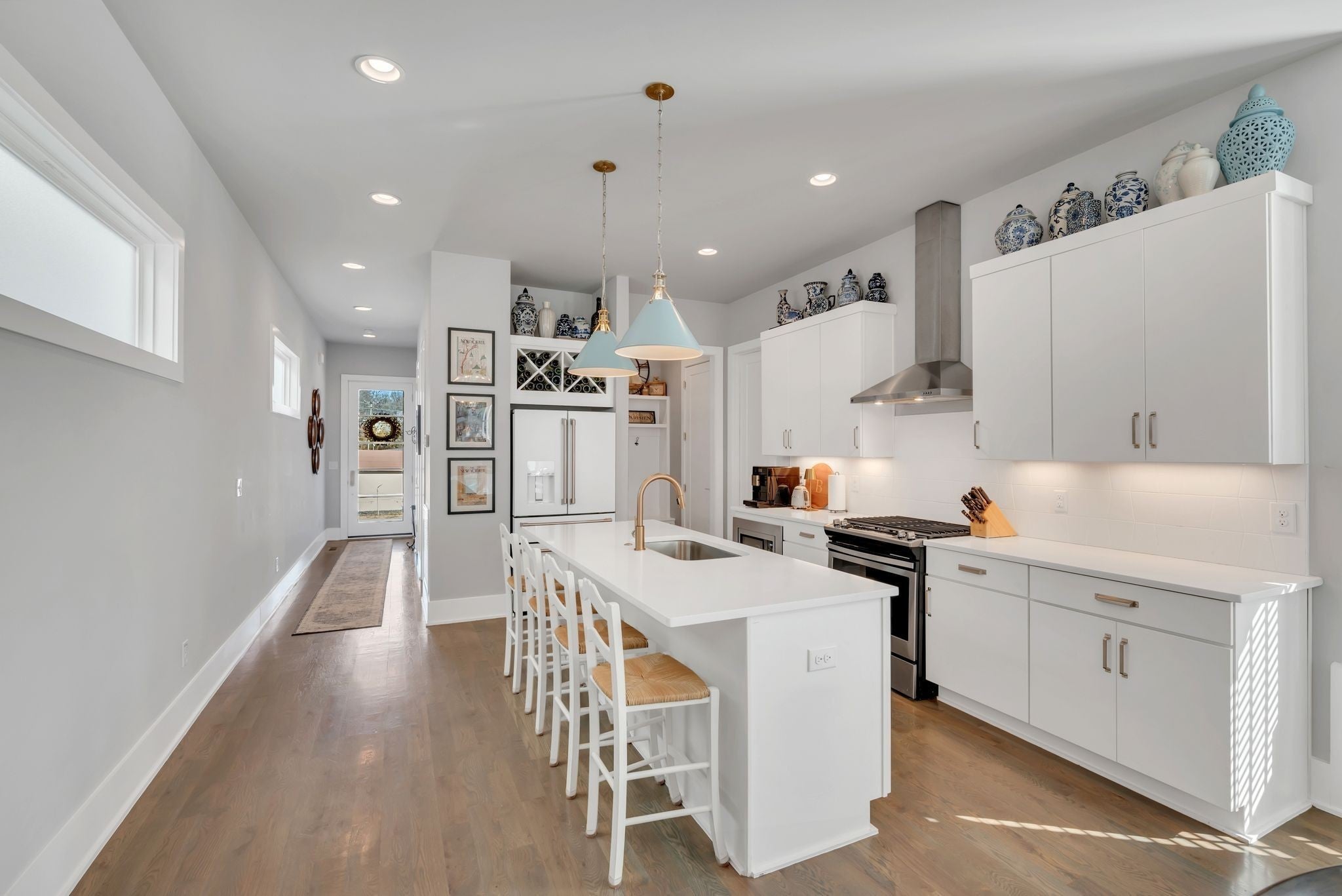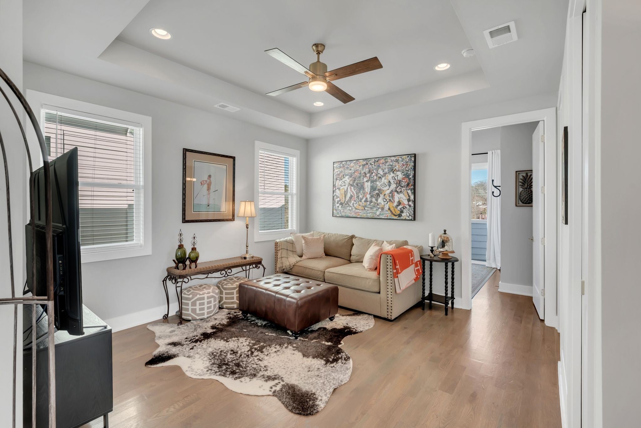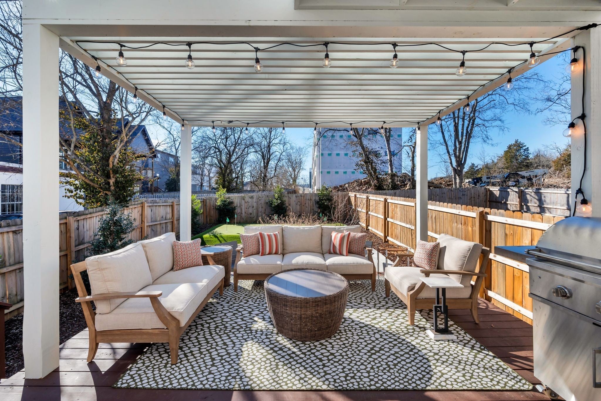 Exciting opportunity to live in the River District! Special 100% financing option available with no mortgage insurance through preferred lender, First Bank. Contact listing agent for more details. Exquisite home with designer features and upgrades not often found at this price. Be prepared to entertain outdoors on your private “game day” porch, patio and professional putting green! ($55k upgrade). Professionally landscaped with outdoor lighting, TV and Solostove firepit. Back inside you will enjoy a spacious kitchen & living room with tons of natural light. Gas stove, GE Cafe french door refrigerator, Miele dishwasher, quartz counters, walk-in pantry, mudroom and gas fireplace. Spacious primary bedroom with private screened balcony, vaulted ceiling, trimmed headboard wall, huge shower and walk-in closets, built-in shelving and luxury finishes. Bonus room creates a great secondary space to hangout with nearby guest bedrooms, large laundry and additional front balcony. Solid oak hardwood floors throughout and upgraded tile in baths. Navien tankless water heater, Atlas Filtri whole house water filtration system, natural gas line for outdoor grill and large outdoor storage closet. No HOA fees!