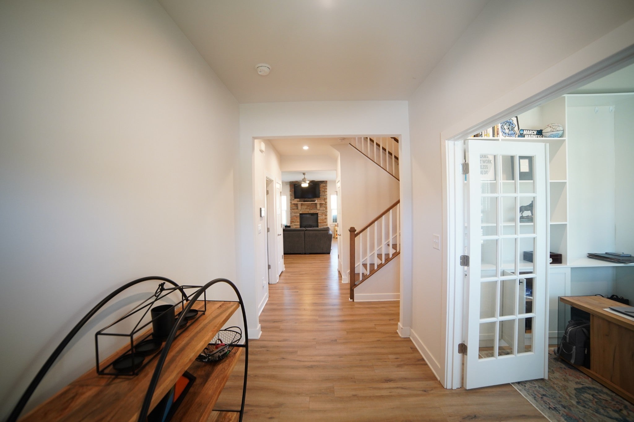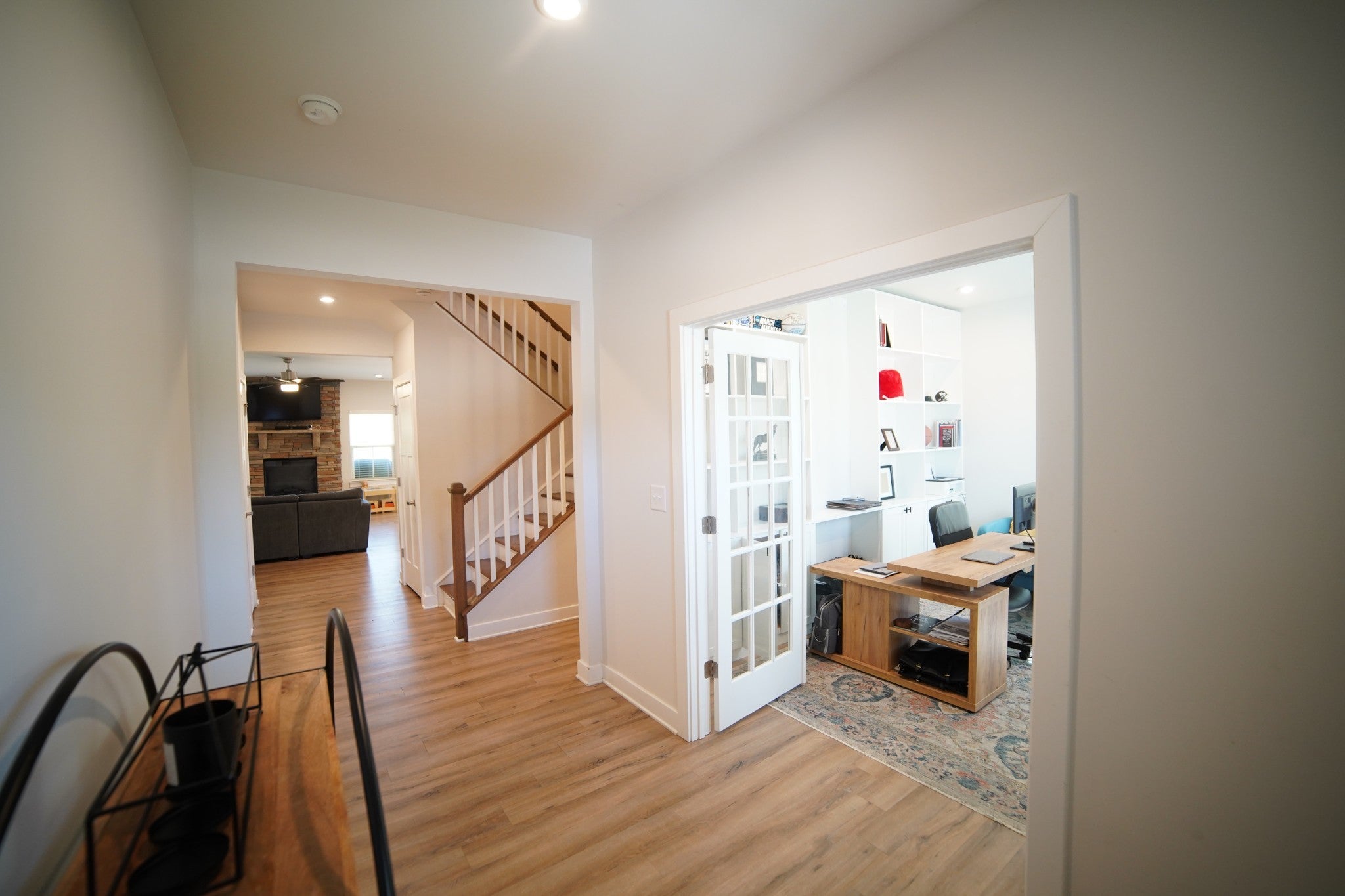 Just 15 minutes from downtown Nashville, this stylish home combines comfort and convenience. Enjoy an inviting living area with an electric fireplace, a home office with custom built-ins and French doors, and a downstairs master suite for easy living. The large upstairs loft offers flexible space for work or play, while the covered back patio is perfect for relaxing or entertaining. A beautiful blend of design and everyday functionality—close to all that Nashville has to offer.