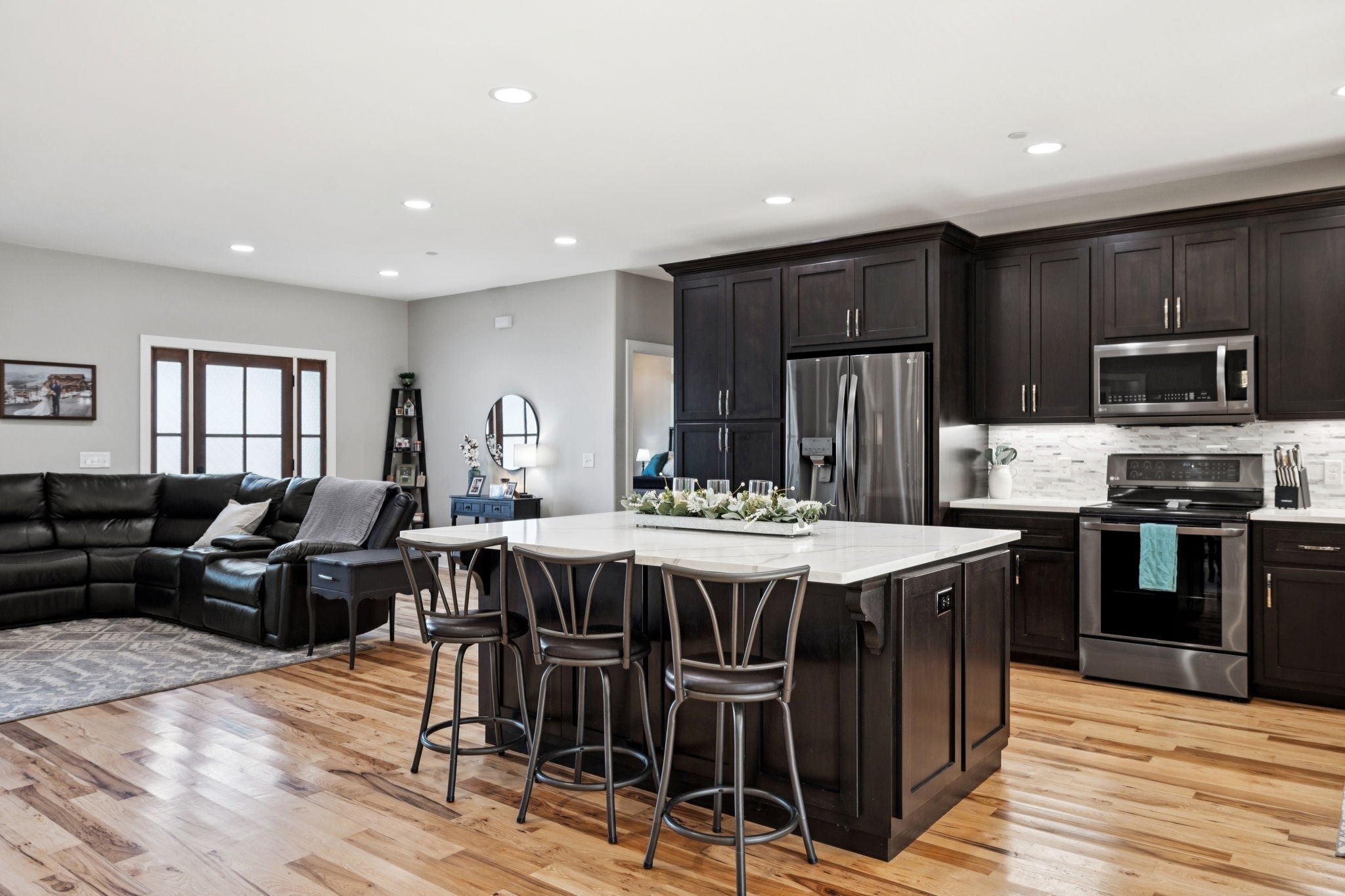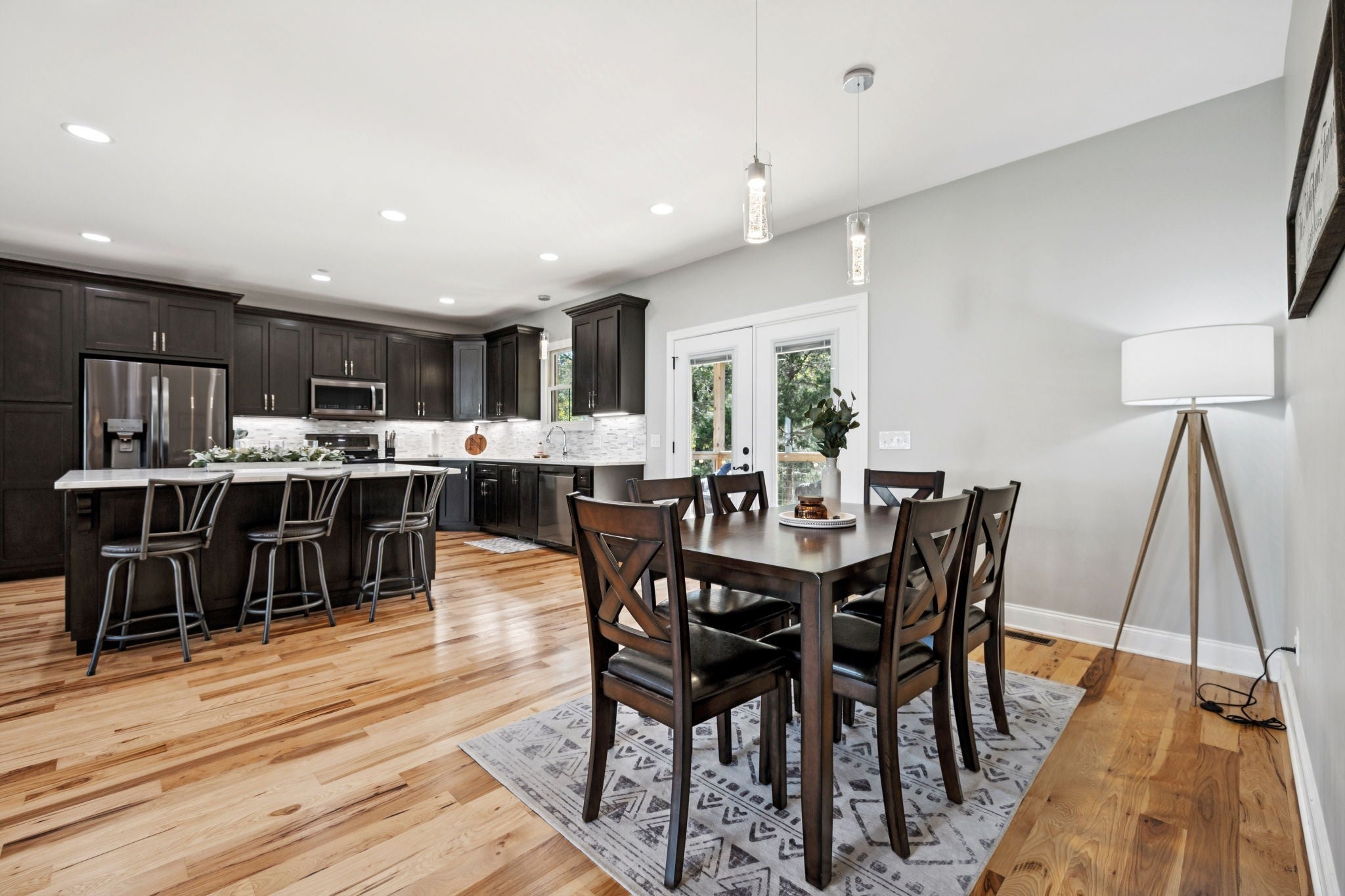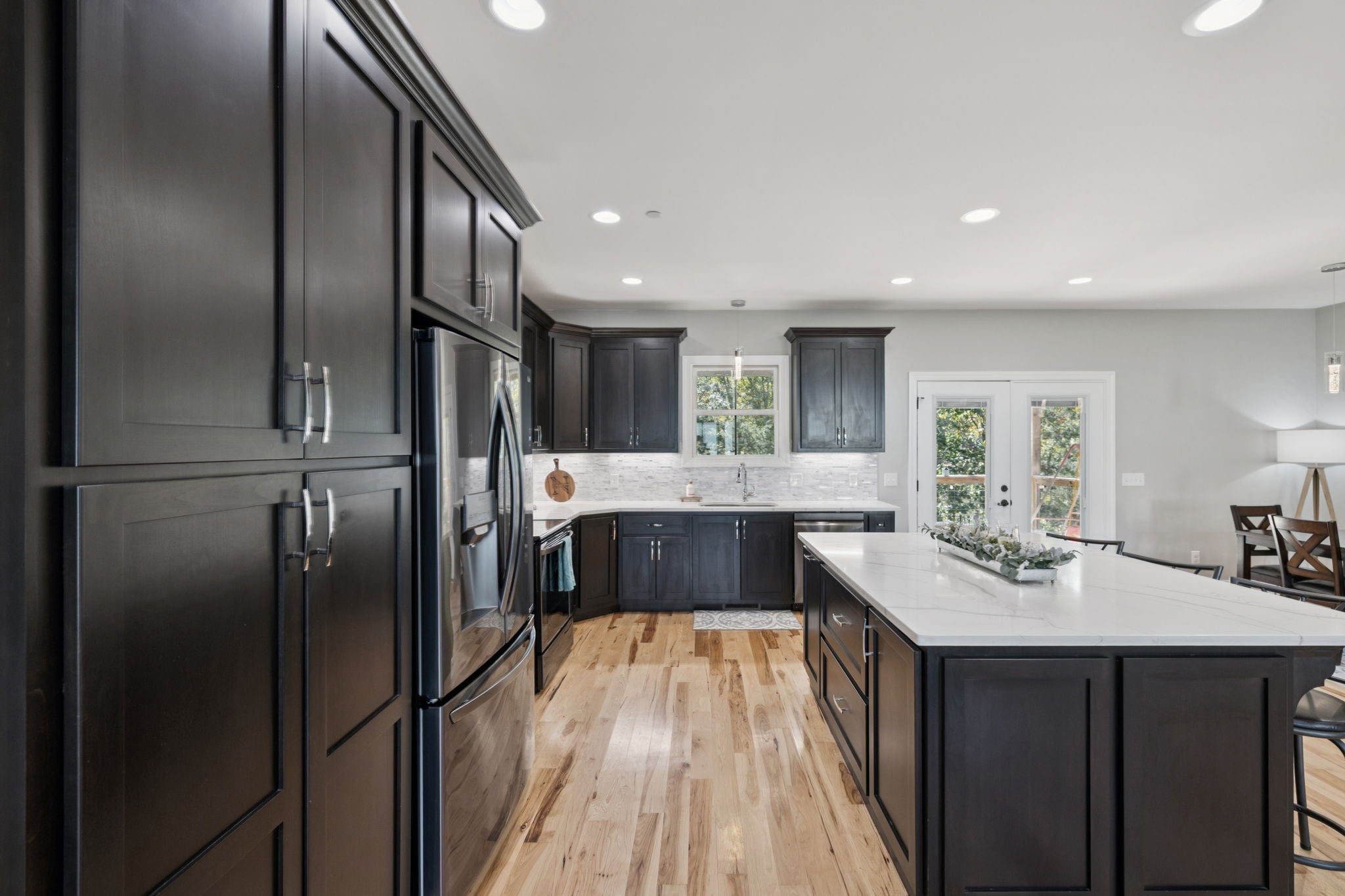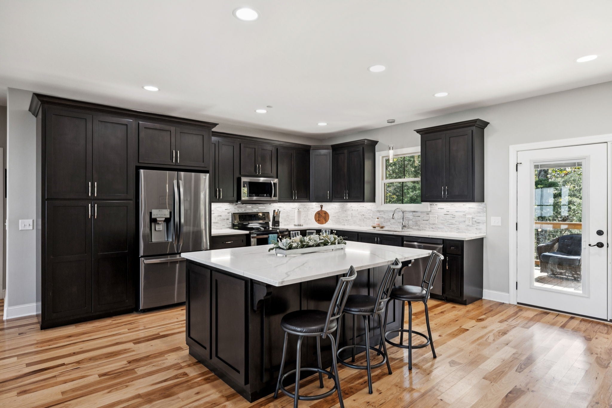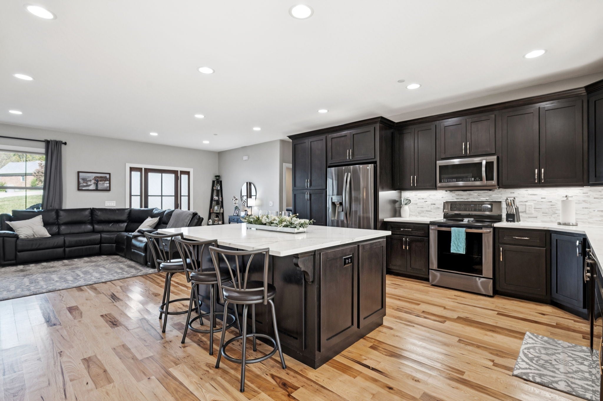 One of the newest homes in Town Pride Subdivision on one of the best lots that is bordered by the creek~one level of PURE HAPPINESS~this custom, one owner home feels like new the minute you walk in~beautiful brick on the exterior just gives a glimpse of the attractive interior that awaits! Real Hickory hardwood floors throughout~an open living/kitchen/dining concept with a large island topped with gorgeous quartz for plenty of cabinet and counter space~all stainless appliances and all remain~make the fireplace the center attraction just in time for the Christmas decorating to begin (or at least that is what IG is showing)~recessed lighting throughout~large master suite with a bath to die for and yes you can faint right on the heated tiled floors and never worry about getting chilled~tankless water heater and natural gas which is a rarity these days even in new construction~nice laundry room~walk-in attic great for storage~covered deck with a tongue and groove ceiling in rear where you can see the creek~pool table remains for all you pool sharks
