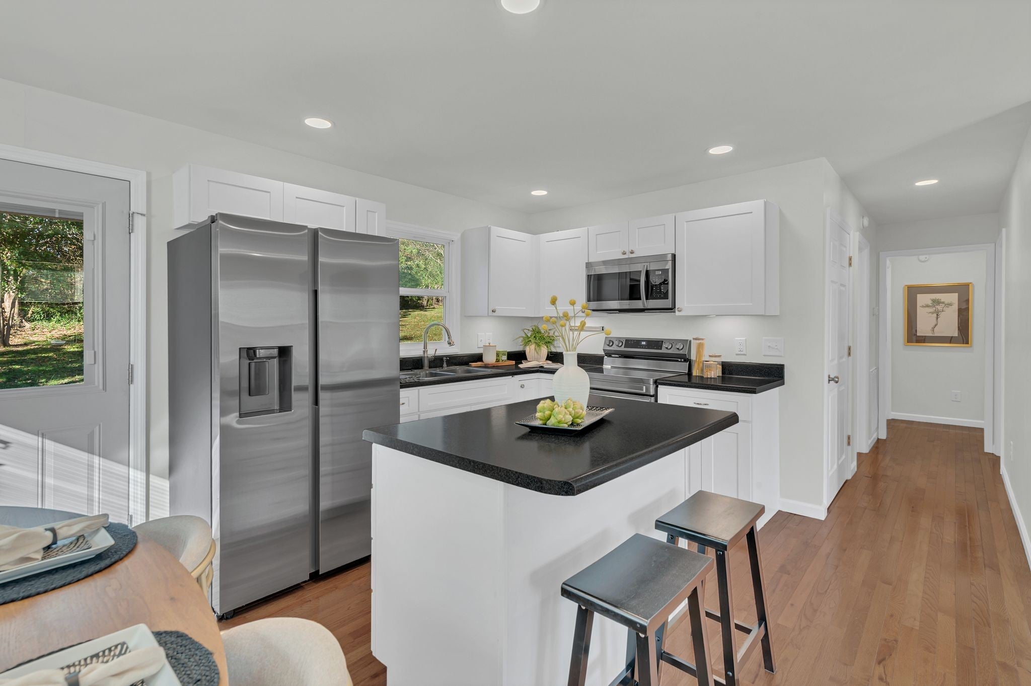 Perfect starter home! Step inside this charming, move-in ready home that's ideal for first-time buyers! You'll love the real hardwood floors, fresh paint, and bright open feel that makes every room feel welcoming. The kitchen features brand-new stainless-steel appliances and is open to the living room. The bathroom offers a tiled shower for a modern touch. Outside, you can enjoy your cute back yard that comes with a storage shed. Affordable, stylish, and ready for new owners.