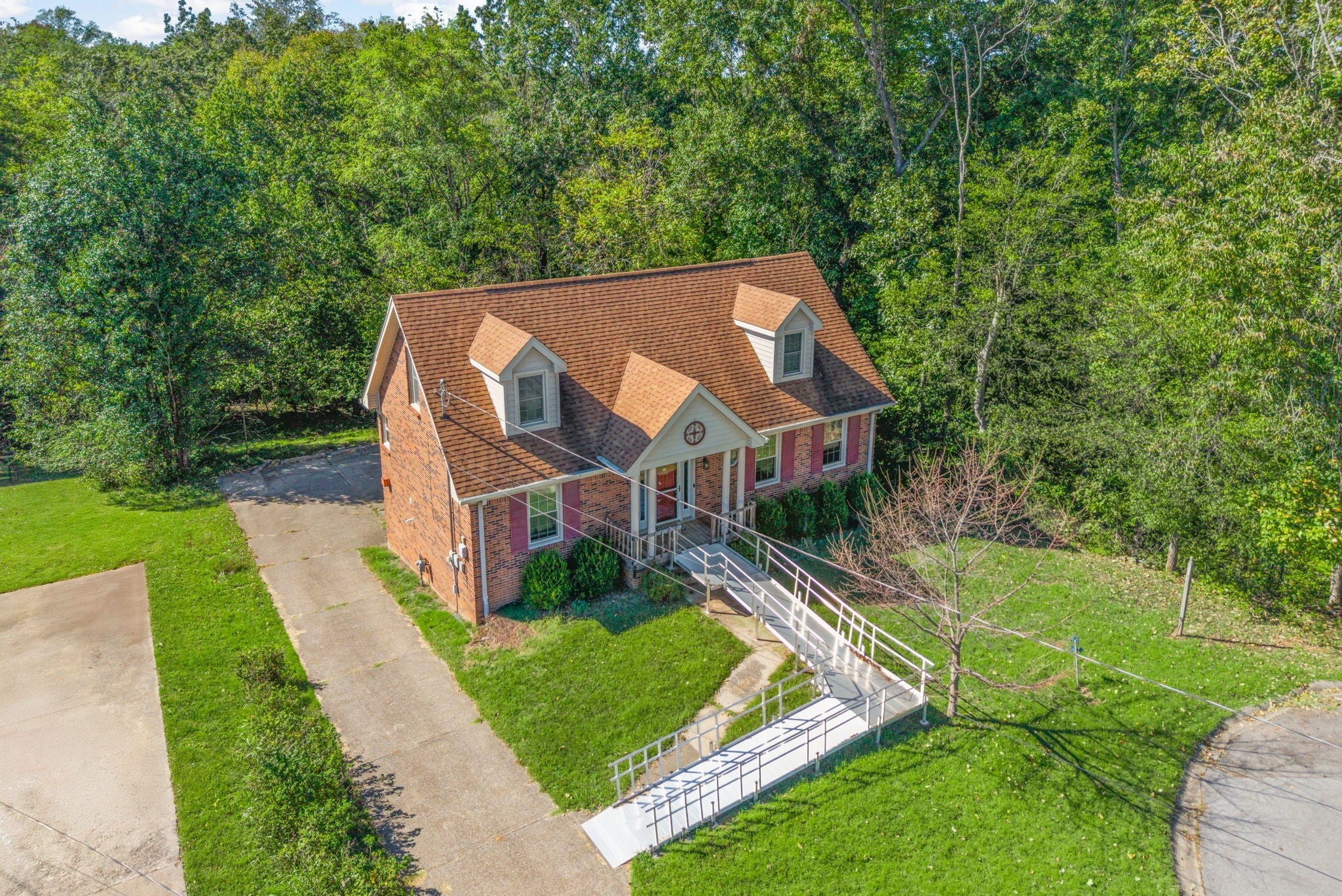 PRIVATE ACCESS TO THE GREENWAY! Seller to give ***$5000 credit at closing for upgrades given to buyer!***This home is truly one of a kind! Drive down to the end of the cul de sac and Let's begin with the handicap access ramp that allows for easier access to the front door. Once entered, there is a spacious living room with a cat walk above, Real hardwood floors in the living room and formal dining room. Gas fireplace in the living room. Formal dining room with lots of space. Kitchen has lots of cabinet and counterspace. Cabinets go all the way up to the ceiling. Lights underneath the cabinets and in the top cabinets. Brand new microwave. Corner sink that has a window above. Primary bedroom is downstairs. Spacious primary bedroom with a spacious primary bathroom. Primary bedroom has 3 closets! Going upstairs is a spacious area that can be used as an office, extra space for a daybed, etc. One side is a bedroom and the other side has the same size bedroom with a full bathroom upstairs that has been updated. Half bathroom on main floor has been updated as well. Going downstairs into the basement offers a huge living area, could make into a bedroom, workout room, etc. Lots of finished space plus a huge closet down in the basement! Go out to the HUGE 2 car garage and there is much room for storage and long enough to fit 2 vehicles. Huge driveway that wraps around to the back of the home with extra space for parking! Deck has been replaced in the past 3 years. Best feature is the private access to the Greenway! The Greenway is visible from the bedroom and from the driveway! Brand new remodeled bathrooms to include a brand new walk in shower- handicap accessible! Home also comes with an extra refrigerator down in the basement!