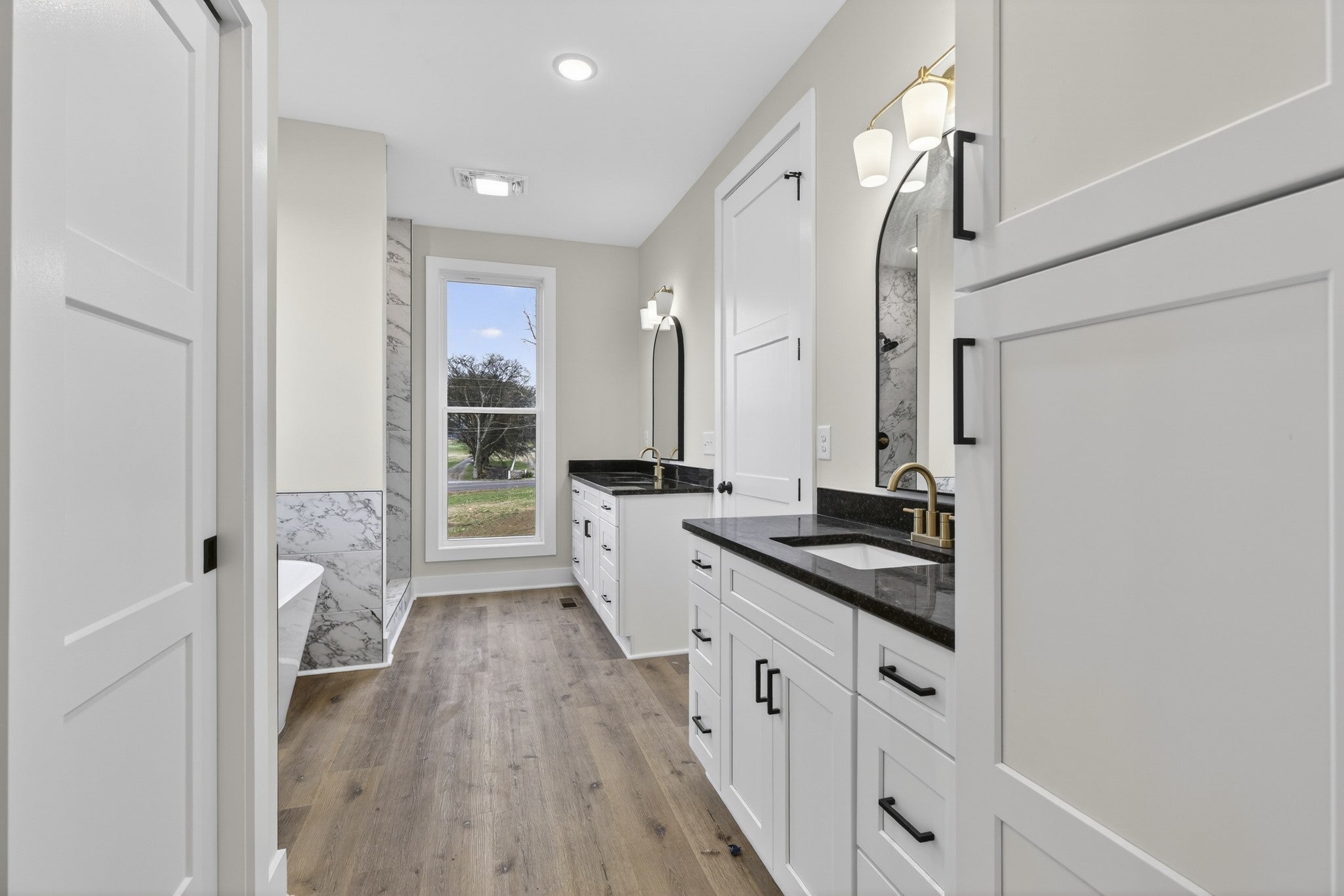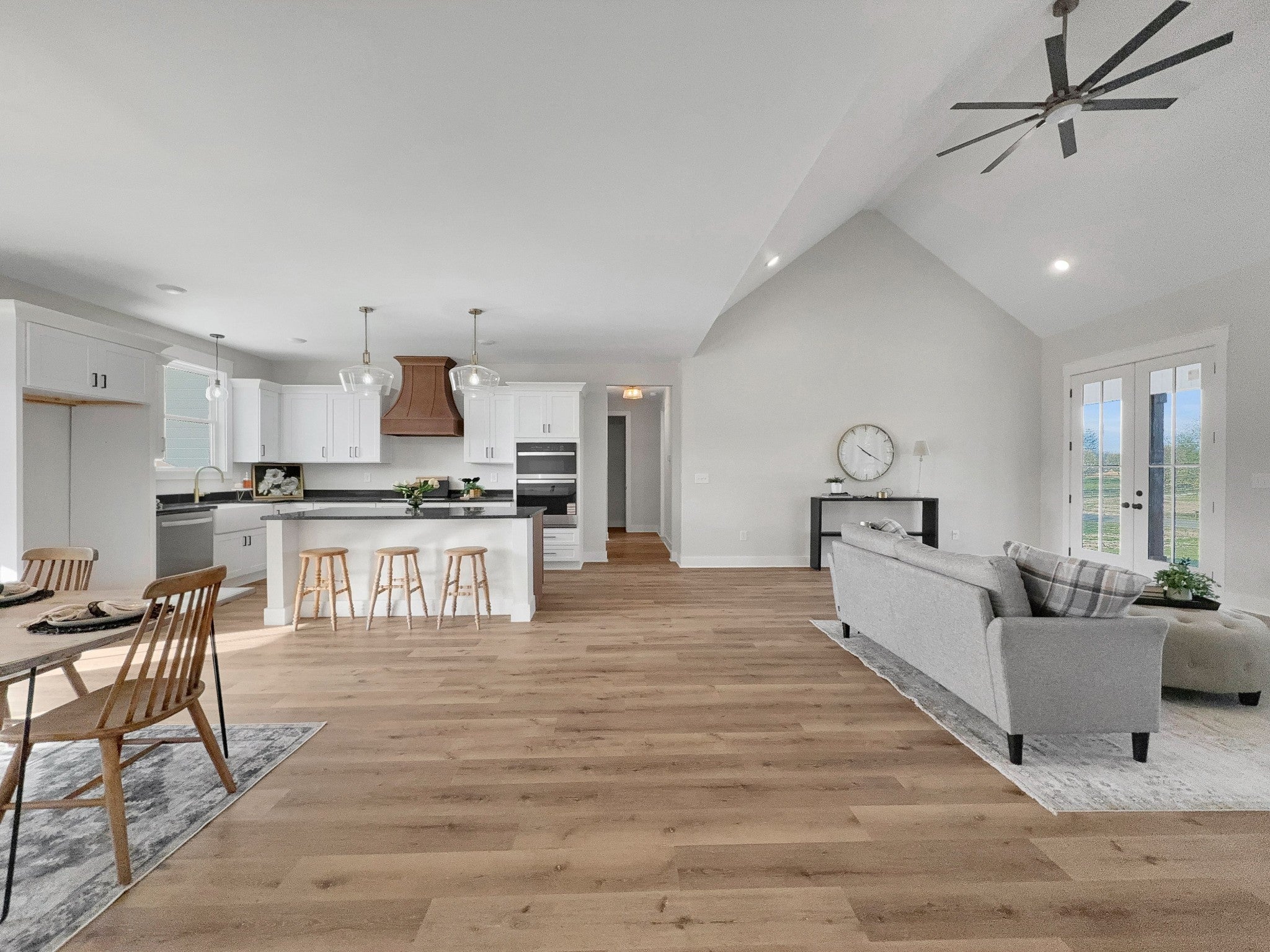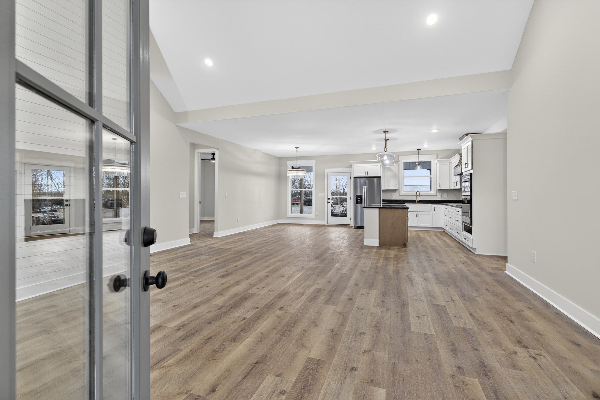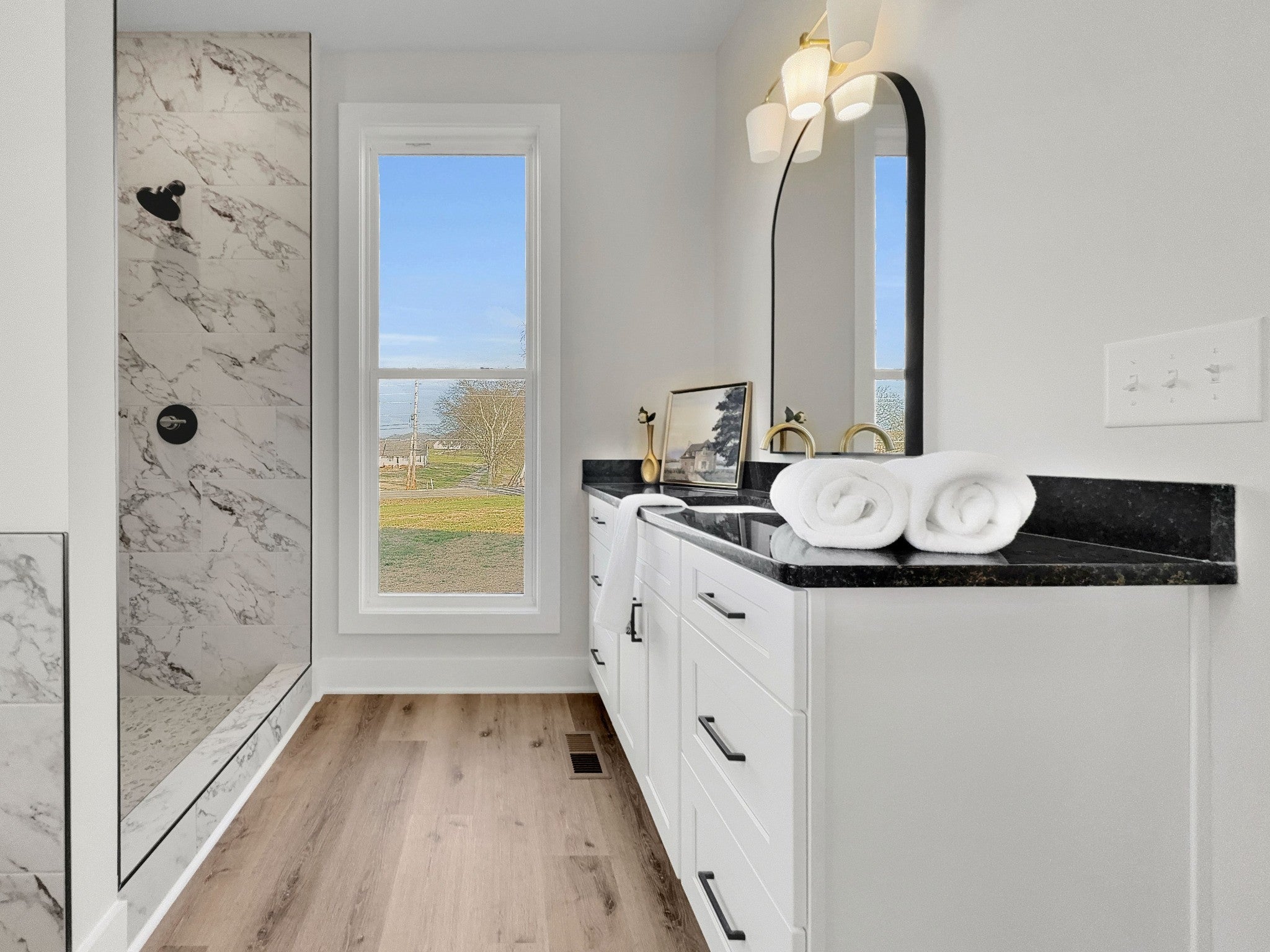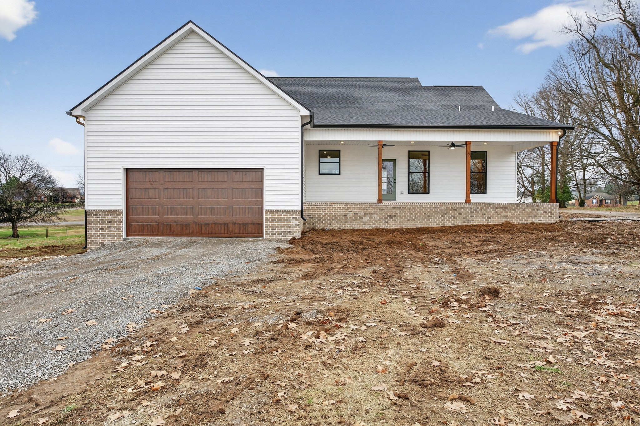 Beautiful new home on 2.39 acres with 40x70 shop! This 2,554 sq ft home offers 3 bedrooms and 2.5 baths on the MAIN FLOOR plus an UPSTAIRS BEDROOM, FULL BATH AND BONUS ROOM. Enjoy hardwood floors throughout, open-concept living with vaulted ceiling and electric fireplace. Gourmet kitchen with induction cooktop, wall oven/microwave, large island, and beautiful cabinetry. Luxurious primary suite features tile shower, soaking tub, and double vanities. Secondary bedrooms share a Jack & Jill bath. 9’ ceilings, 8’ doors, and spacious laundry off garage. Rocking chair front porch and covered back porch perfect for entertaining. Exceptional quality and value at $749,900—the best new home in Castalian Springs! Grass is AI generated