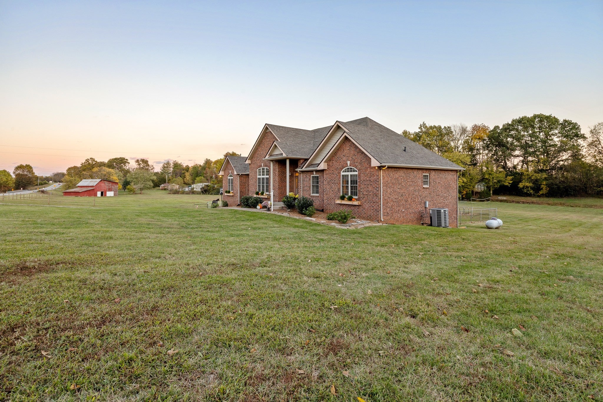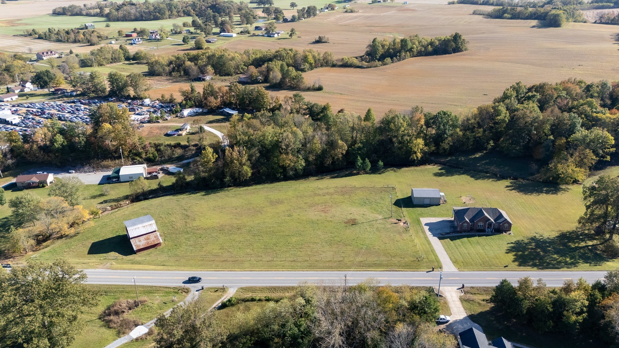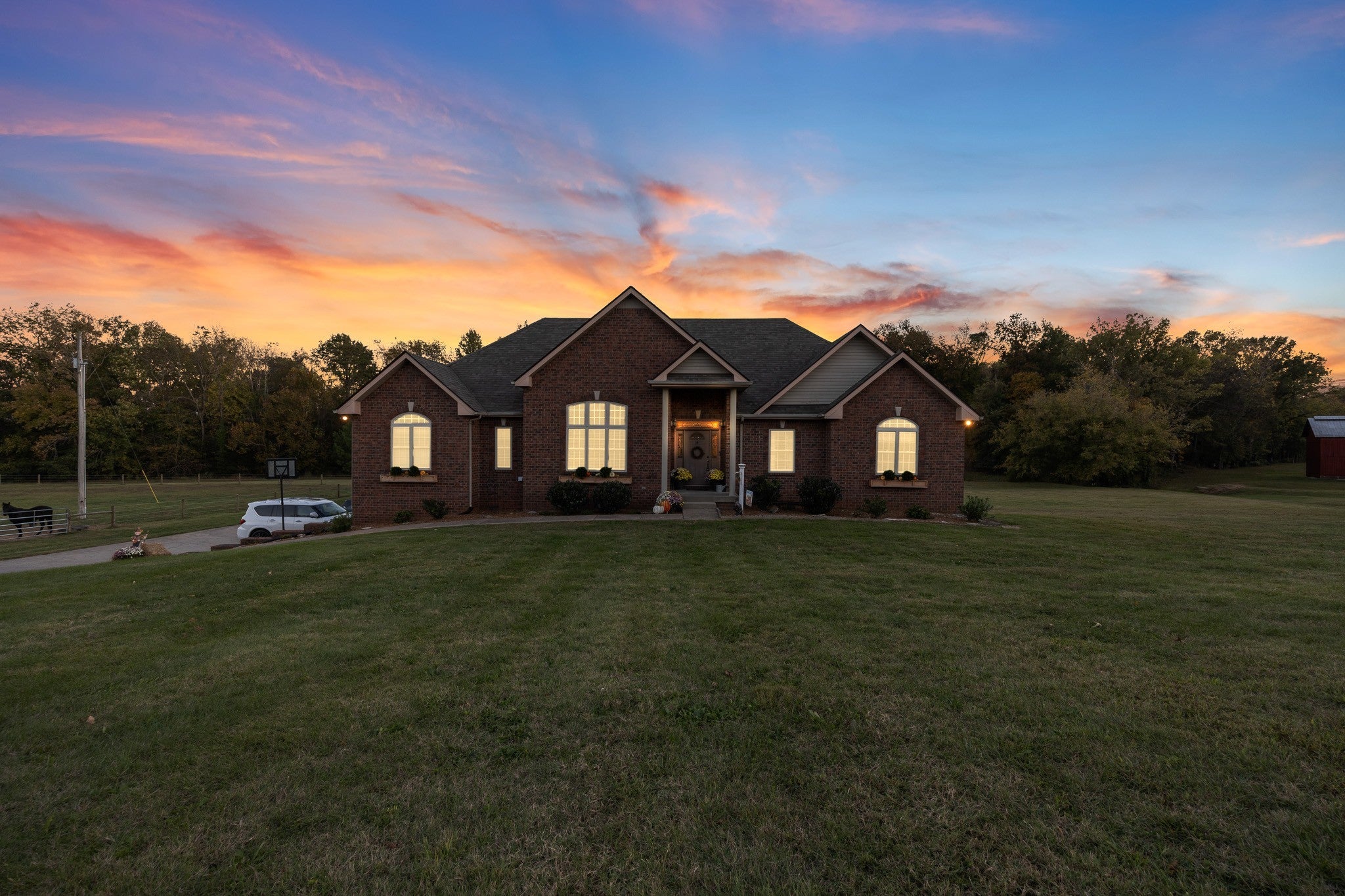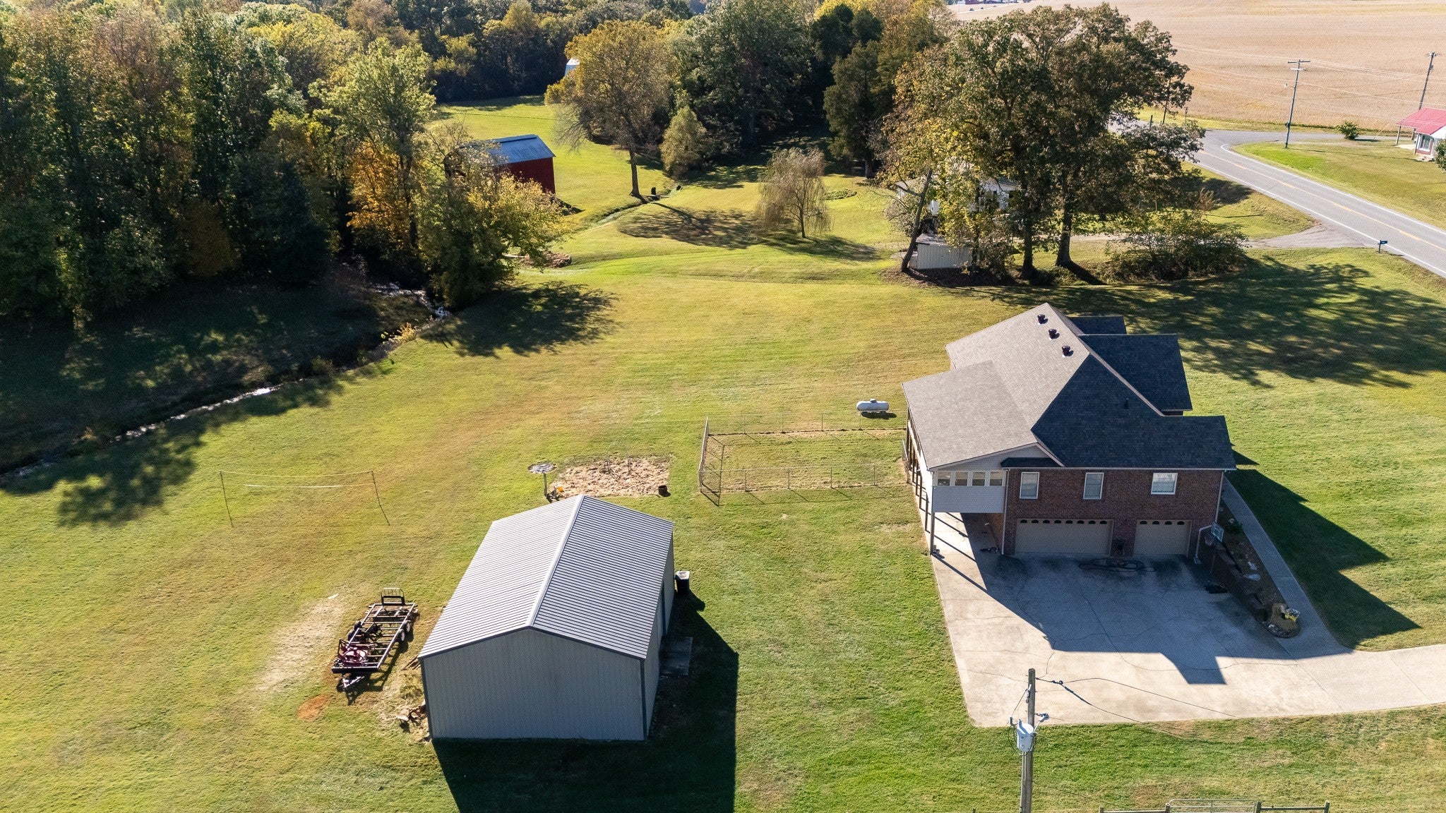 Beautiful home sitting on 5.99 open acres with a creek. The home has a new roof, updated flooring, new granite counter tops, and freshly painted within the last 3 years .. It also has had new lighting almost throughout. The partially finished basement is a great place for family fun and entertainment, a home office, or whatever your need might be. The property is gently rolling, and has new electrobraid fencing for your livestock or horses. Not only is there a 40x32 tobacco barn on the property, but a 30 x 40 detached garage that has updraded lighting, which is in addition to the 3 car attached garage. Looking for a place to raise chickens? The detached garage-shop has a 30 foot long chicken coop and run attached. And for the young at heart, a treehouse also resides on the property.