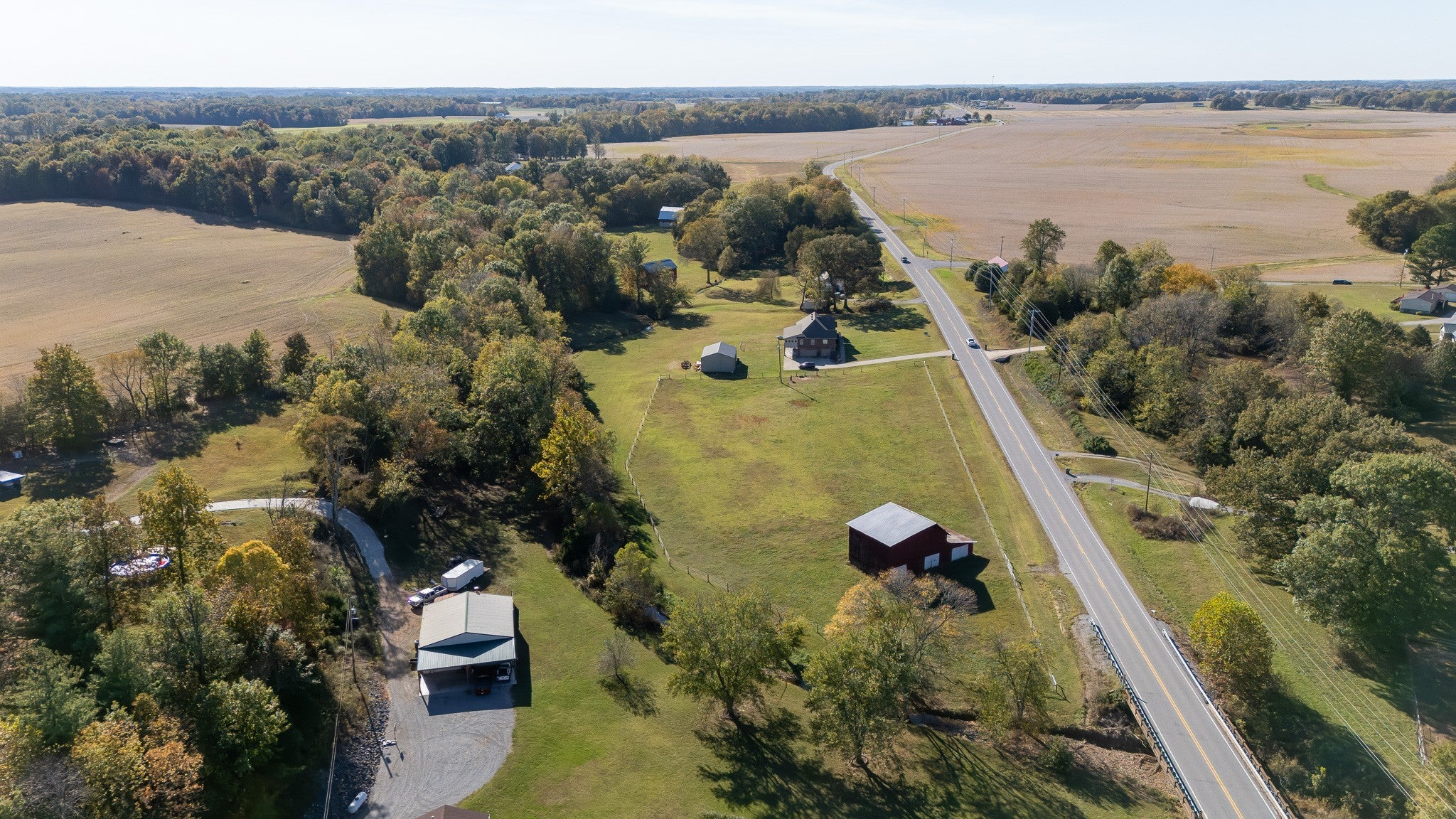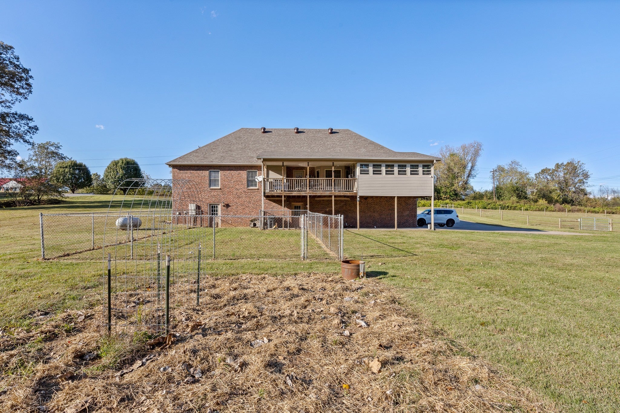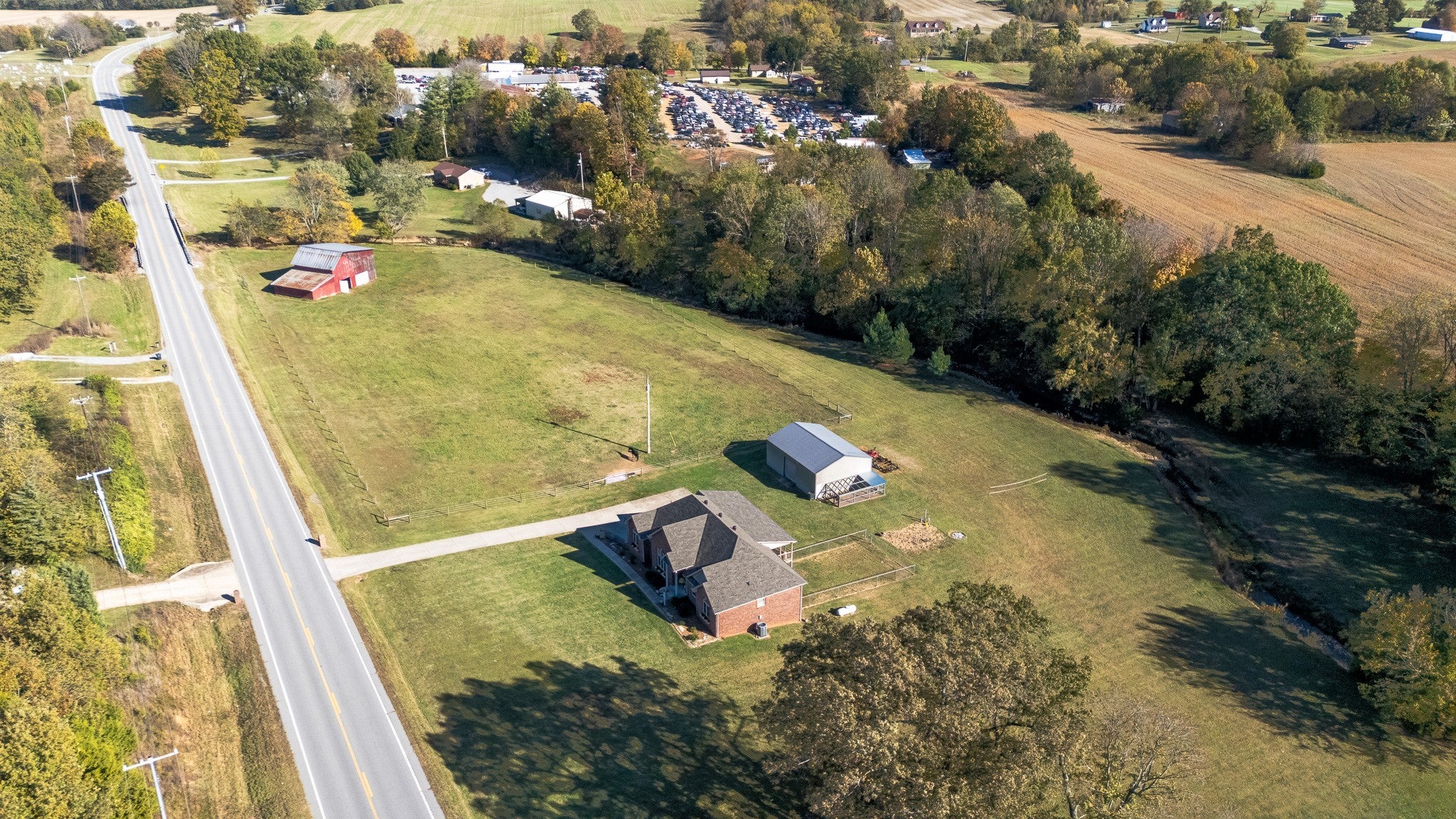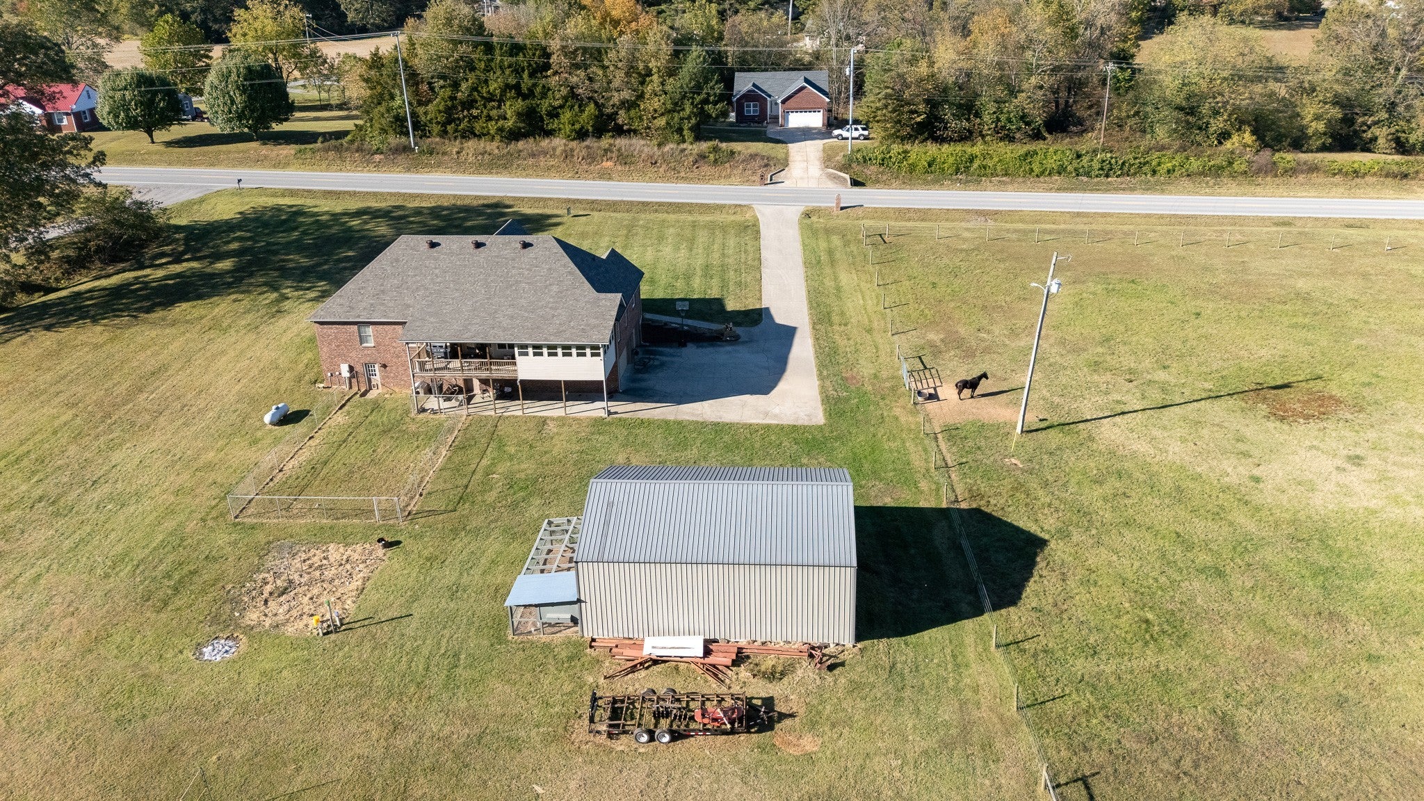 Beautiful home sitting on 5.99 open acres with a creek. The home has a new roof, updated flooring, new granite counter tops, and freshly painted within the last 3 years .. It also has had new lighting almost throughout. The partially finished basement is a great place for family fun and entertainment, a home office, or whatever your need might be. The property is gently rolling, and has new electrobraid fencing for your livestock or horses. Not only is there a 40x32 tobacco barn on the property, but a 30 x 40 detached garage that has updraded lighting, which is in addition to the 3 car attached garage. Looking for a place to raise chickens? The detached garage-shop has a 30 foot long chicken coop and run attached. And for the young at heart, a treehouse also resides on the property.