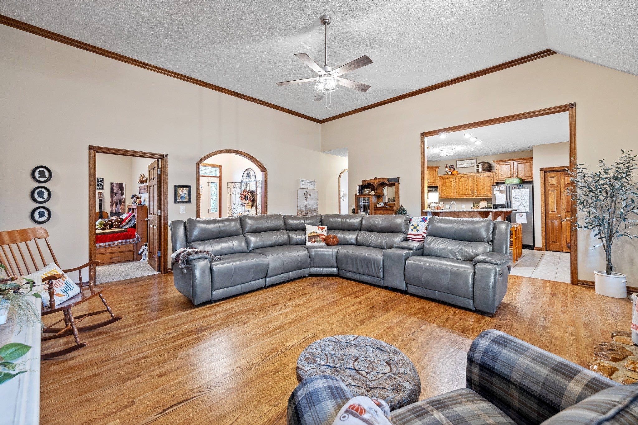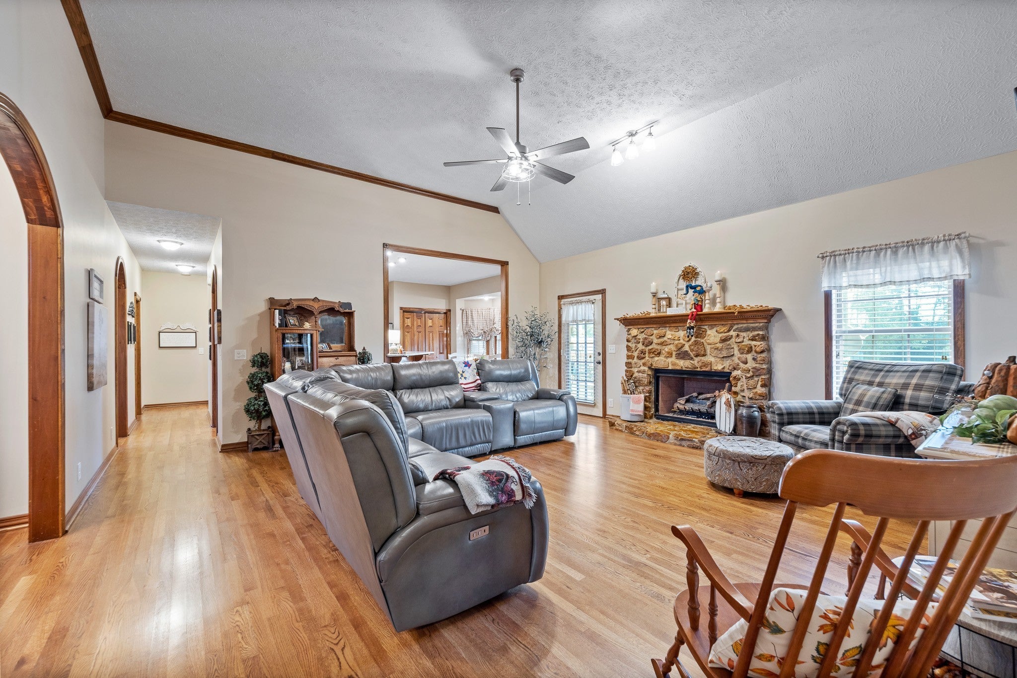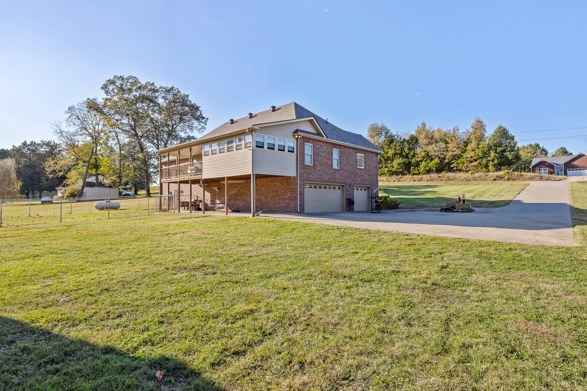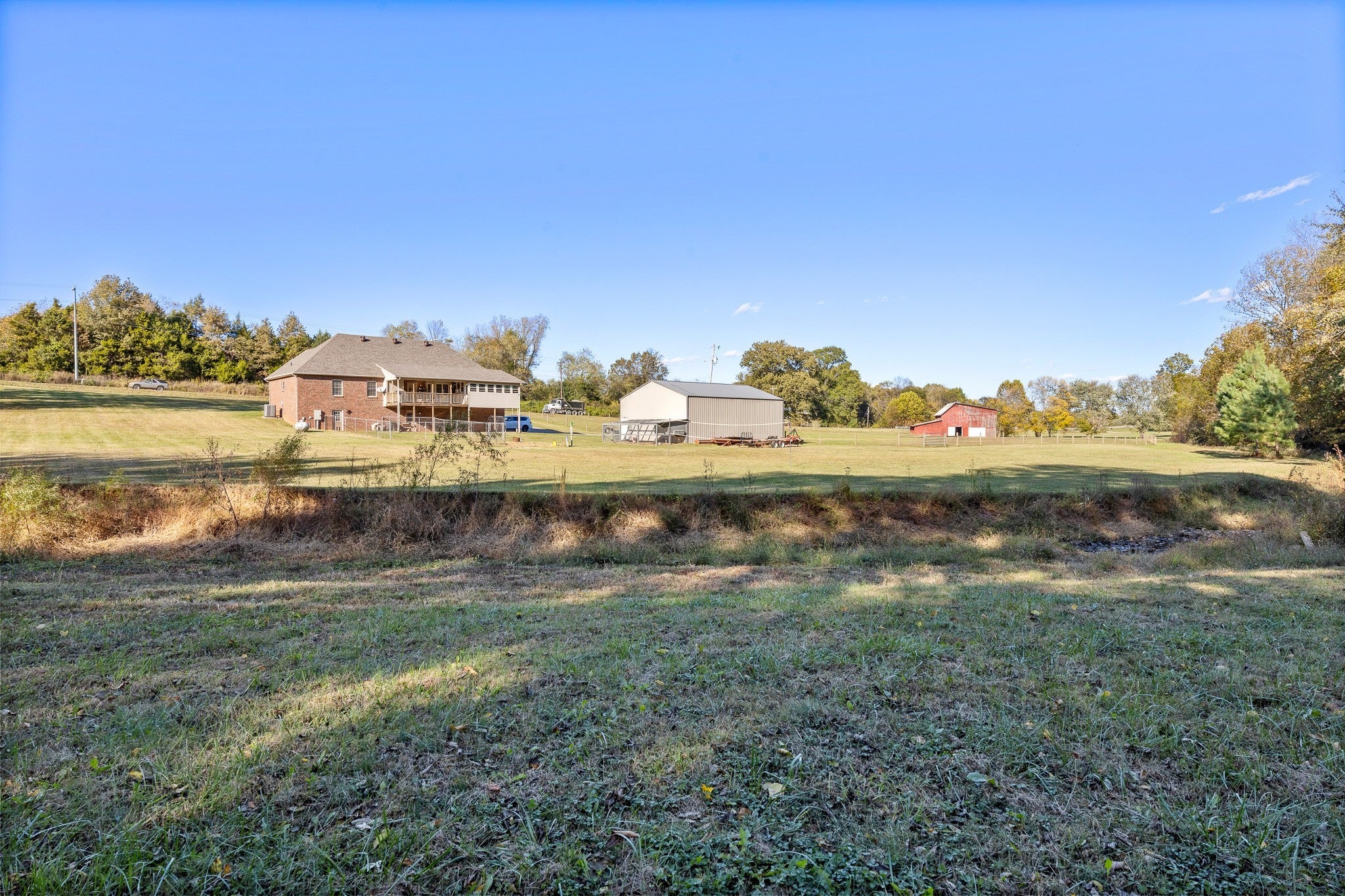 Beautiful home sitting on 5.99 open acres with a creek. The home has a new roof, updated flooring, new granite counter tops, and freshly painted within the last 3 years .. It also has had new lighting almost throughout. The partially finished basement is a great place for family fun and entertainment, a home office, or whatever your need might be. The property is gently rolling, and has new electrobraid fencing for your livestock or horses. Not only is there a 40x32 tobacco barn on the property, but a 30 x 40 detached garage that has updraded lighting, which is in addition to the 3 car attached garage. Looking for a place to raise chickens? The detached garage-shop has a 30 foot long chicken coop and run attached. And for the young at heart, a treehouse also resides on the property.