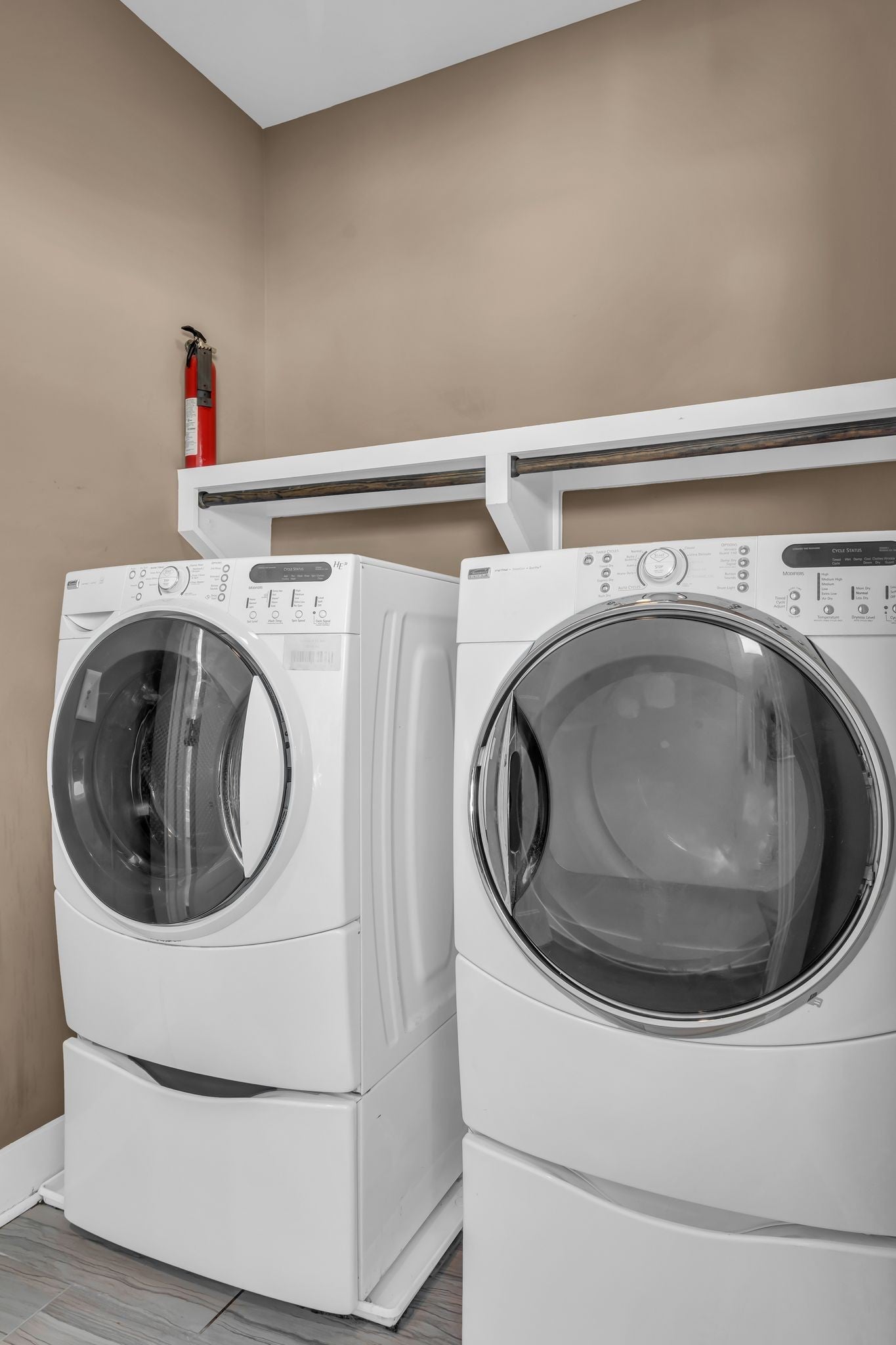 - Electric Oven, Electric Range, Dishwasher, Disposal, Dryer, Ice Maker, Microwave, Refrigerator, Stainless Steel Appliance(s), Washer