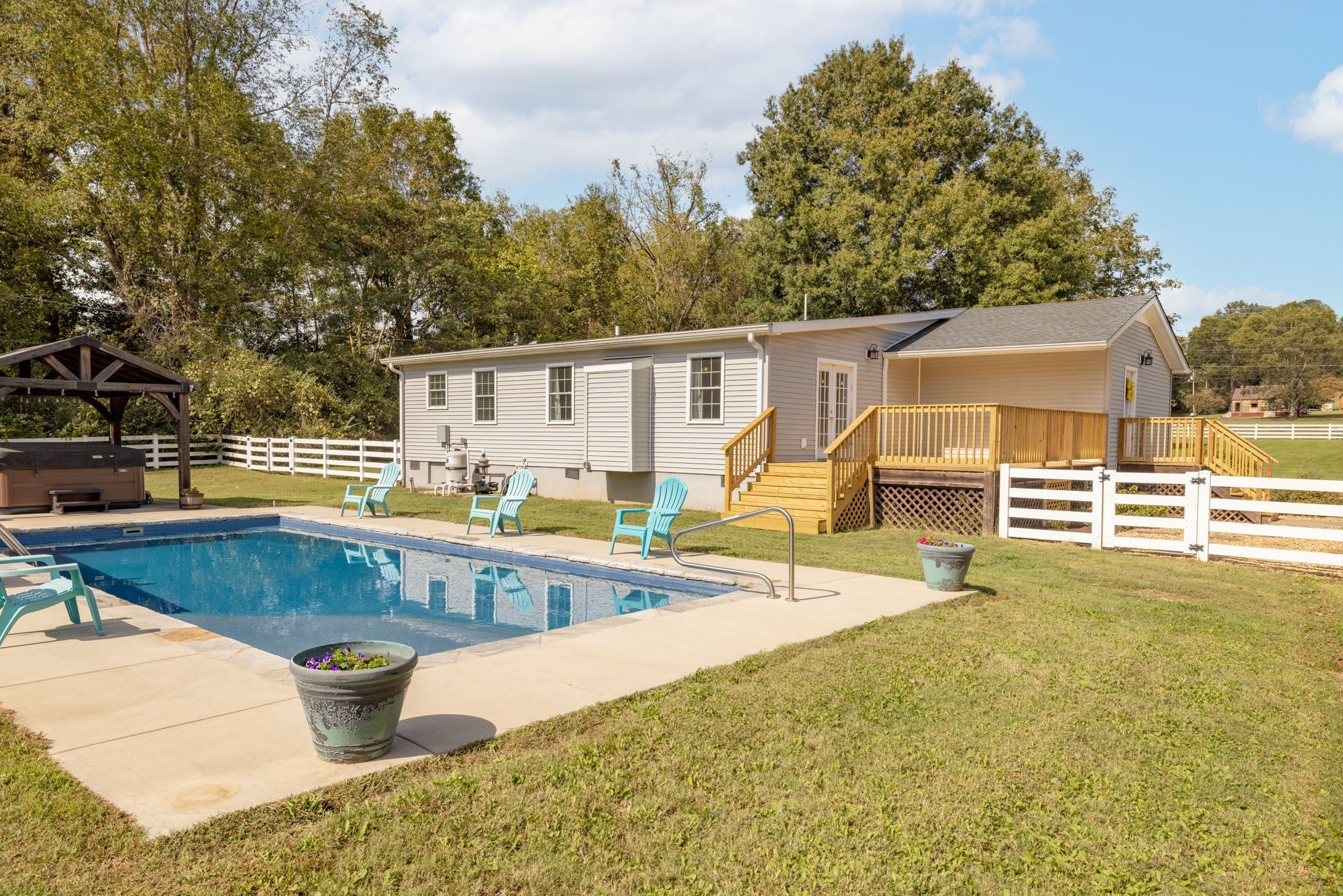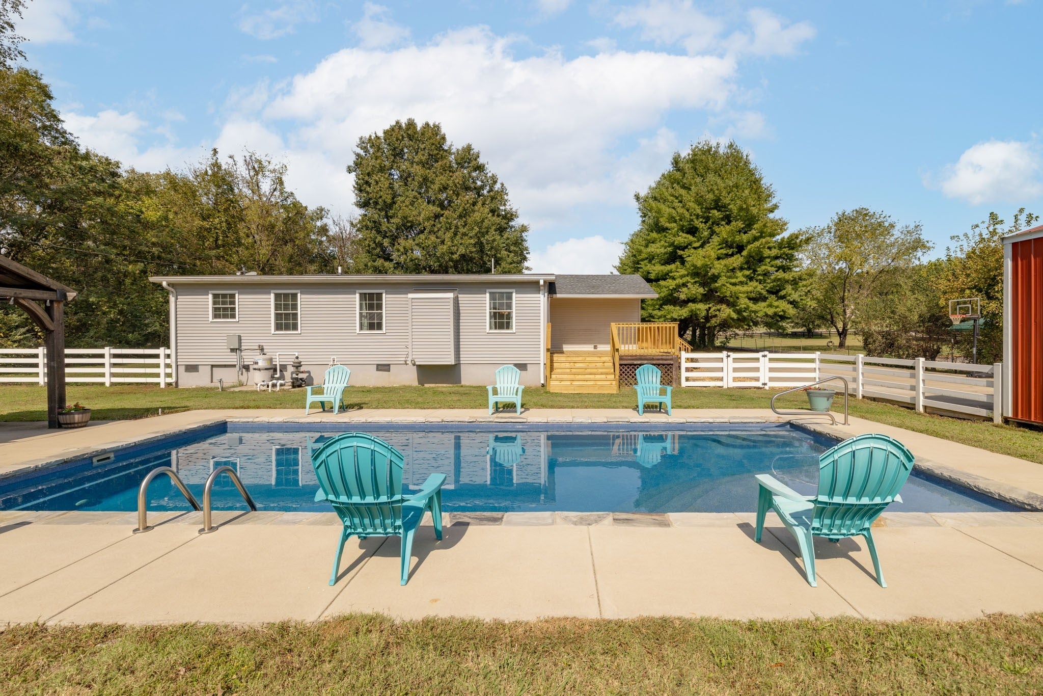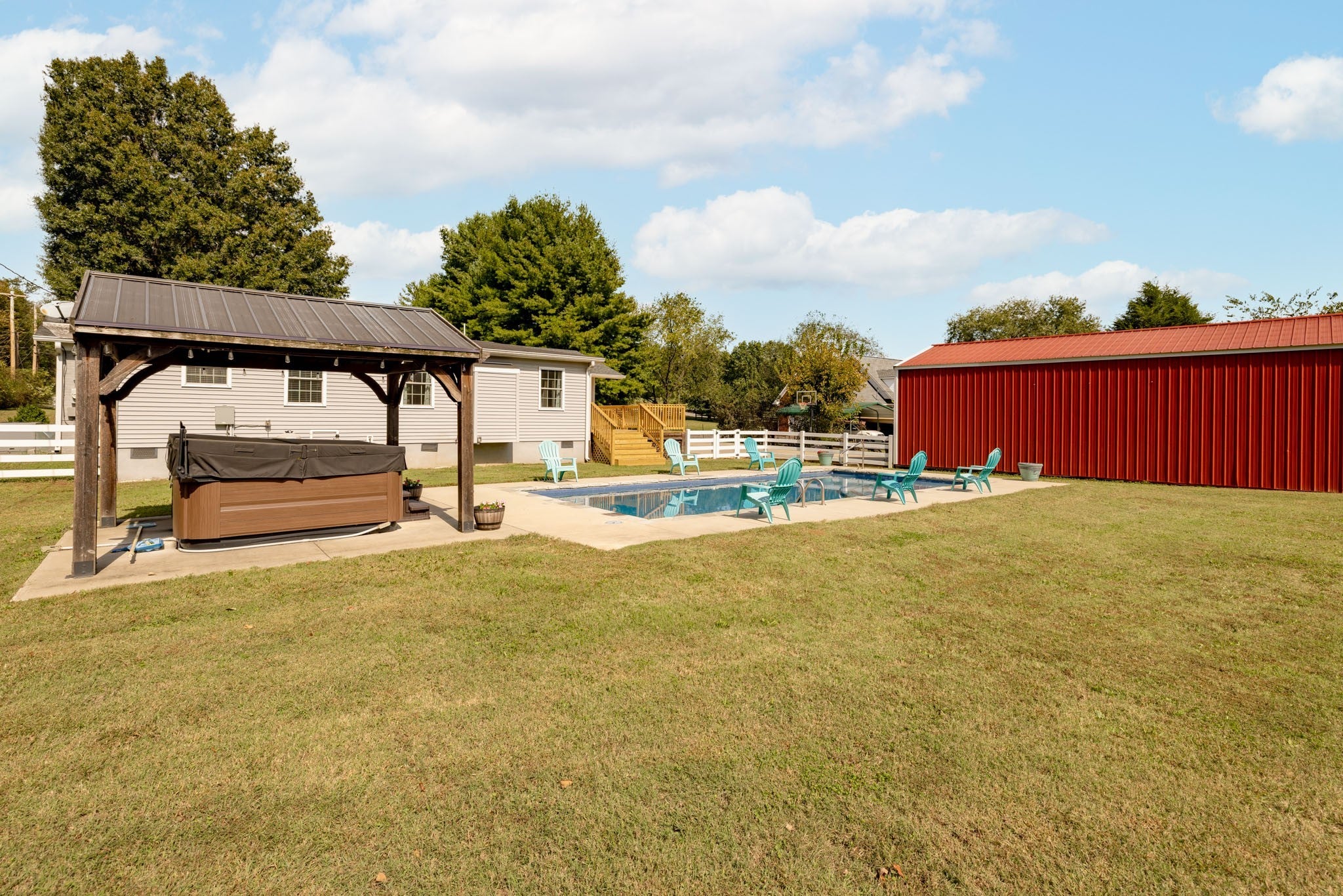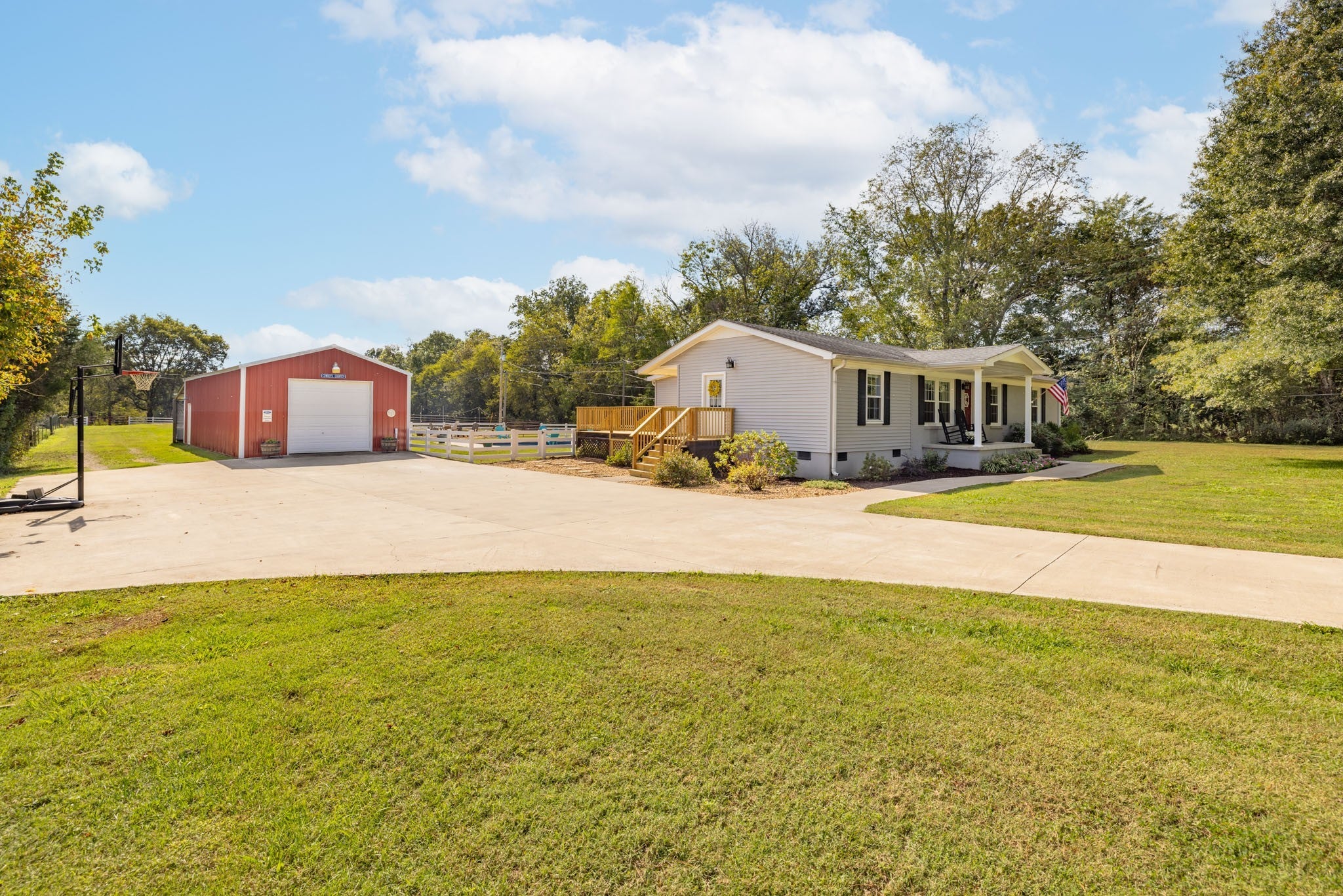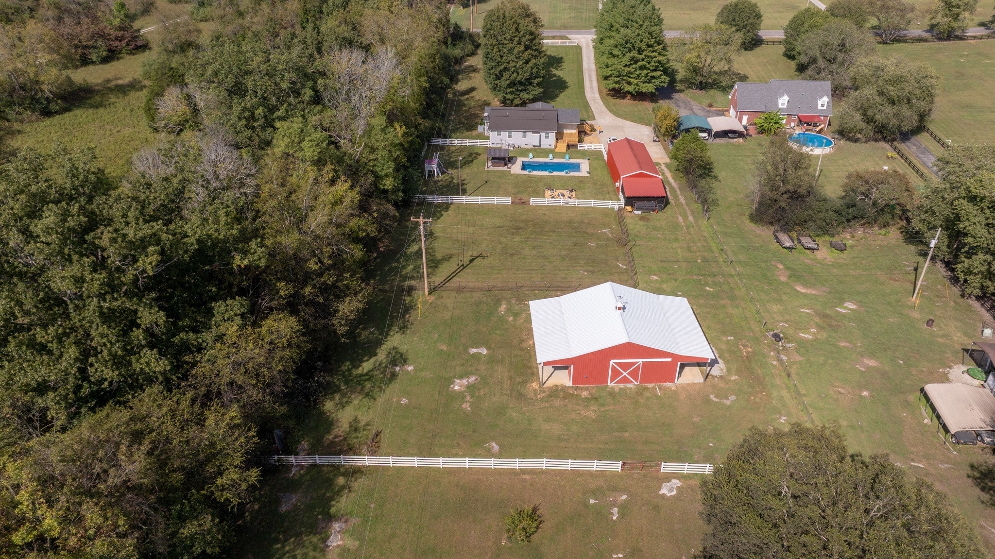 Experience luxury farm living with this immaculate, upgraded mini farm in Columbia, TN. Ready for immediate use, the estate includes a substantial shop, versatile barn, and a private in-ground pool plus a rear border creek. Your own piece of Tennessee history along scenic Double Branch Road in Columbia! This beautifully maintained 3-bedroom, 2-bath brick home blends country comfort, equestrian functionality, and timeless charm—all set beside Rutherford Creek, a site with rich Civil War history where troops once crossed these very lands. Inside, enjoy laminate flooring in the kitchen, dining, and living areas, hardwood floors in the hallway and bedrooms, and tile in the office, laundry, and bathrooms. The home features granite countertops, and the washer, dryer, and all kitchen appliances remain. A cozy gas fireplace (propane tank not included) adds warmth, while 8 year old windows bring in natural light. The home’s original brick exterior is accented by tasteful home expansion additions where you see siding installed. The home features a freshly refinished deck, expanded driveway, and sidewalk. This property is a working horse farm complete with a 30x30 barn featuring two 10x30 wings for storage, running water, an unfinished tack room, wash bay, and two full stalls with space for a third. A second barn with a back room offers potential for a man cave, office, or hobby space, with additional attached storage behind it. Outdoor living is just as impressive—relax in the 6-foot-deep copper ion mineral pool (installed 2022) or unwind in the Jacuzzi-brand hot tub beneath the pergola. Additional updates include a roof (2016), HVAC system (2016), and PEX plumbing throughout the crawlspace with lines extended to the barn. Set along the peaceful banks of Rutherford Creek, this home offers a rare mix of history, comfort, and country living. Move-in ready and ideal for any equestrian or outdoor enthusiast seeking the best of Maury County living!