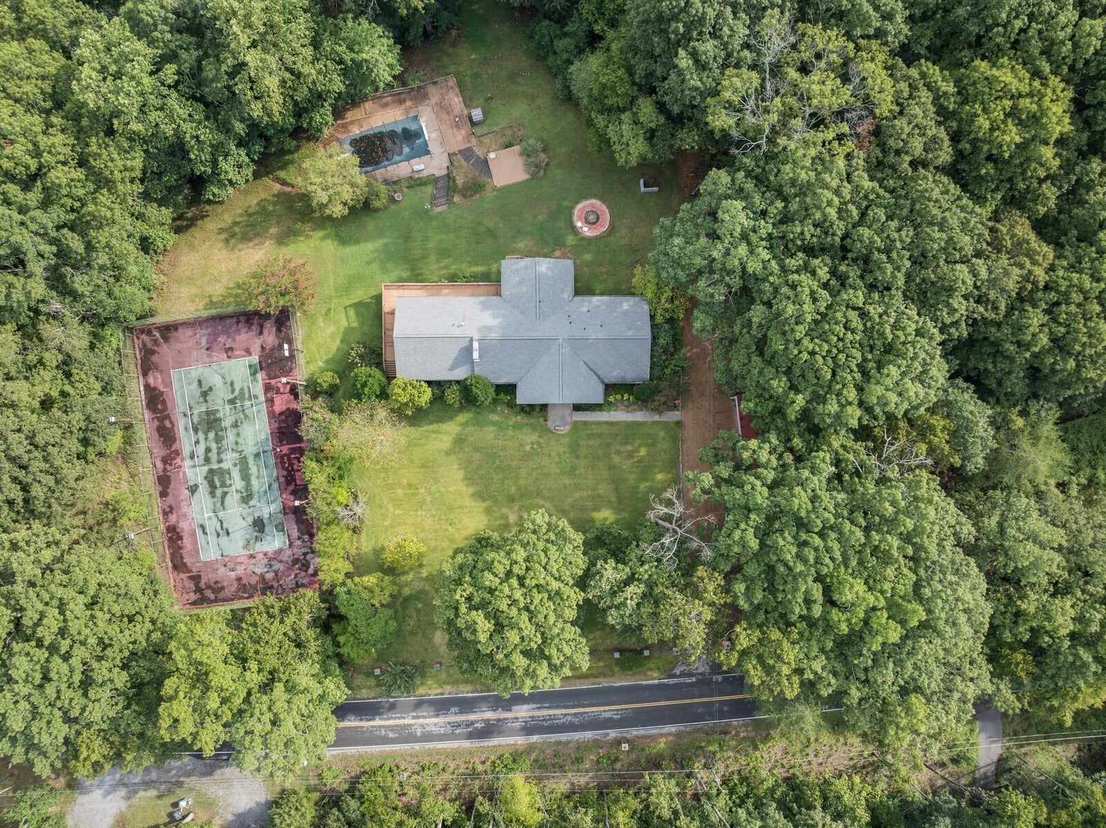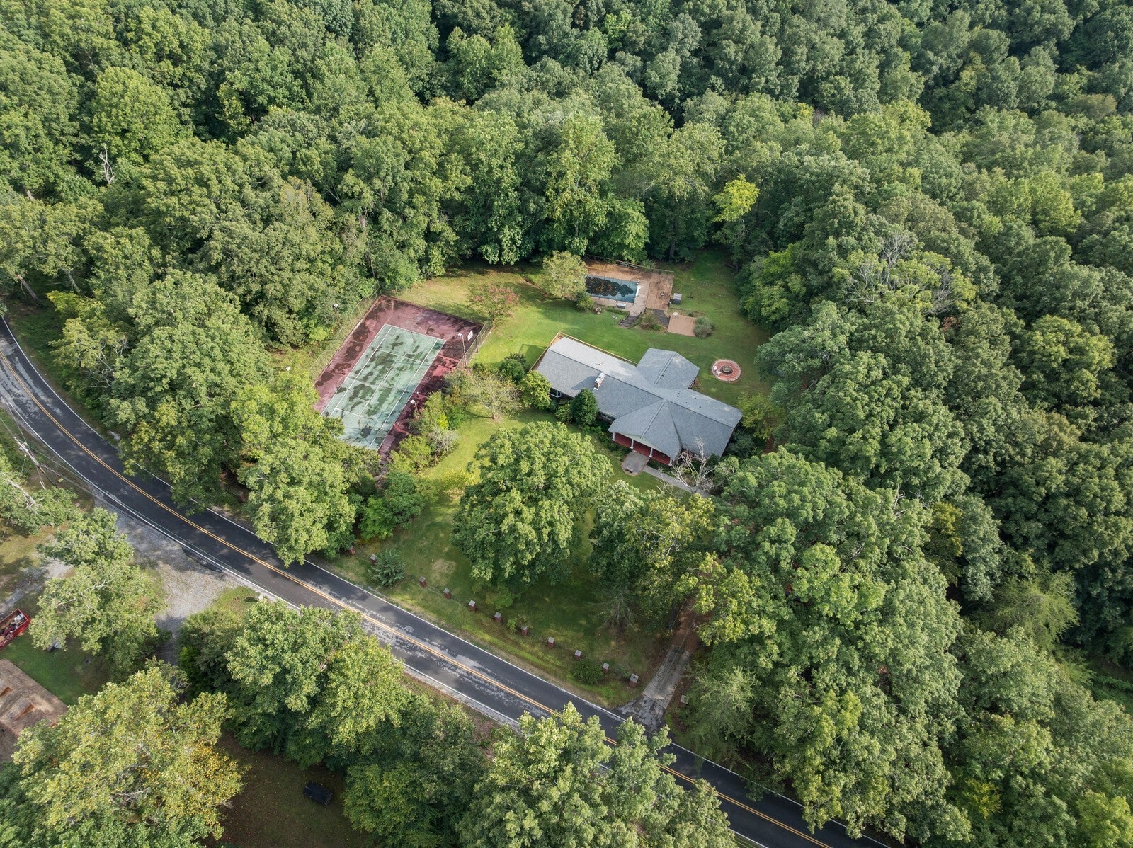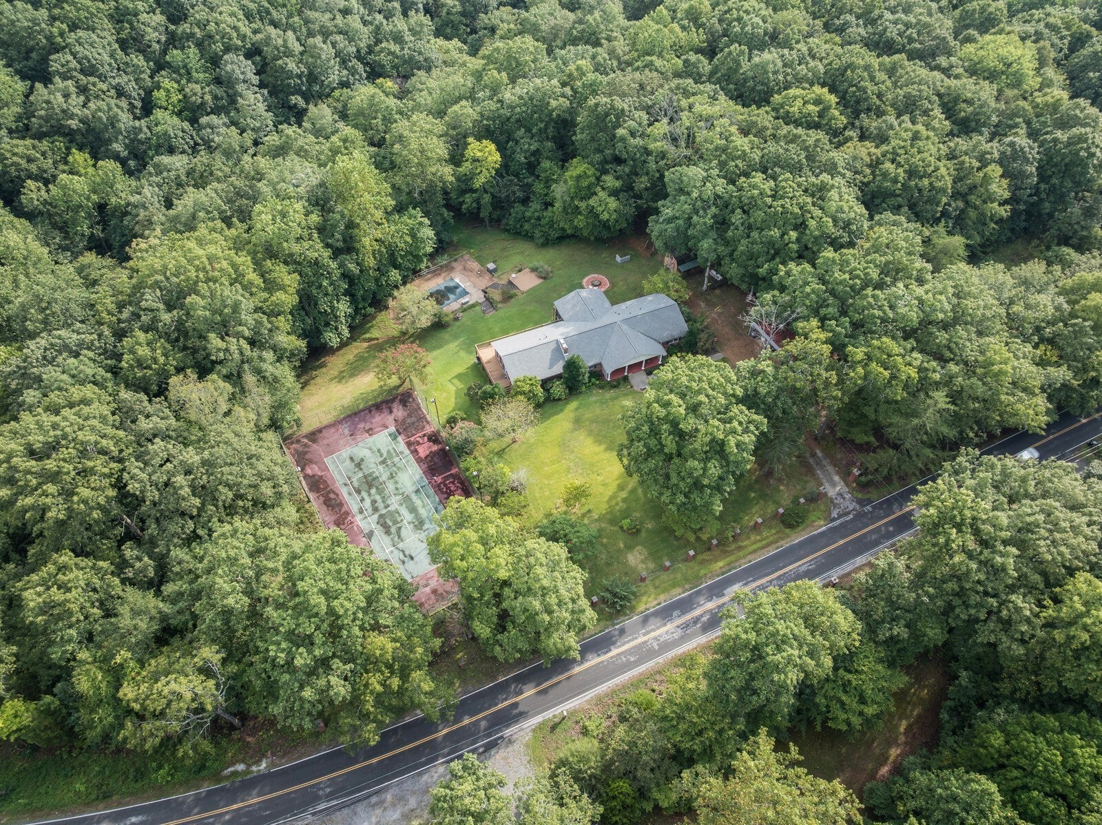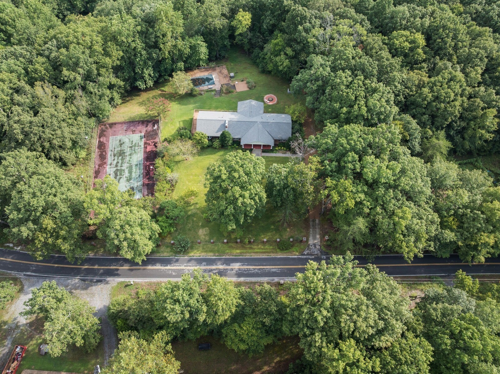 Nestled on a serene 5-acre private forest estate just 25 minutes from downtown Nashville, this classic ranch-style home offers timeless charm and modern comfort. With 2,669 sq ft, the main level features 3 bedrooms, 2 full baths, and a half-bath, plus over 2,000 sq ft of unfinished basement to customize to your needs. This fixer upper home is being sold as-is, offering great potential for customization or investment. Your future home is surrounded by mature trees and includes exceptional amenities such as a pool, tennis court, custom fire pit area, and multiple outdoor living spaces. The 375 sq ft screened-in porch is perfect for enjoying the peaceful woodland views. The living room boasts a stunning brick accent wall with a cozy fireplace, while a dedicated home office offers the ideal space for remote work or creative pursuits. The massive primary suite is bathed in natural light, with private deck access for morning coffee or evening relaxation. The expansive backyard is an open canvas of refurbishment potential with a deck and pool, and a spacious yard surrounded by nature. Plenty of parking space with the attached garage and a carport. With its tranquil setting, this property is more than a home, it’s a retreat. Schedule your tour today to experience its one-of-a-kind beauty in person. 24 hour notice if possible please. Up to 1% lender credit on the loan amount when buyer uses Seller's Preferred Lender.